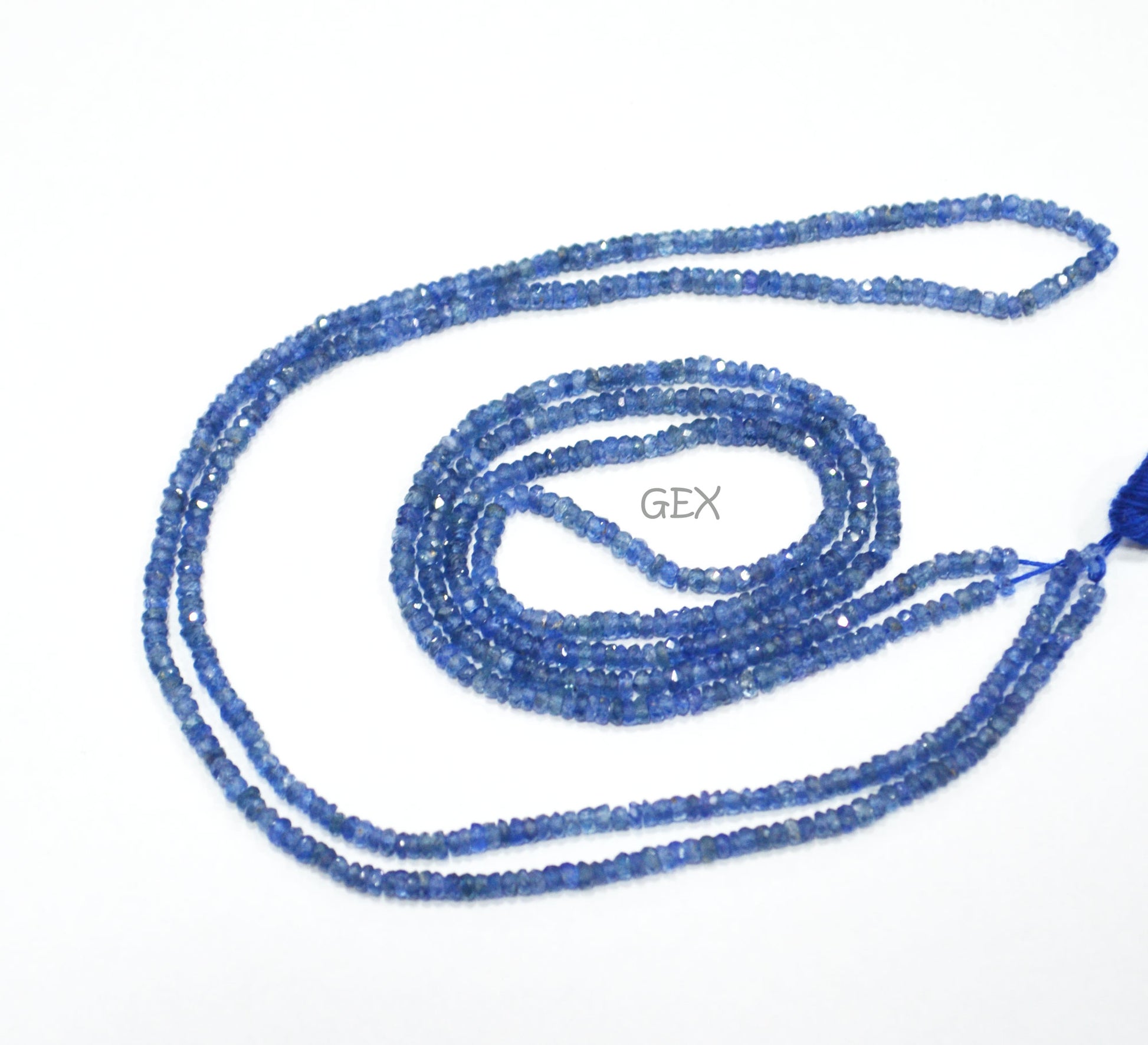 100% Natural Blue Sapphire Faceted Rondelle Shape Beads , 100% Natural Blue Sapphire Faceted Beads , Sold By Strand , 16 Inches , 2.25 - 2.50 mm , 31868