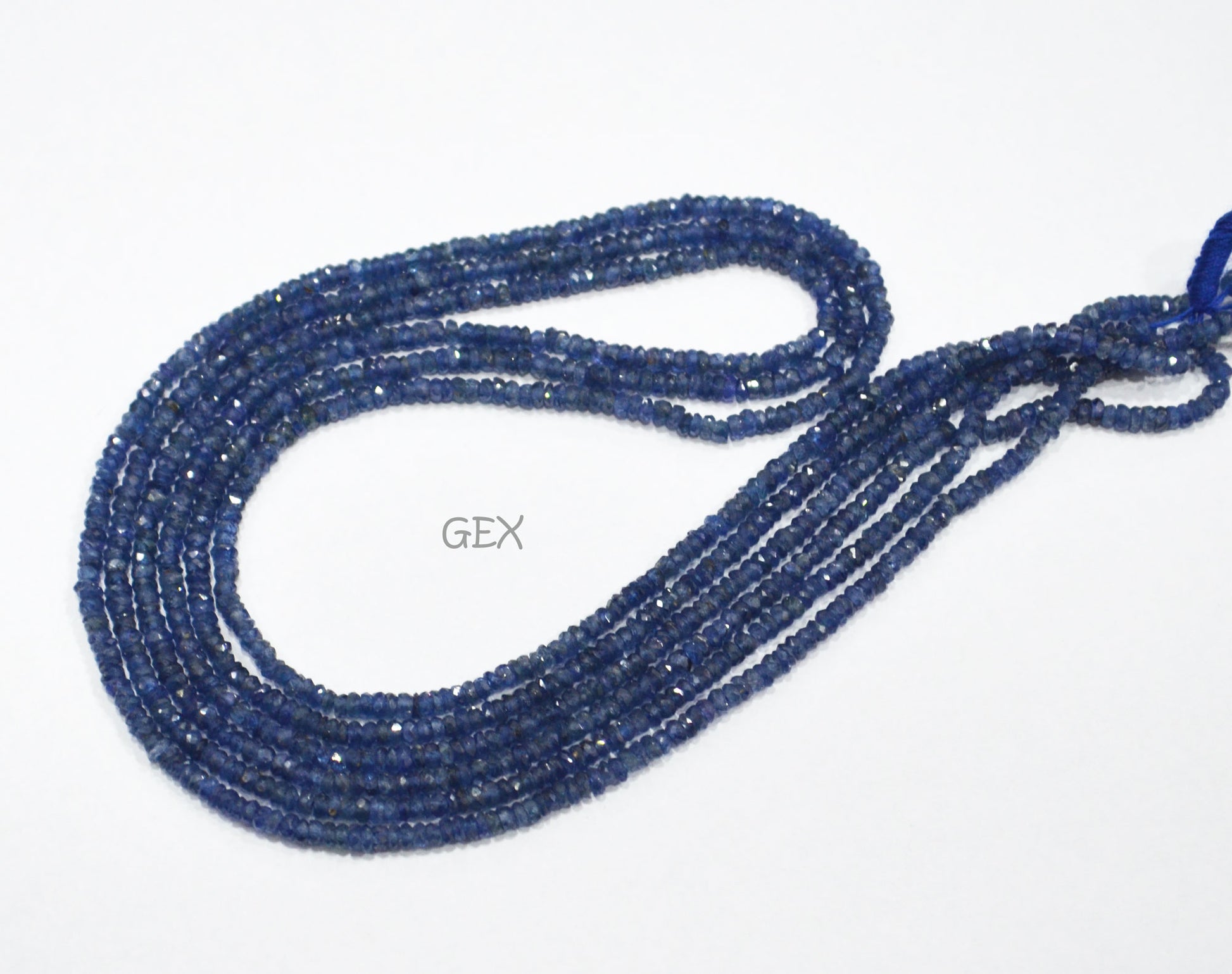 100% Natural Blue Sapphire Faceted Rondelle Shape Beads , 100% Natural Blue Sapphire Faceted Beads , Sold By Strand , 16 Inches , 2.25 - 2.50 mm , 31872