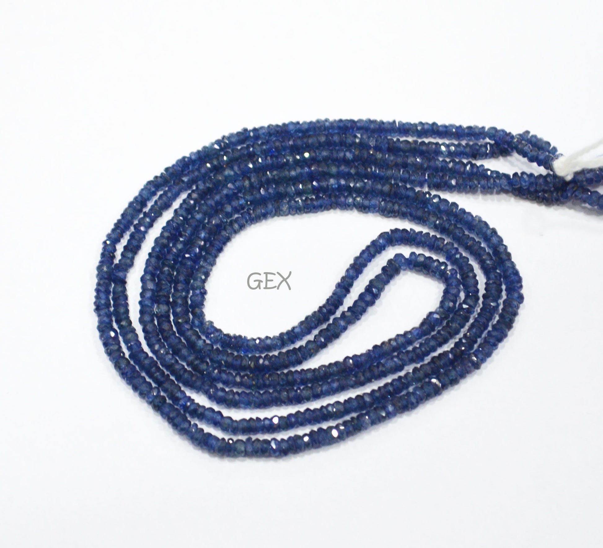 100% Natural Blue Sapphire Faceted Rondelle Shape Beads , 100% Natural Blue Sapphire Faceted Beads , Sold By Strand , 16 Inches , 2.25 - 2.50 mm , 31881