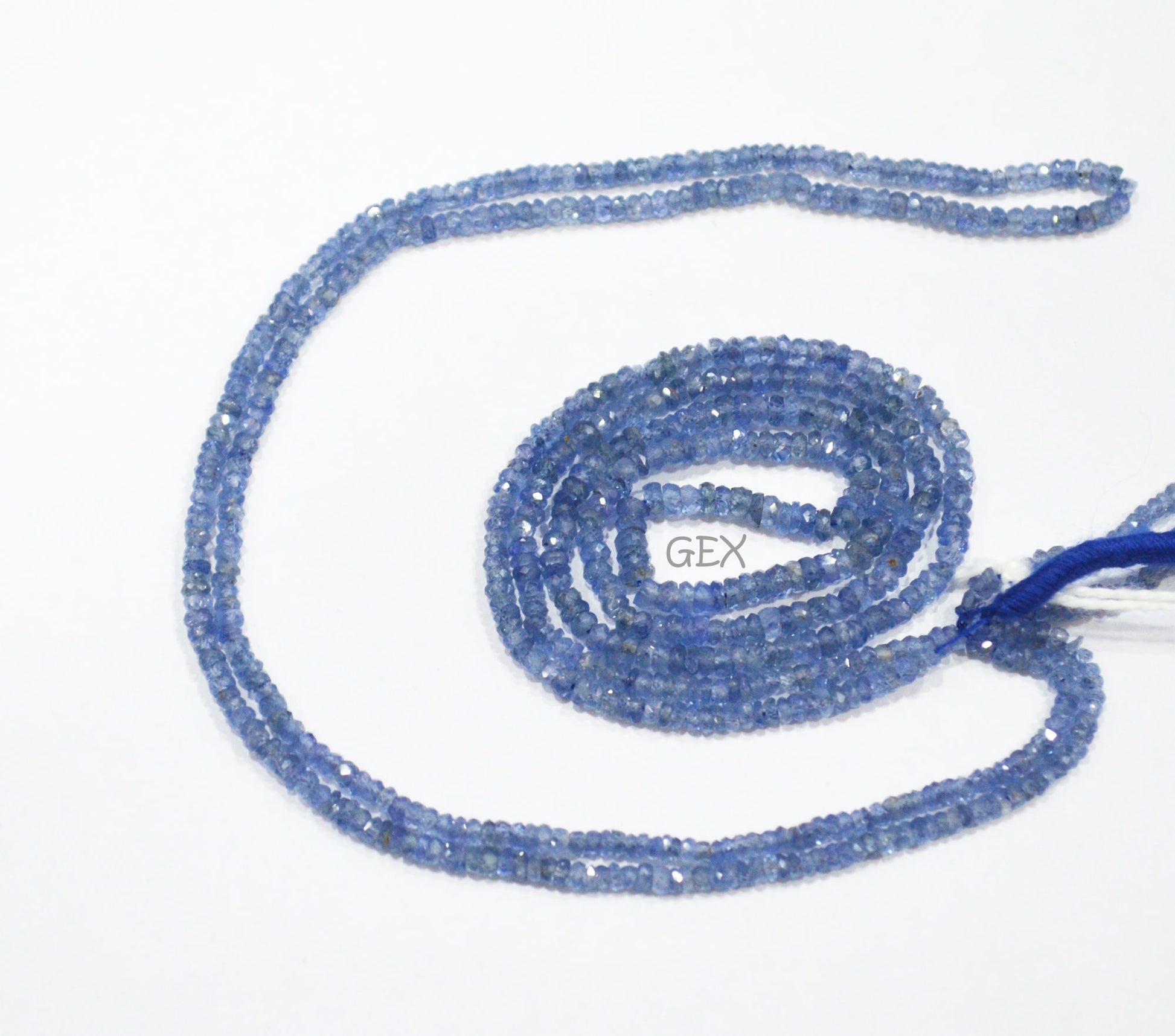 100% Natural Blue Sapphire Faceted Rondelle Shape Beads , 100% Natural Blue Sapphire Faceted Beads , Sold By Strand , 16 Inches , 2.25 - 2.75 mm , 31883