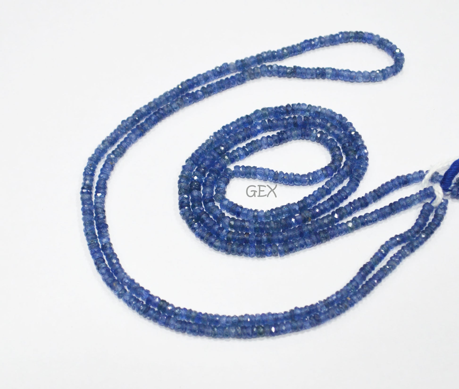 100% Natural Blue Sapphire Faceted Rondelle Shape Beads , 100% Natural Blue Sapphire Faceted Beads , Sold By Strand , 16 Inches , 2.25 - 3 mm , 31879