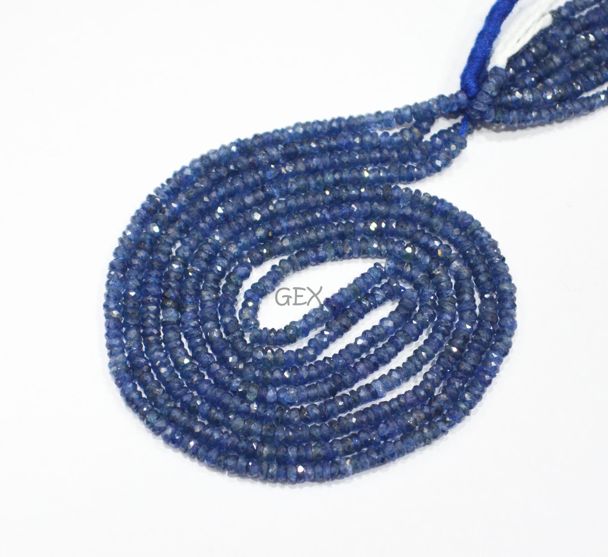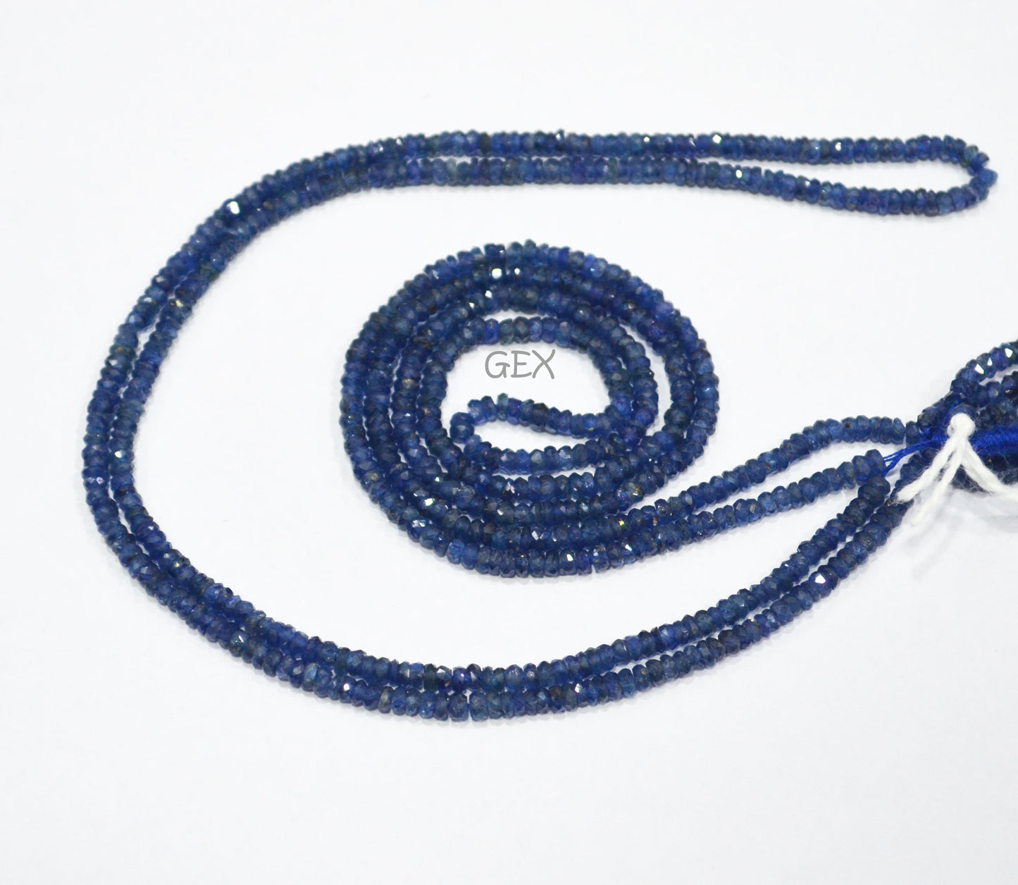 100% Natural Blue Sapphire Faceted Rondelle Shape Beads , 100% Natural Blue Sapphire Faceted Beads , Sold By Strand , 16 Inches , 2.50 - 2.75 mm , 31882