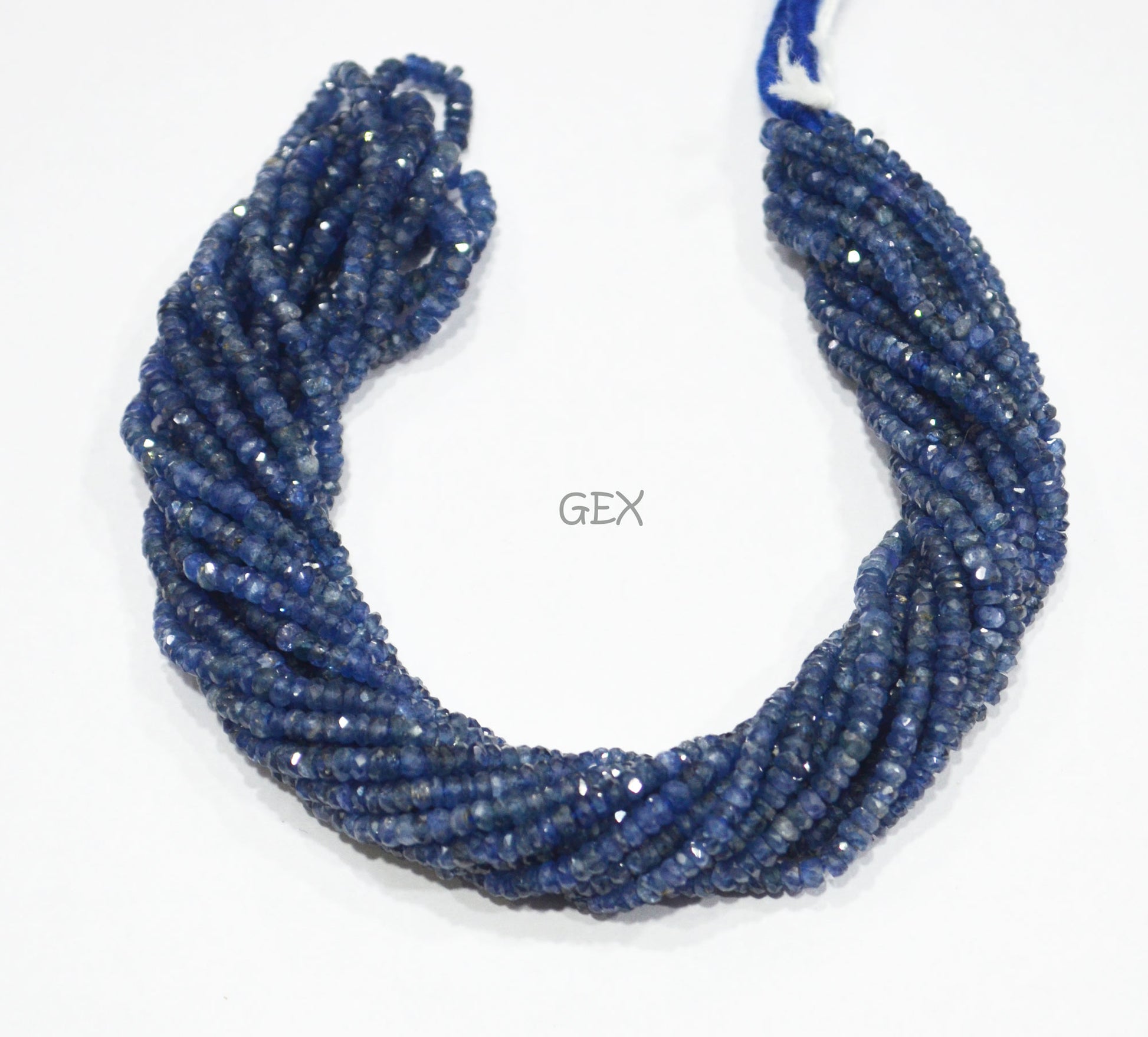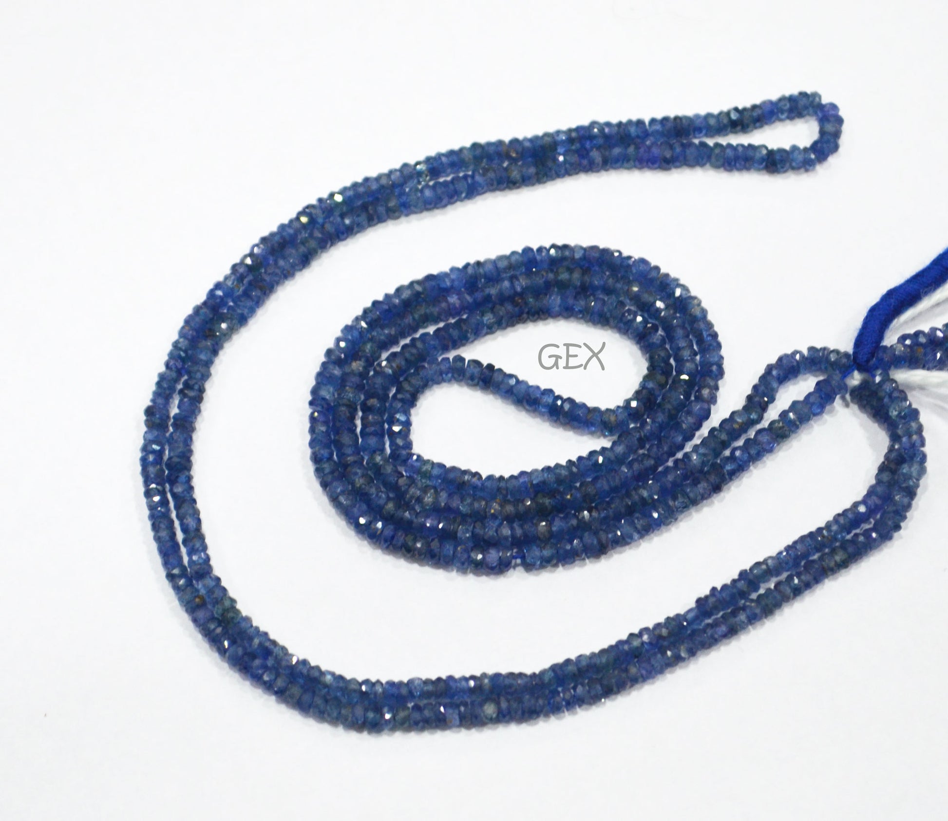 100% Natural Blue Sapphire Faceted Rondelle Shape Beads , 100% Natural Blue Sapphire Faceted Beads , Sold By Strand , 16 Inches , 2.75 - 3 mm , 31878