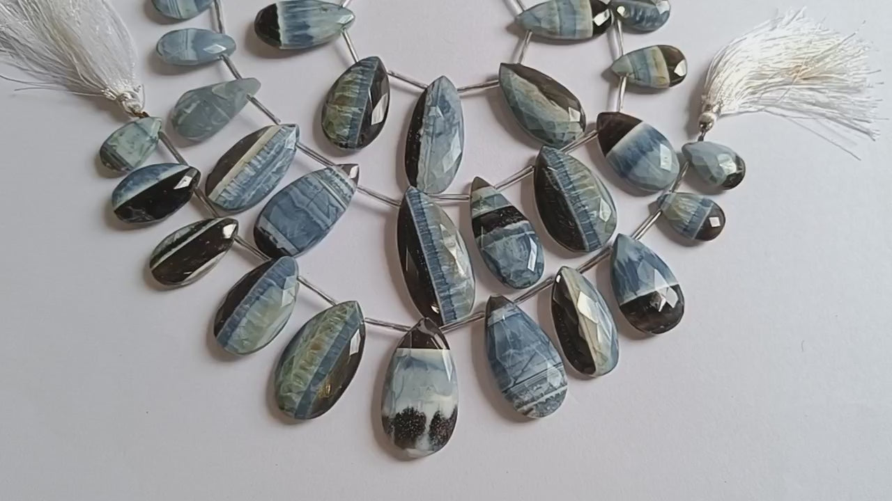 11 Pieces in a Strand Boulder Lace Opal Pear Shape Beads , Boulder Lace Opal Faceted Briolettes , Sold By Strand , 13x20 - 21x35 mm , 19910