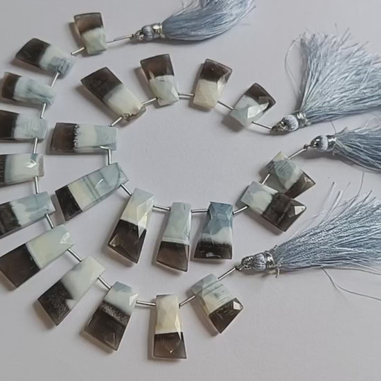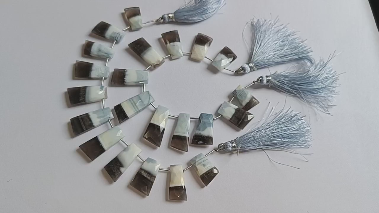 11 Pieces in a Strand Boulder Lace Opal Tapered Baguette Shape Beads , Boulder Lace Opal Faceted Briolettes , 11x18 - 12x27 mm, 19908