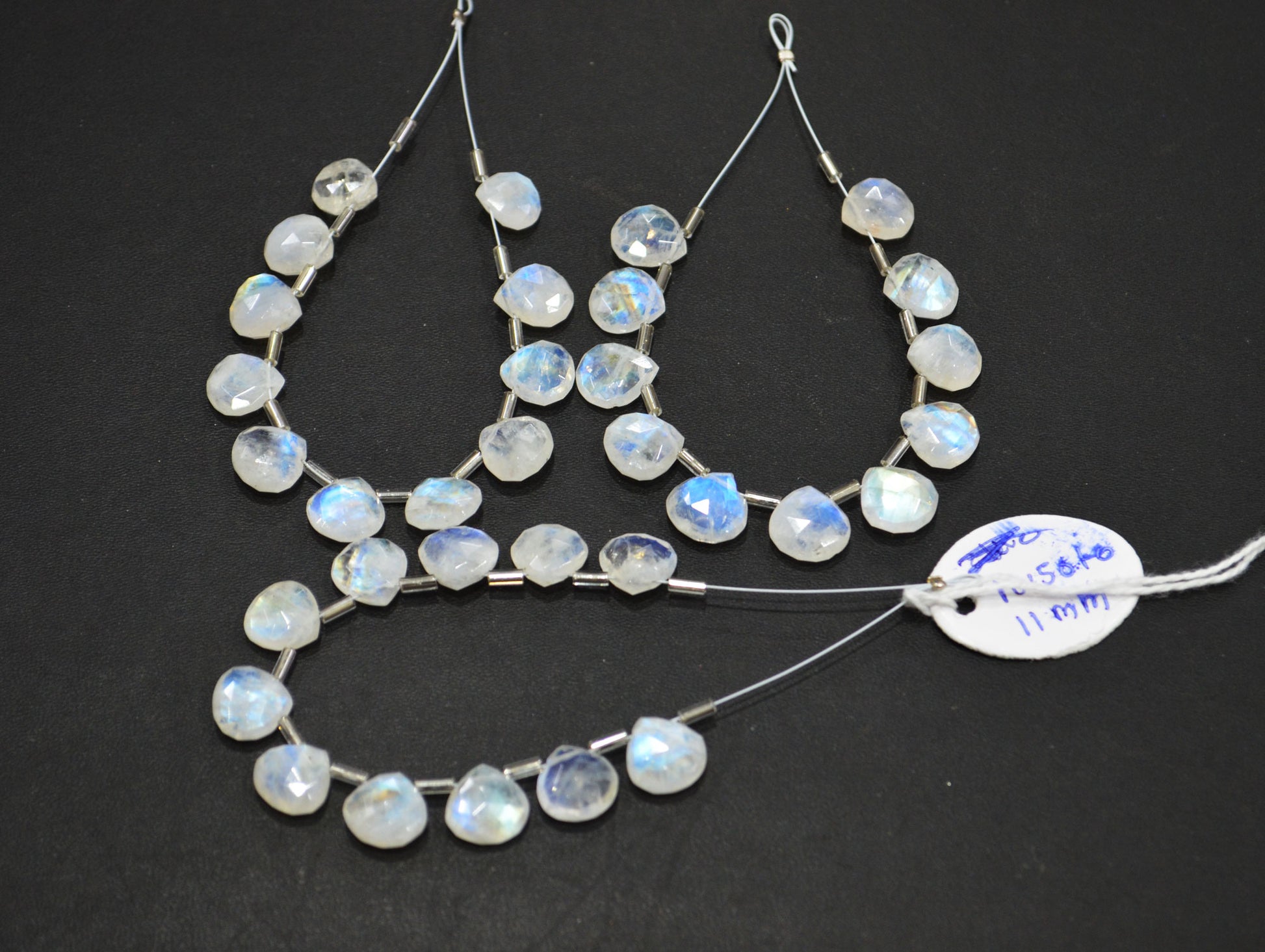 11 Pieces In A Strand Rainbow Moonstone Heart Shape Beads , Rainbow Moonstone Faceted Briolettes , Sold By Strand , 10.50 - 11 mm , 32440