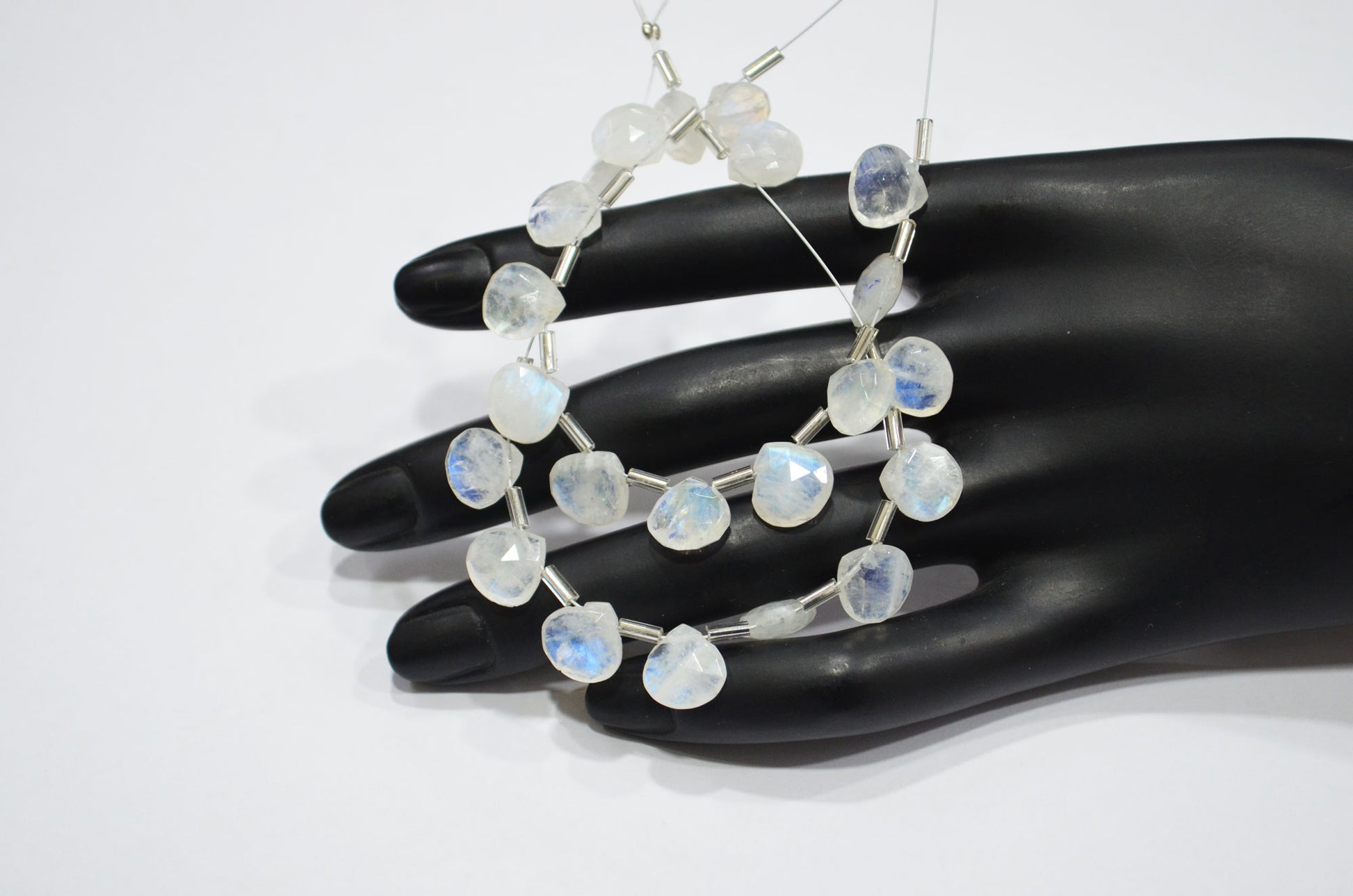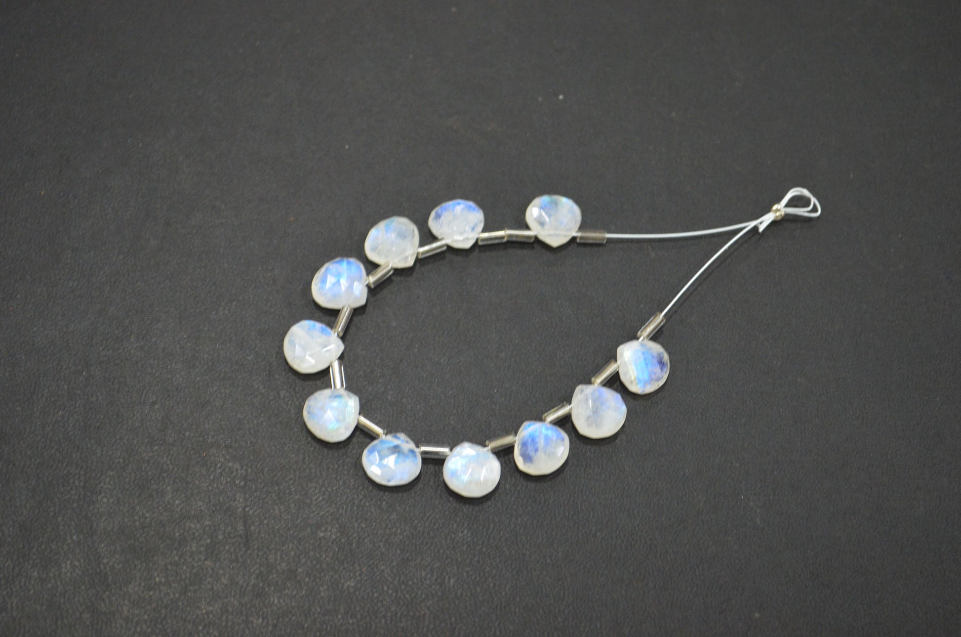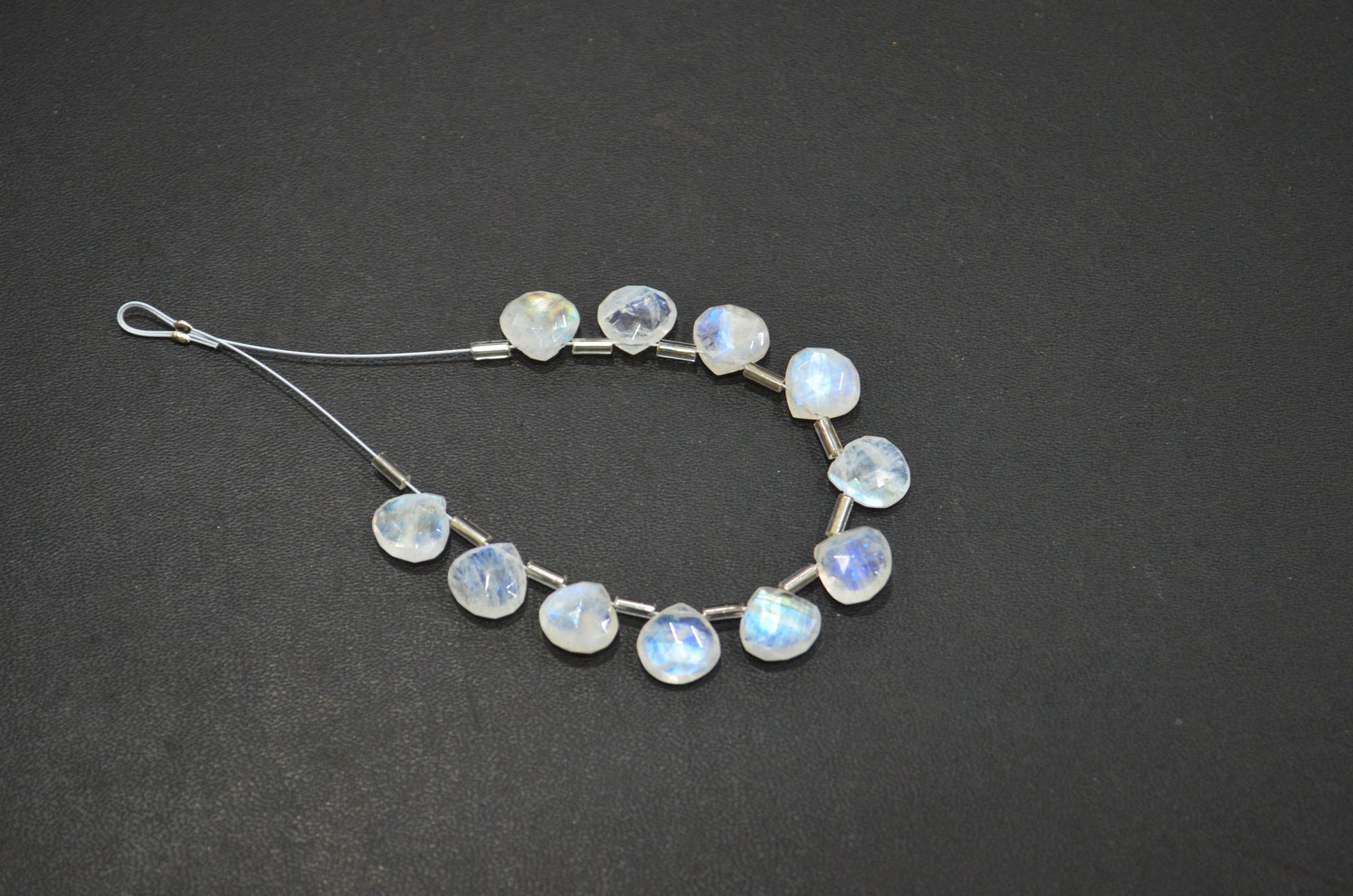 11 Pieces In A Strand Rainbow Moonstone Heart Shape Beads , Rainbow Moonstone Faceted Briolettes , Sold By Strand , 10x10 mm , 32446