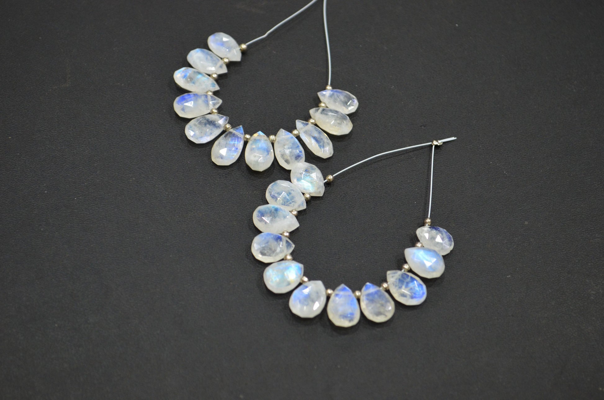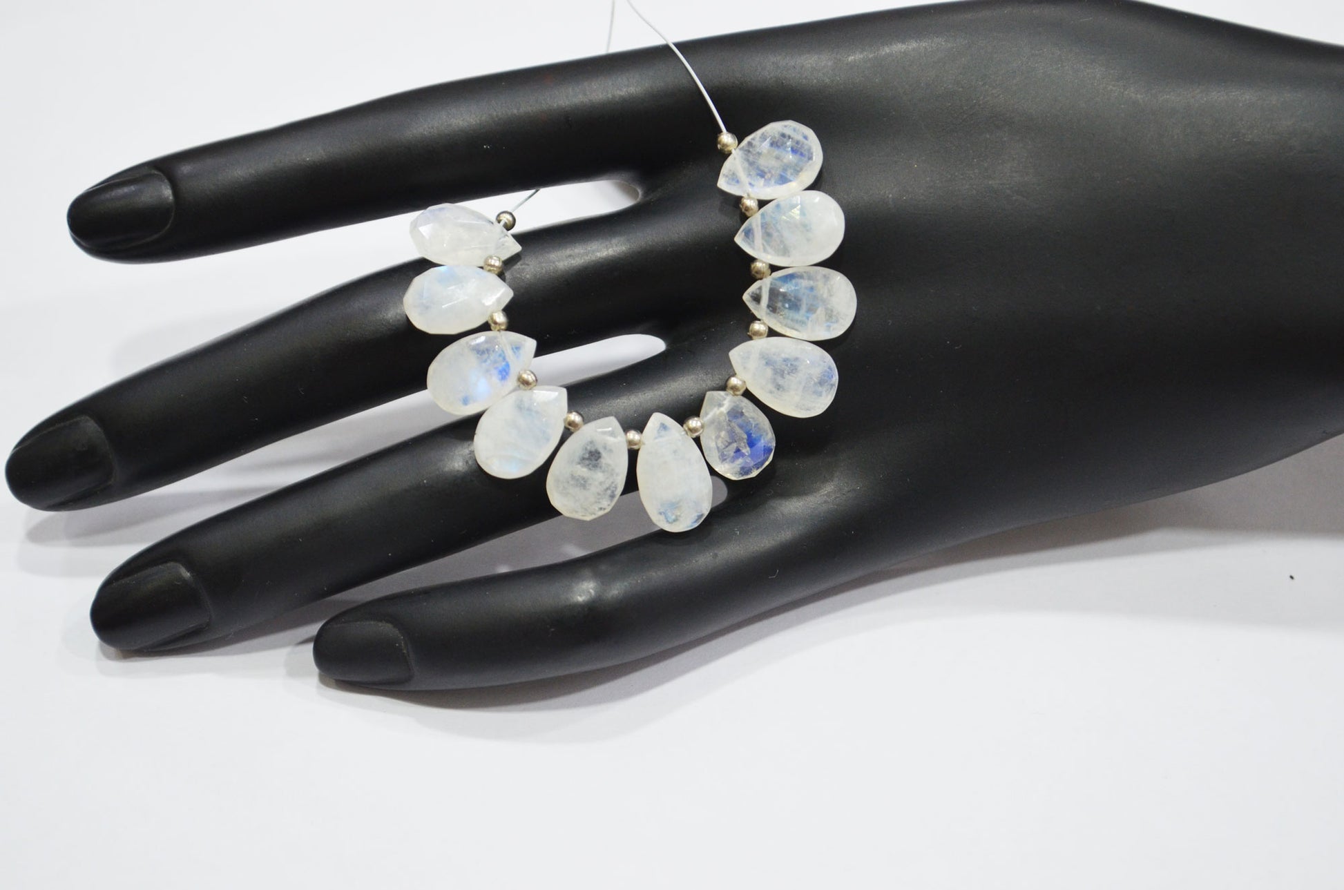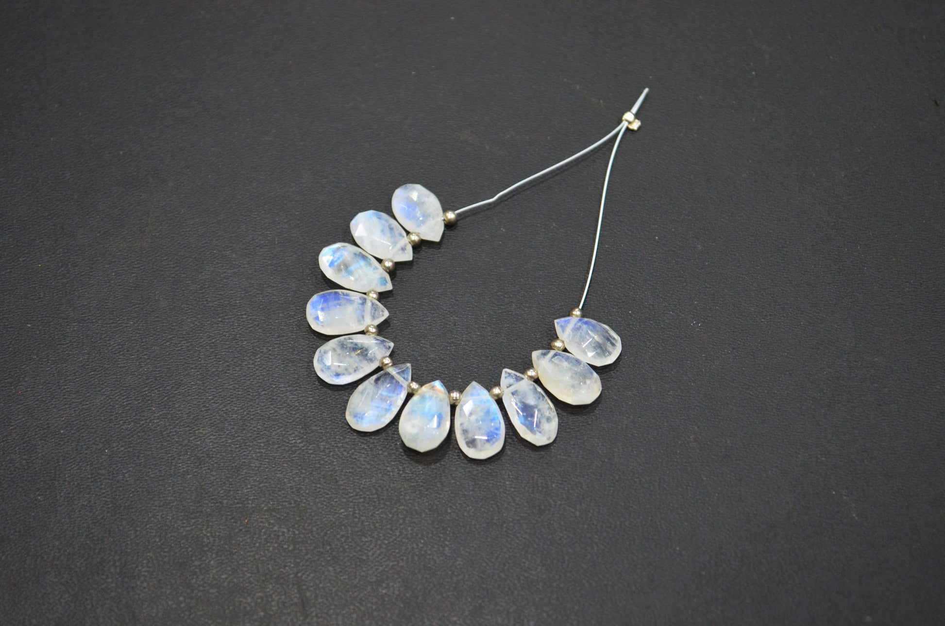 11 Pieces In A Strand Rainbow Moonstone Pear Shape Beads , Rainbow Moonstone Faceted Briolettes , Sold By Strand , 8x12 - 8x13 mm , 32454