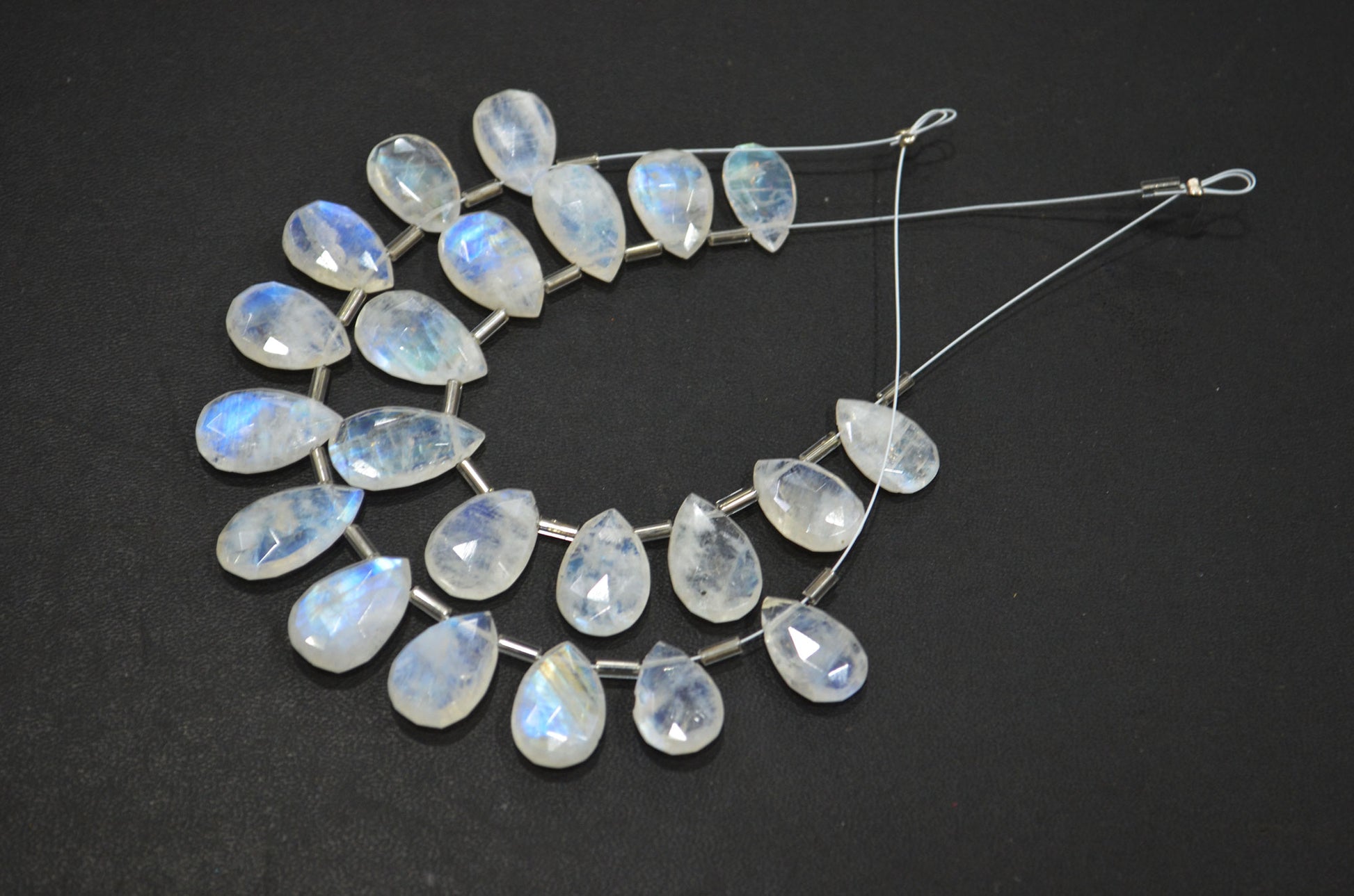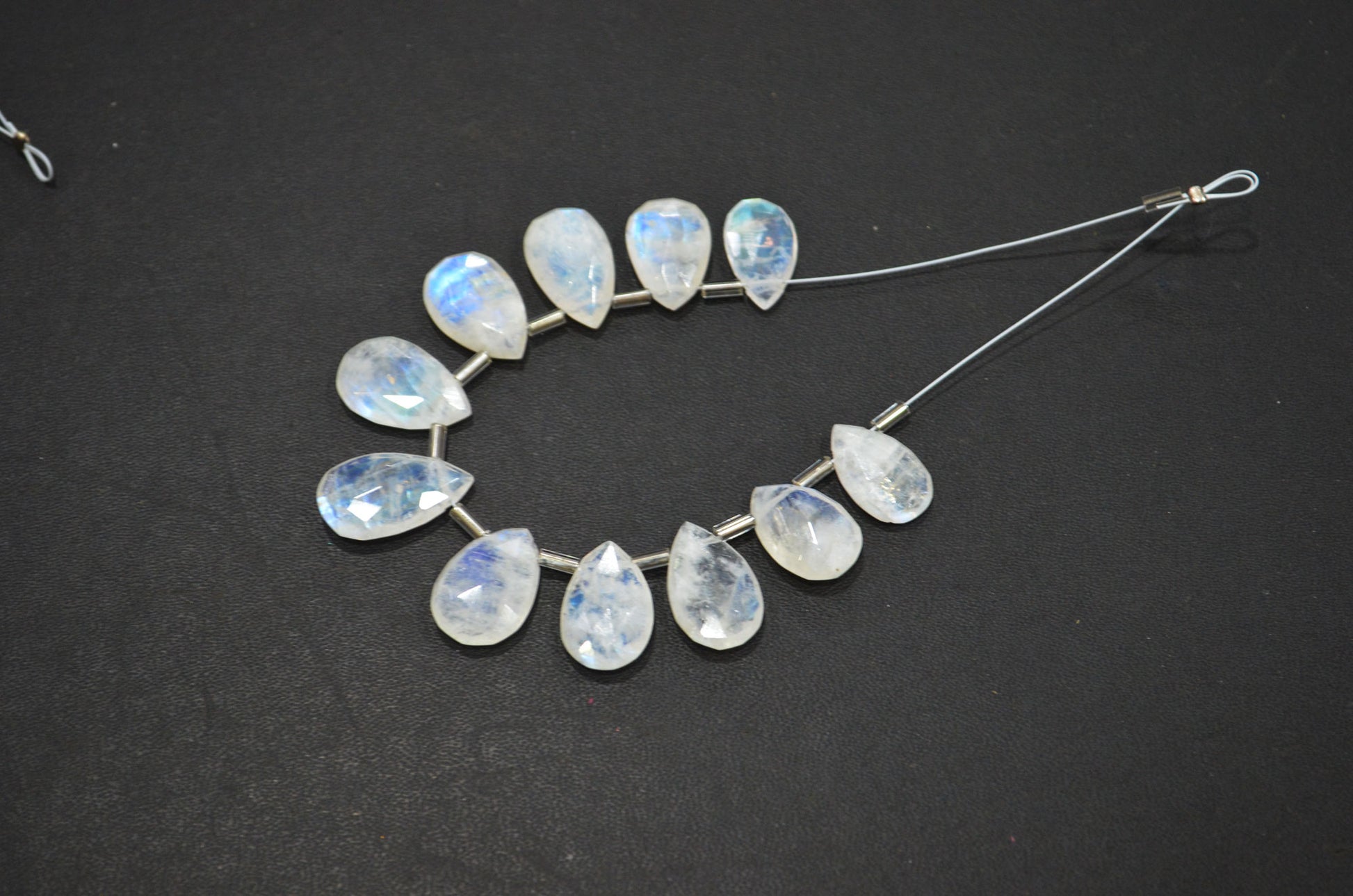 11 Pieces In A Strand Rainbow Moonstone Pear Shape Beads , Rainbow Moonstone Faceted Briolettes , Sold By Strand , 9x13 - 11x17.50 mm , 32430