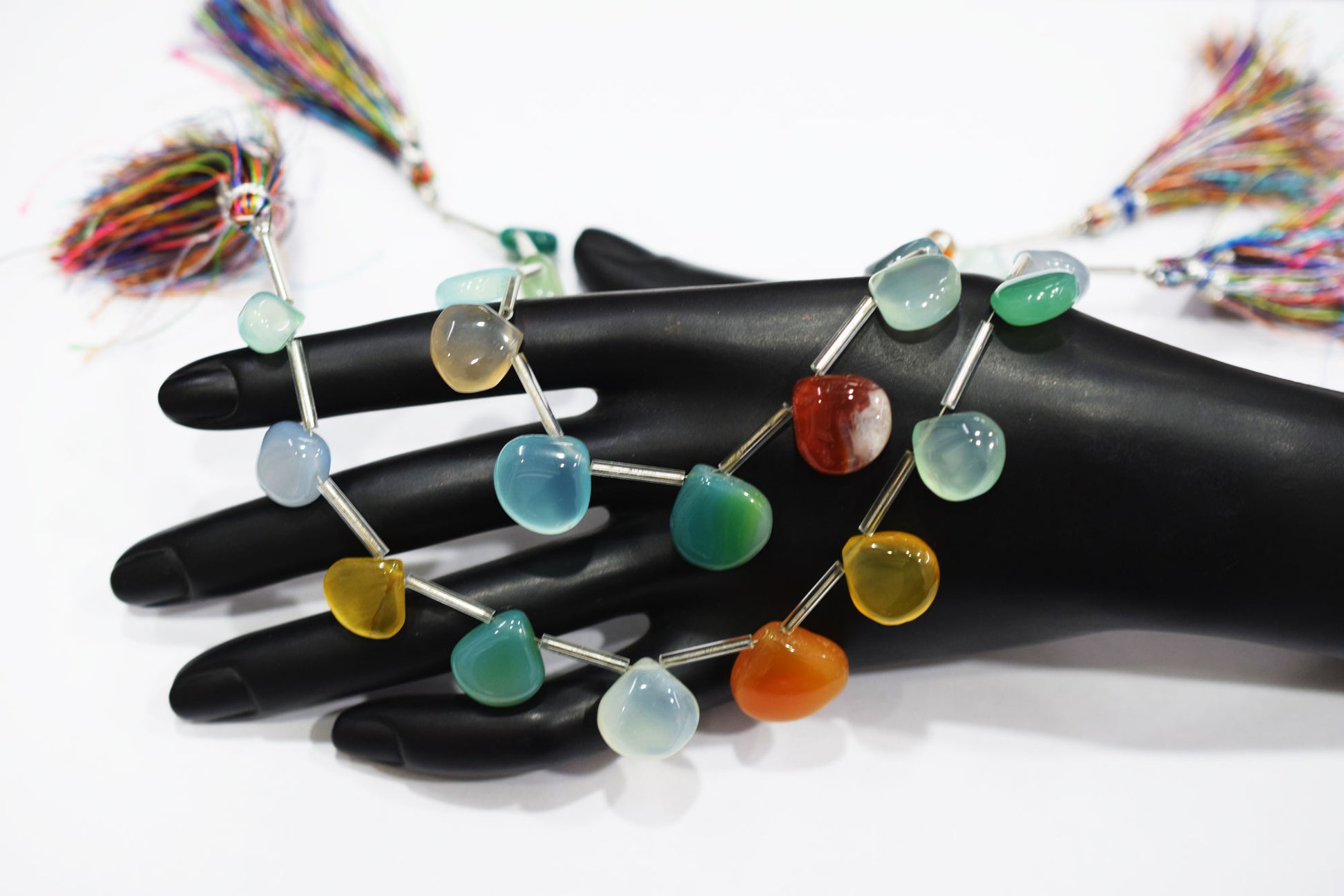 11 Pieces In A Strand Multi Chalcedony Heart Shape Beads , Multi Chalcedony Smooth Briolettes , Sold By Strand , 10x10 - 15x15 mm , 17882