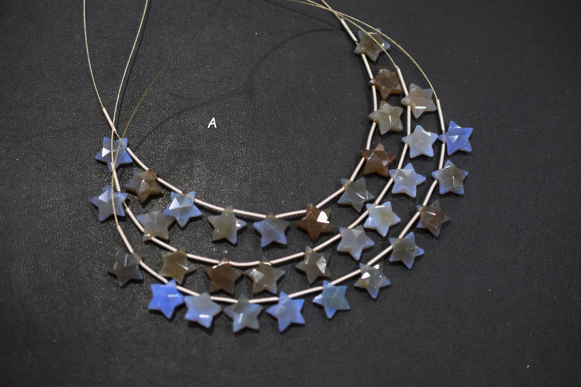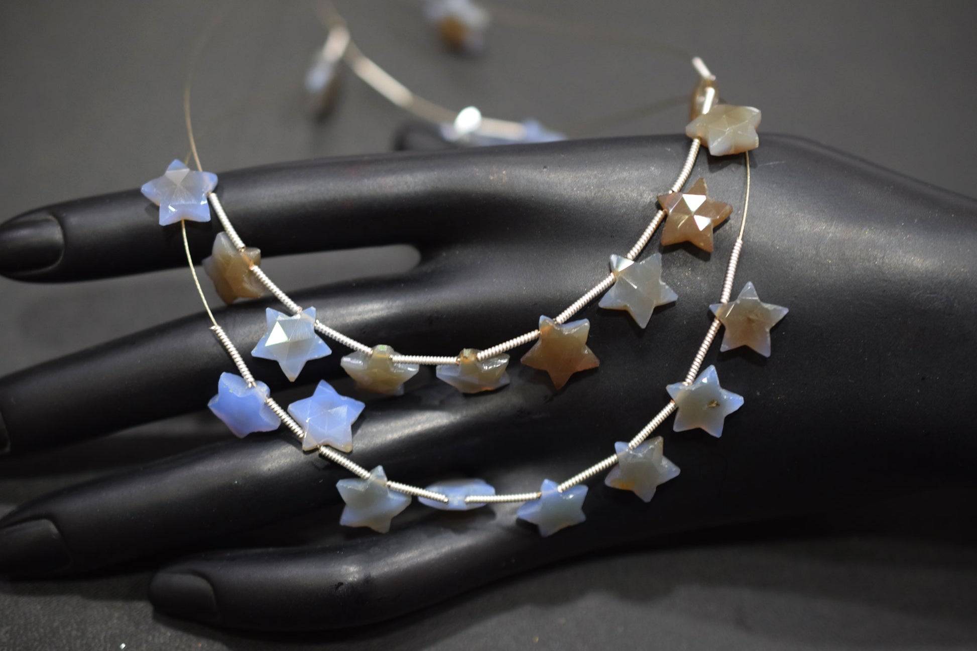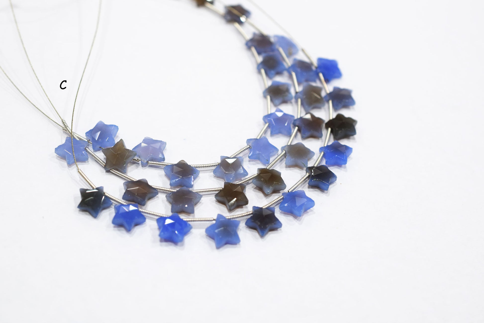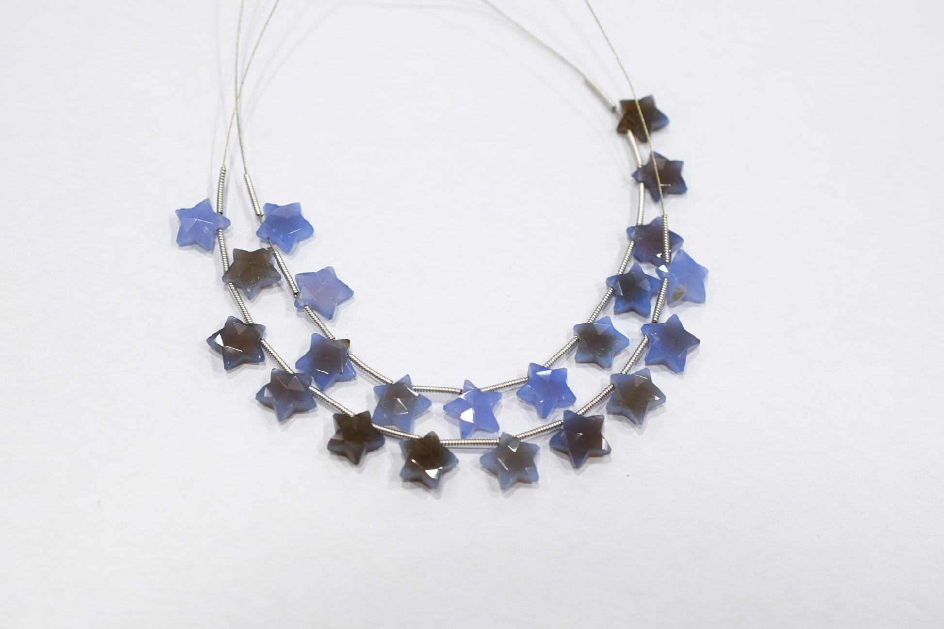 11 Pieces In A Strand Natural Blue Chalcedony Concave Cut Star Shape Beads , Blue Chalcedony Faceted Briolettes , Sold By Strand , 10 mm , 17361