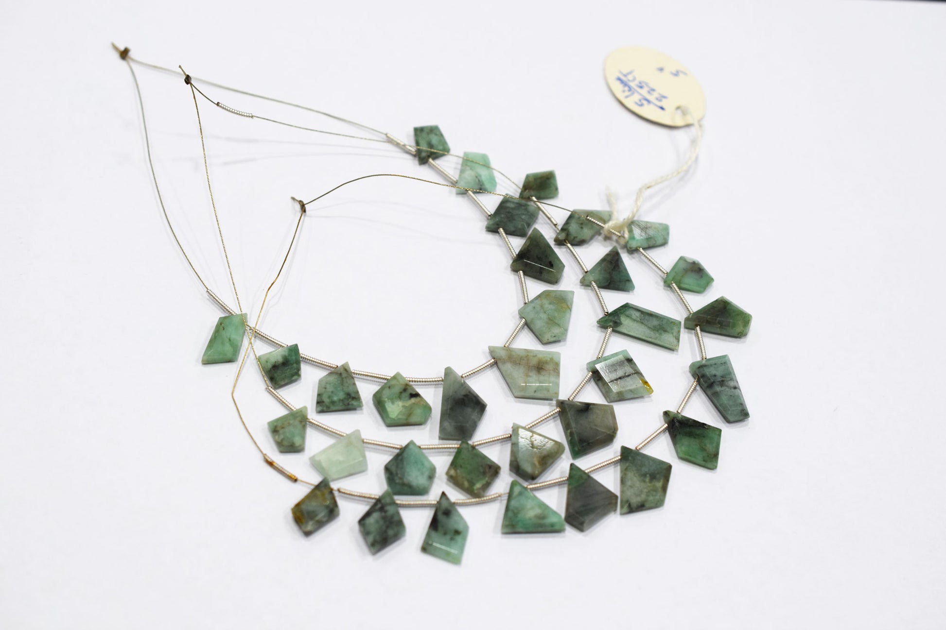 11 Pieces In A Strand Sakota Emerald Crown Cut Tablets Gemstone , Sakota Emerald Geometrical Shape Briolettes , Sold By Strand , 7x10 - 11x14 mm , 17385