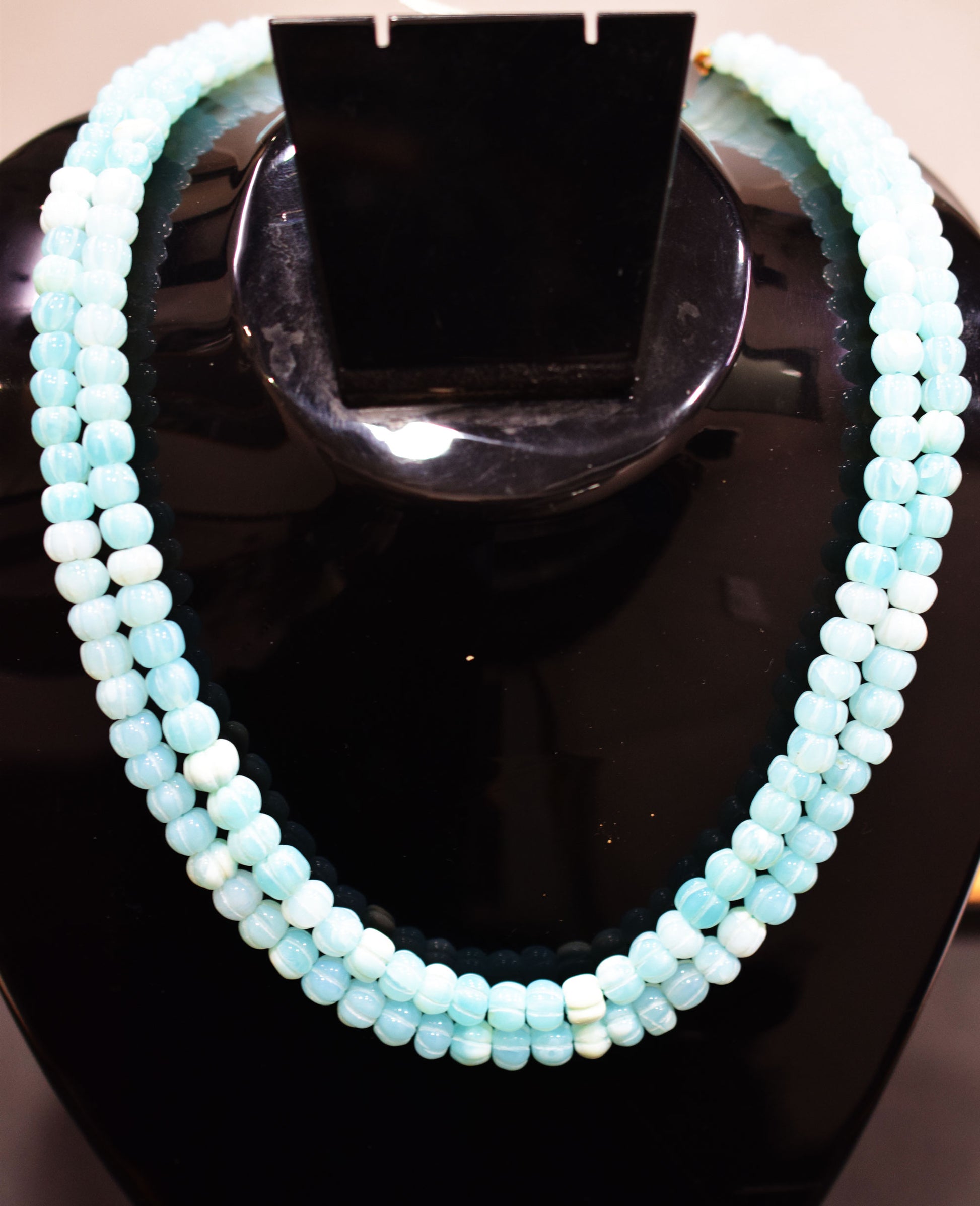 2 Line Blue Opal Carved Melon Shape Necklace , Blue Opal Necklace With Adjustable Tussle , 7 - 8.50 mm , 16"-18" , 20188