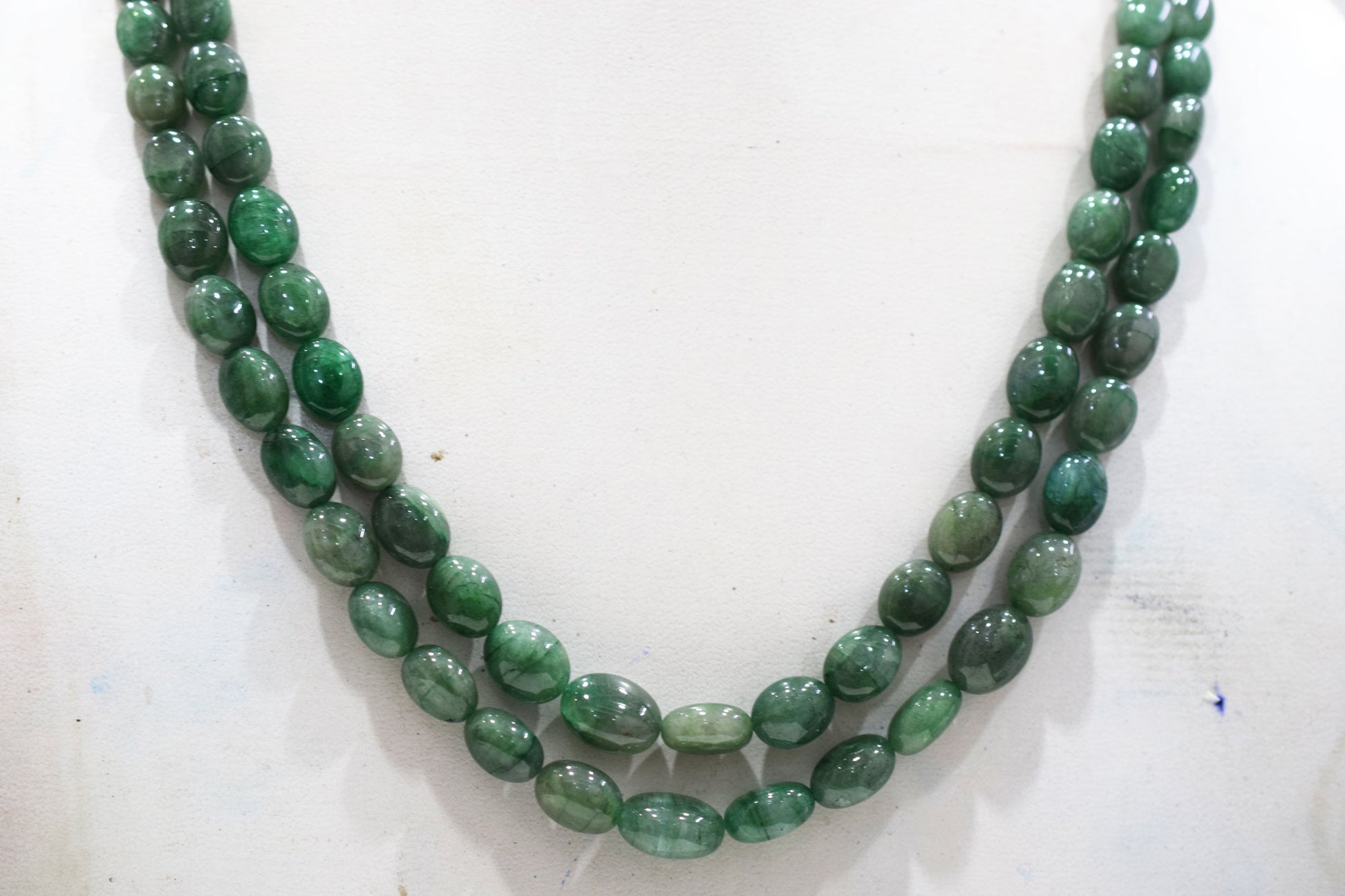 2 Line Natural Emerald Green Smooth Oval Shape Necklace With Adjustable Tussle , 6.5x8 - 10x14 mm , 17"- 18" , 18866