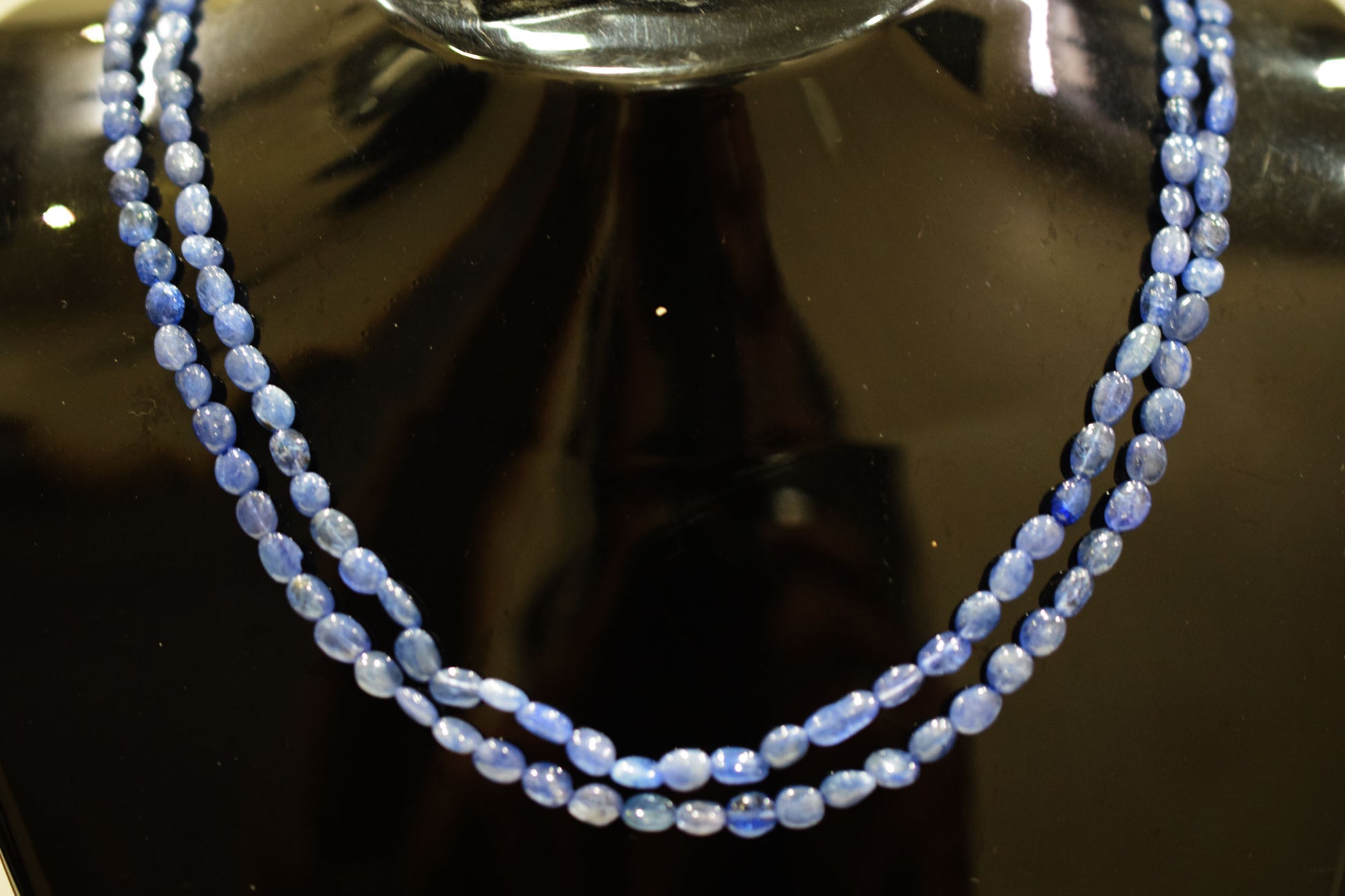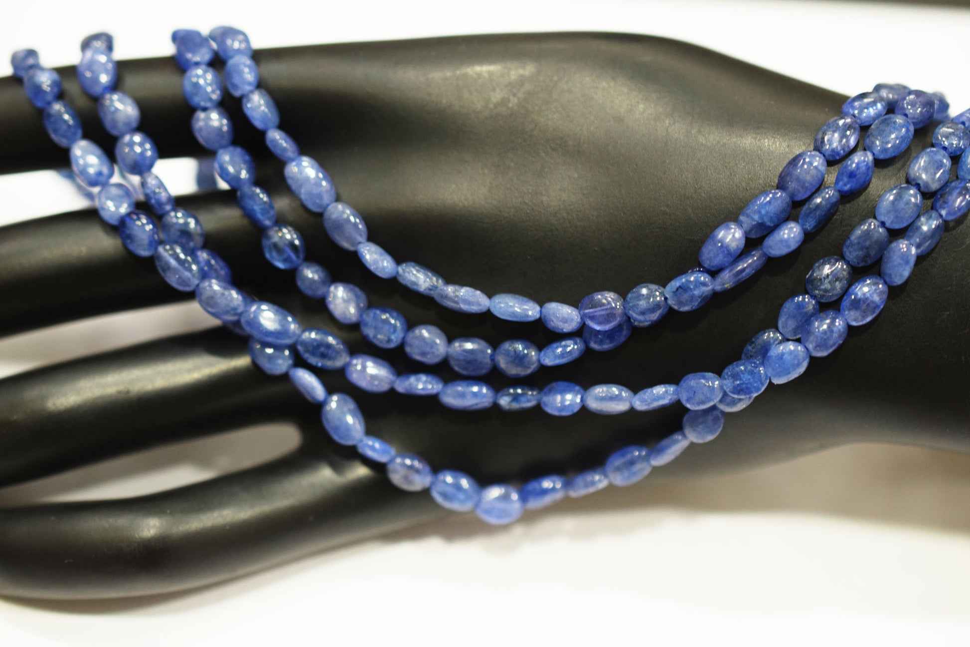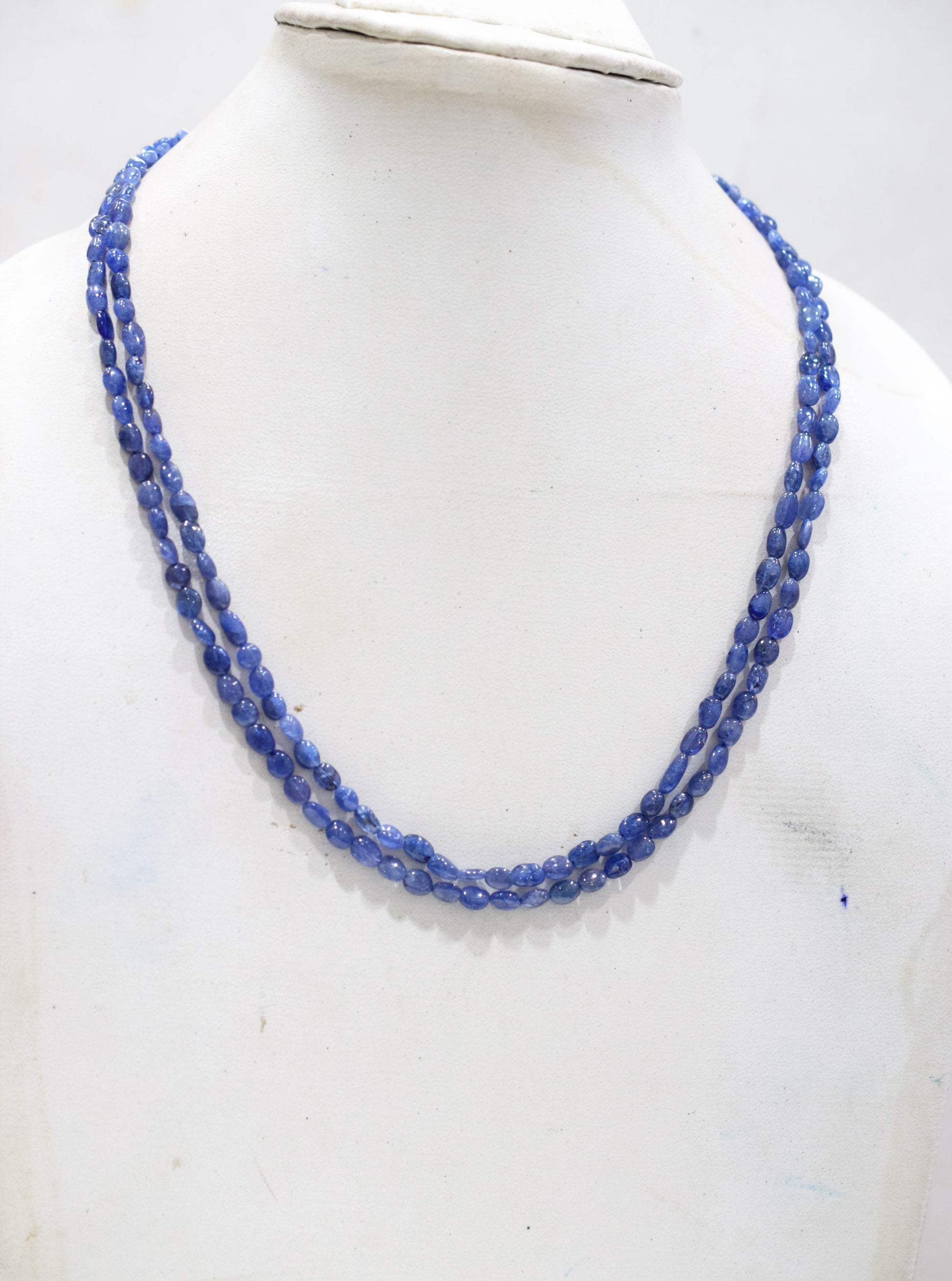 2 Lines Tanzanite Smooth Nuggets Shape Necklace , 2 Line Necklace 16 - 18 Inches Long With Adjustable Tussle , 4x5 - 4.5x7 mm , 20195