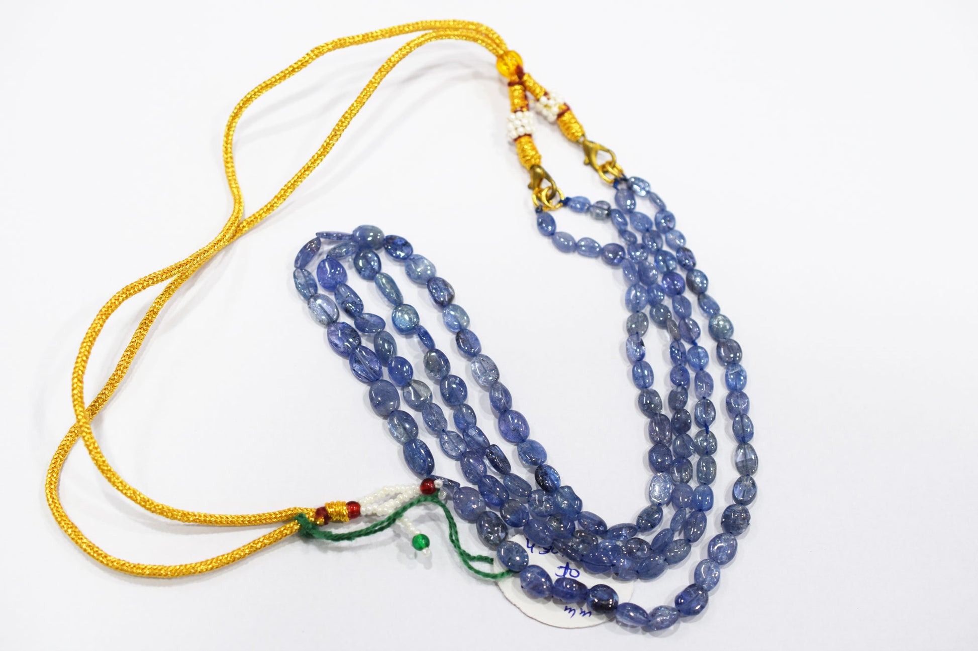 2 Lines Tanzanite Smooth Nuggets Shape Necklace , 2 Line Necklace 16 - 18 Inches Long With Adjustable Tussle , 4x5 - 6x10 mm , 20193