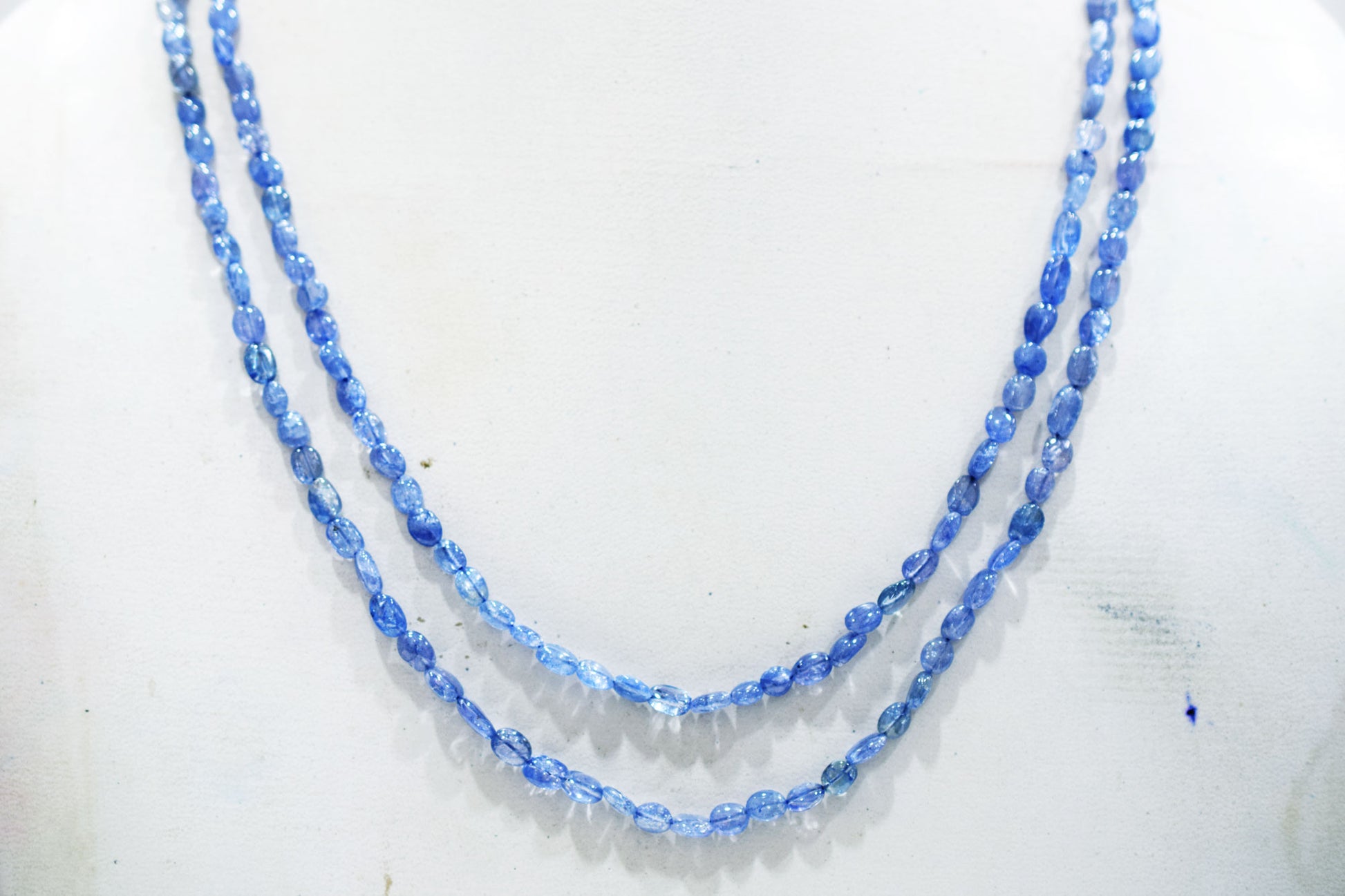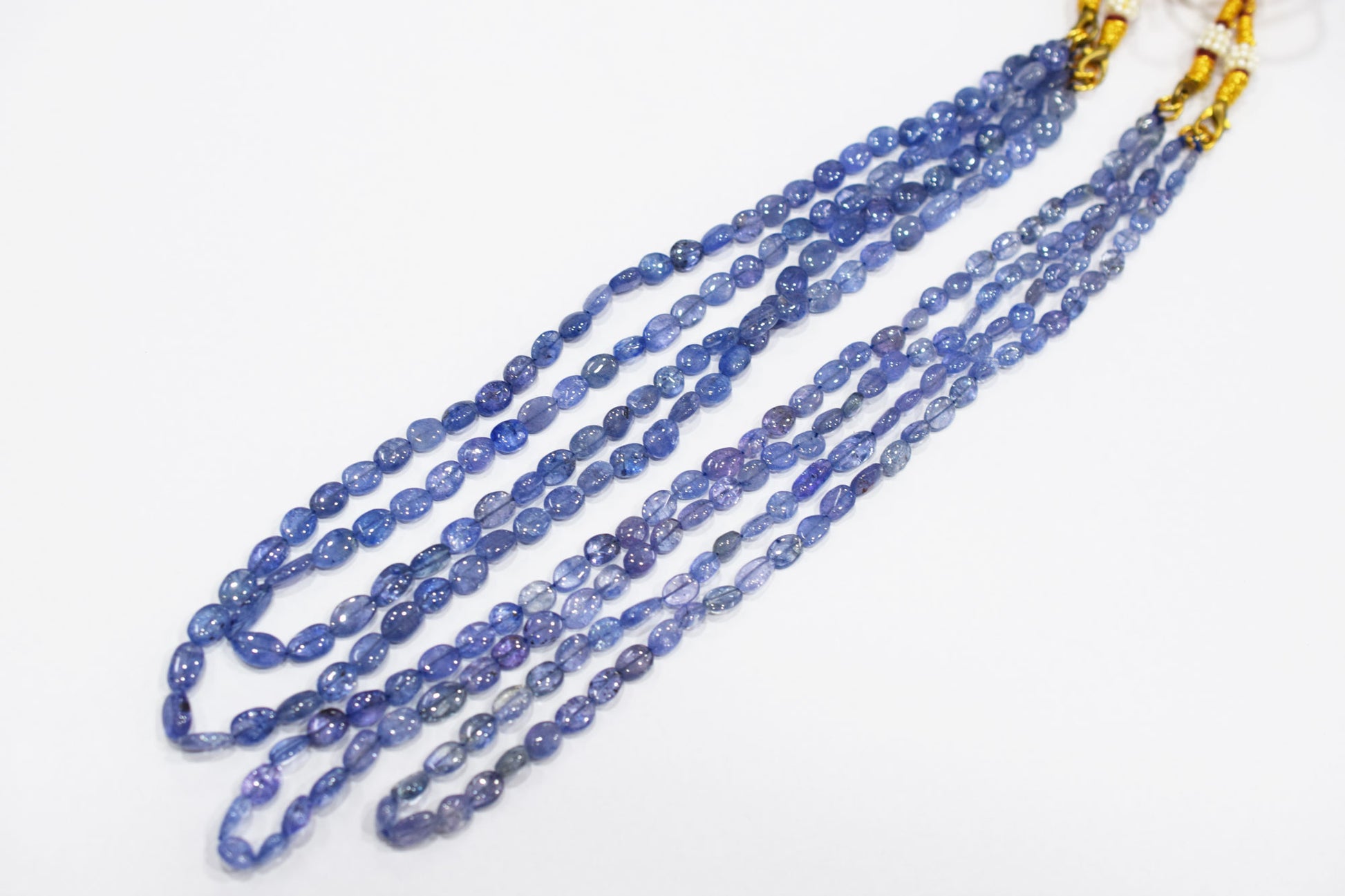 2 Lines Tanzanite Smooth Nuggets Shape Necklace , 2 Line Necklace 16 - 18 Inches Long With Adjustable Tussle , 4x5 - 6x9 mm , 20194
