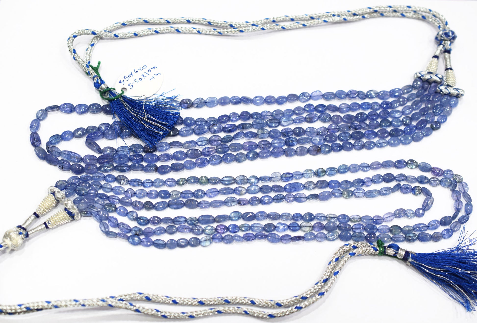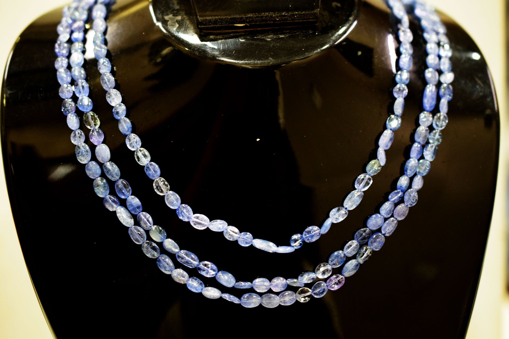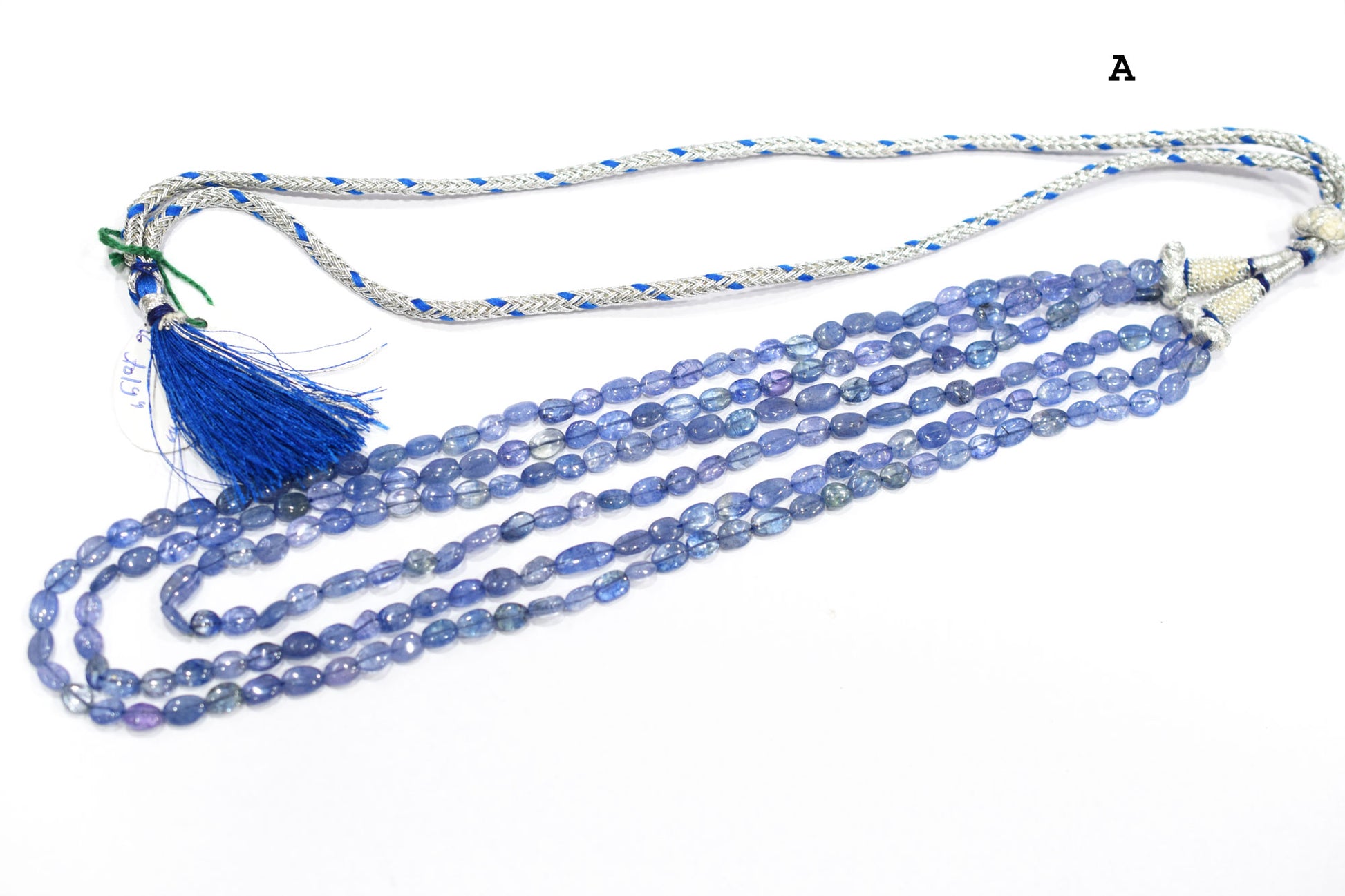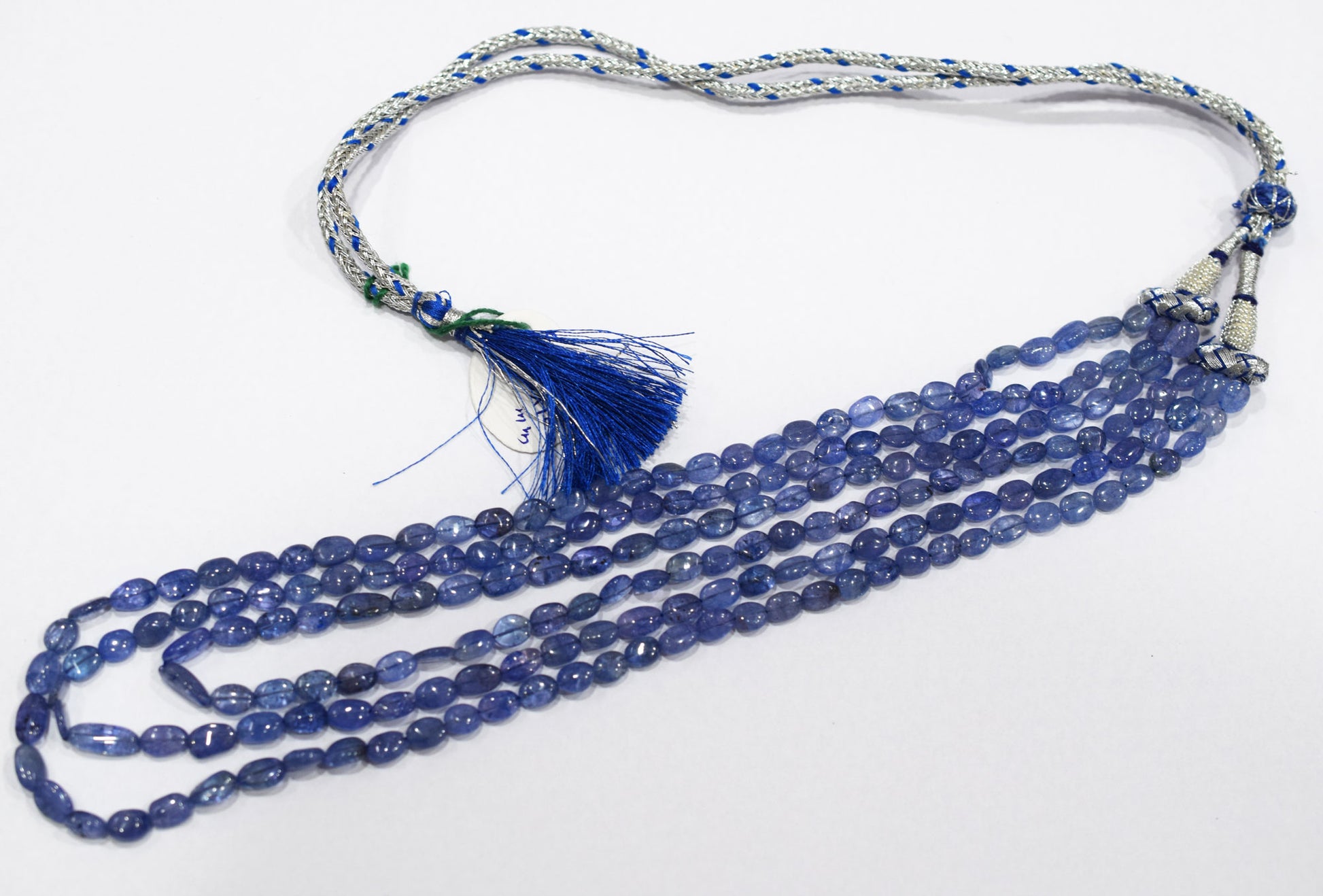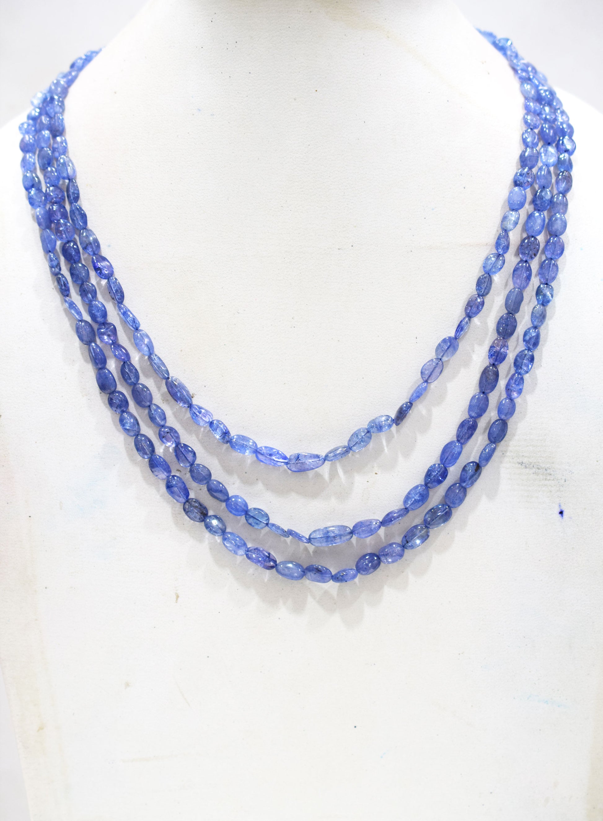 3 Lines Tanzanite Smooth Nuggets Shape Necklace , 3 Line Necklace 16 - 19 Inches Long With Adjustable Tussle , 5x6 - 5x10 mm , 20199