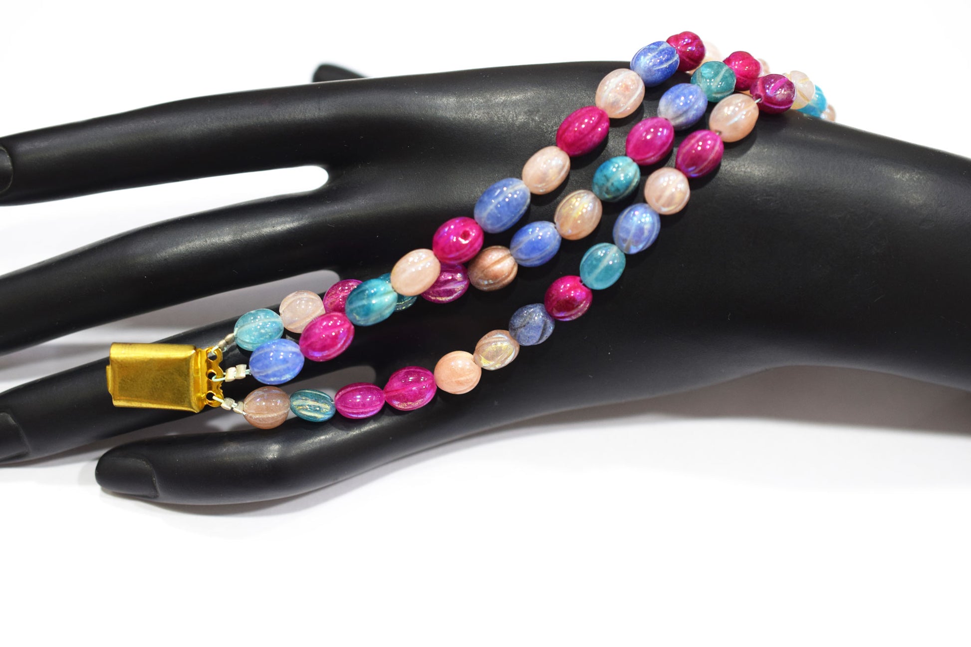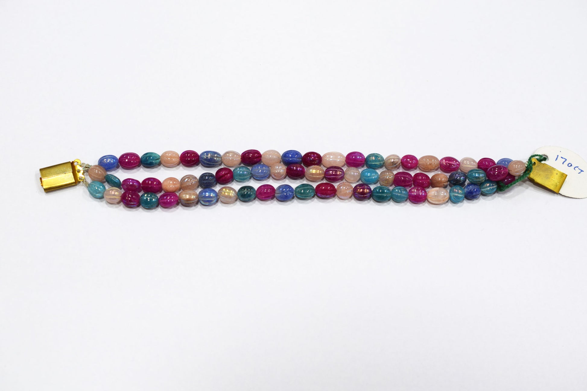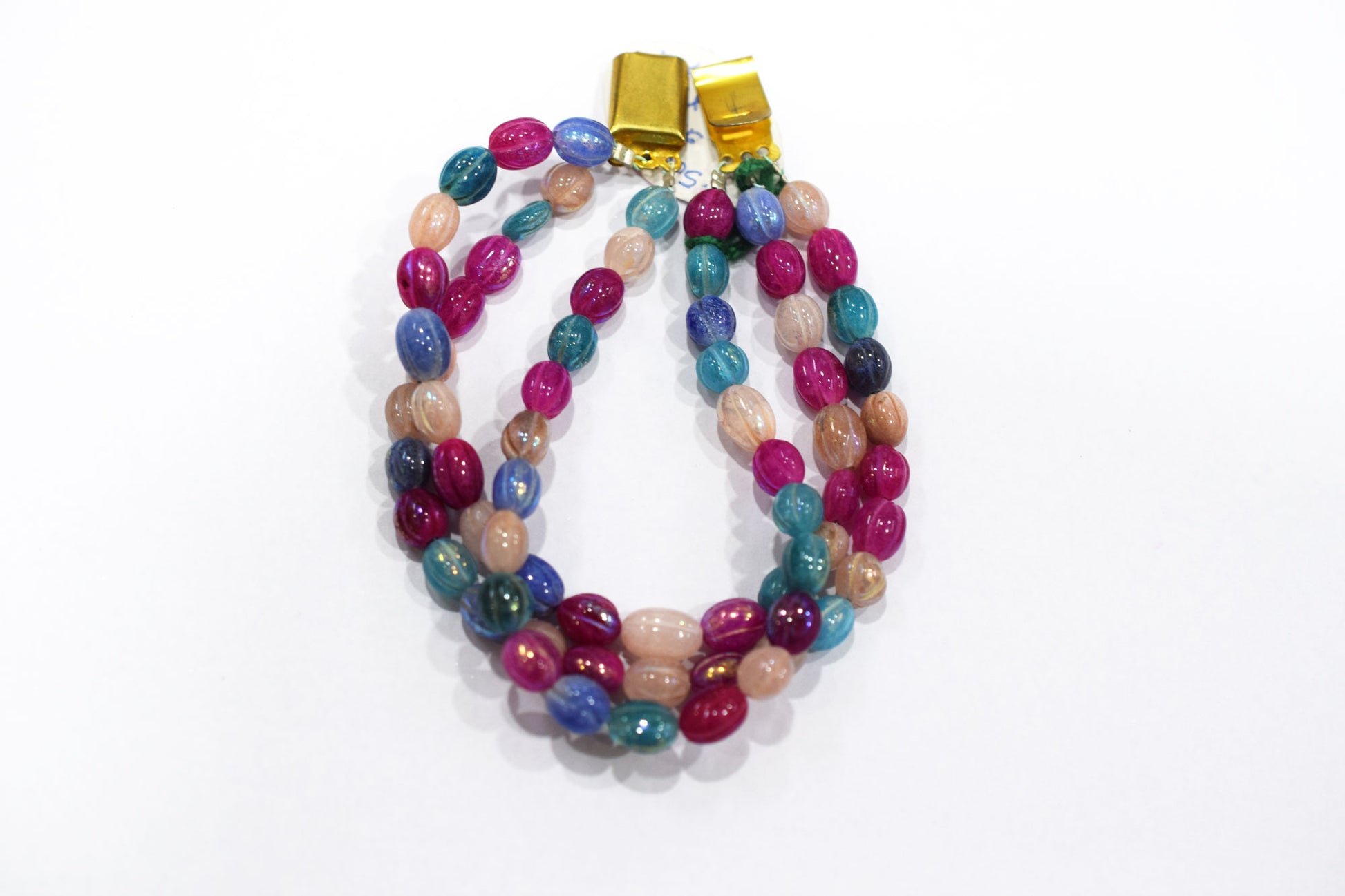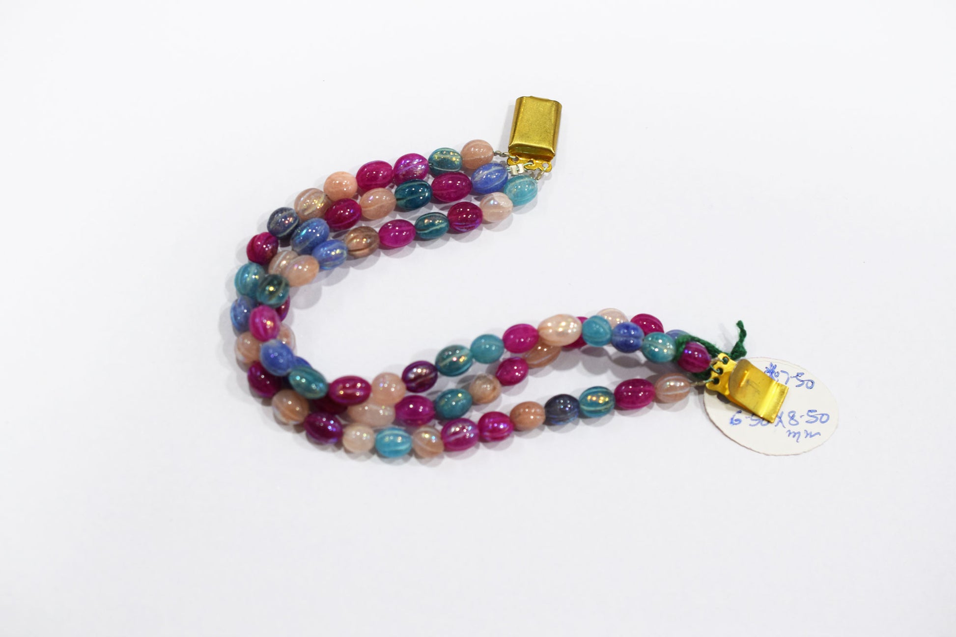 3 Lines Rustic Metallic Natural Multi Quartz Carved Oval Nuggets Bracelet , Natural Multi Quartz Carved Beads , 6.50x7.50 - 6.50x8.50 mm , 7", 20504