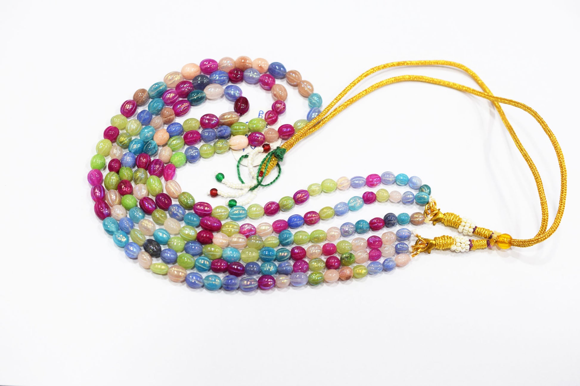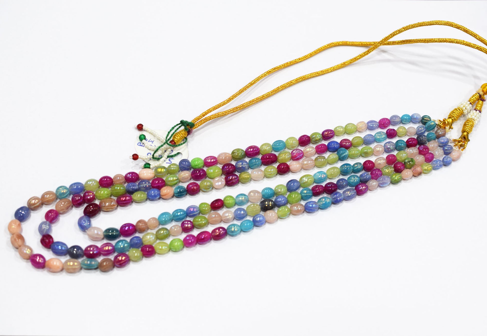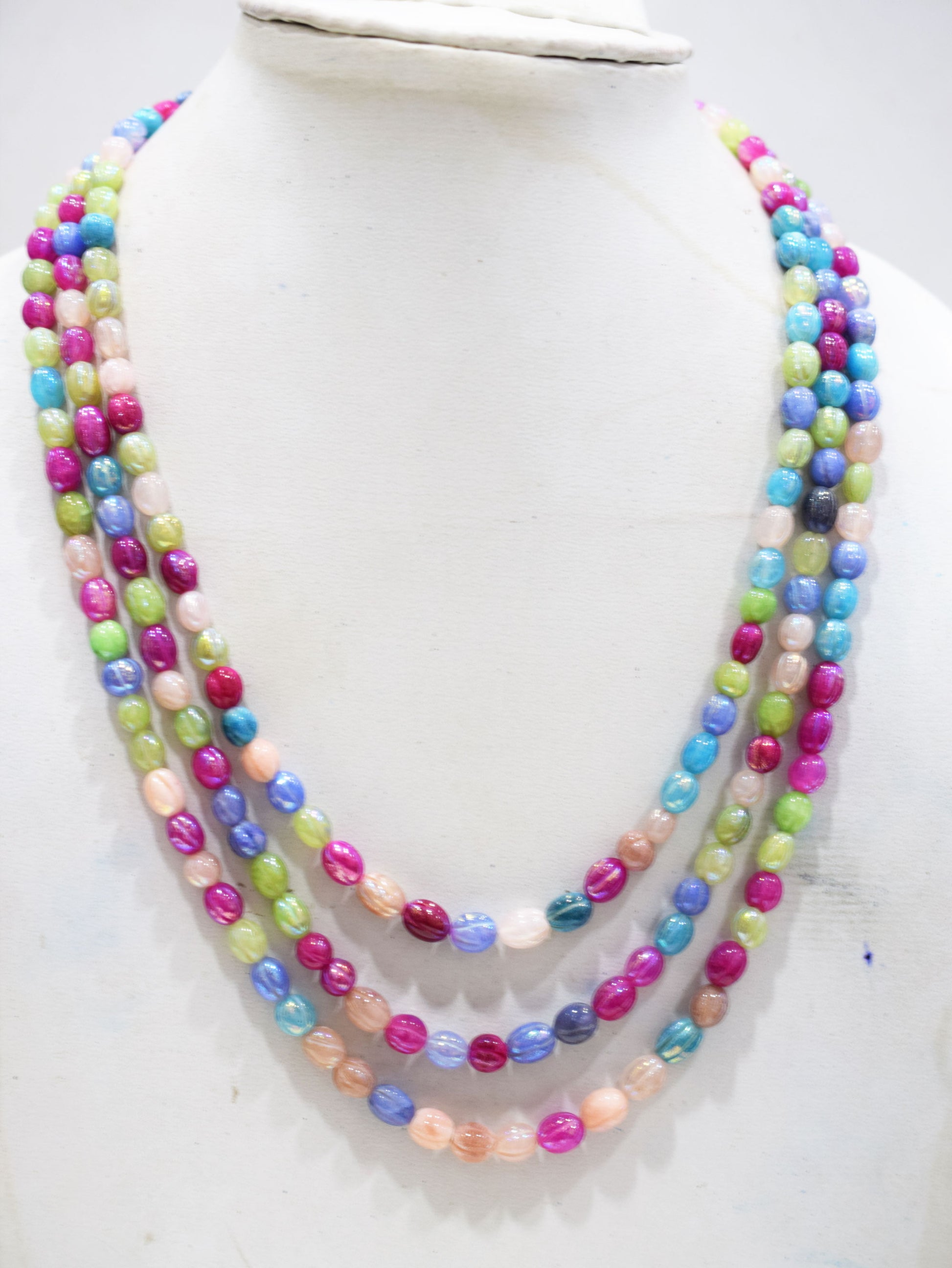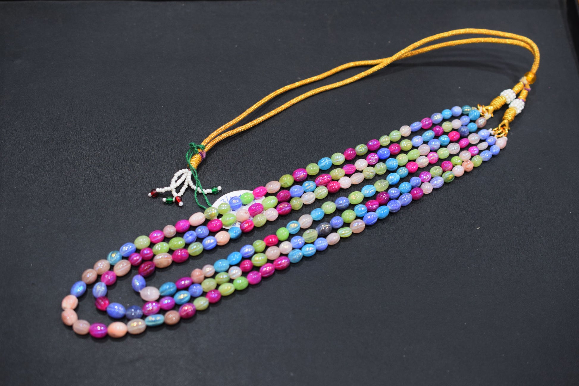3 Lines Rustic Metallic Natural Multi Quartz Carved Oval Nuggets Necklace , With Adjustable Tussle , Β 5x6 - 6.50x8 mm , 16" - 20", 20500