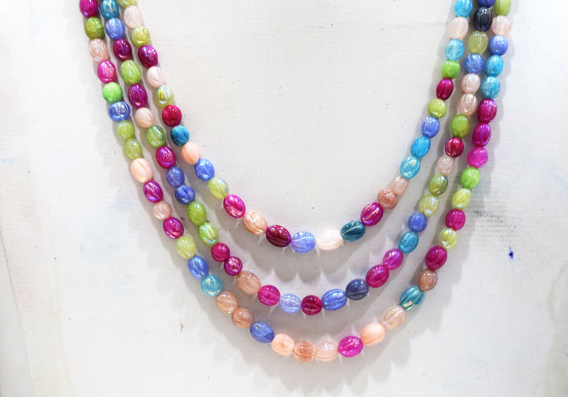 3 Lines Rustic Metallic Natural Multi Quartz Carved Oval Nuggets Necklace , 5x6 - 6.50x8 mm , 16" - 20", 20500