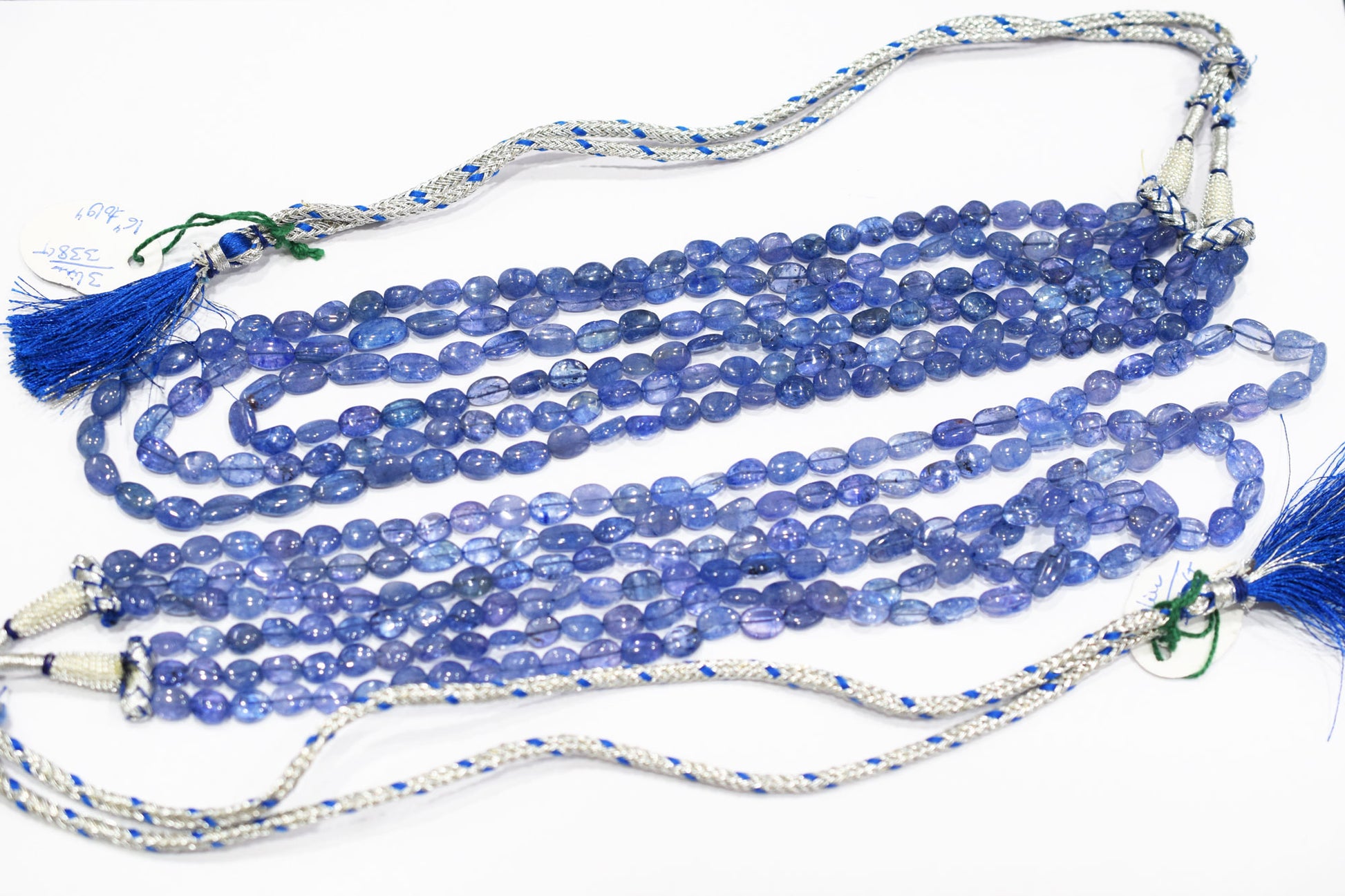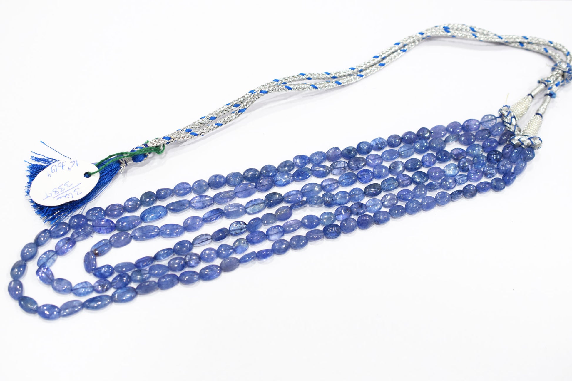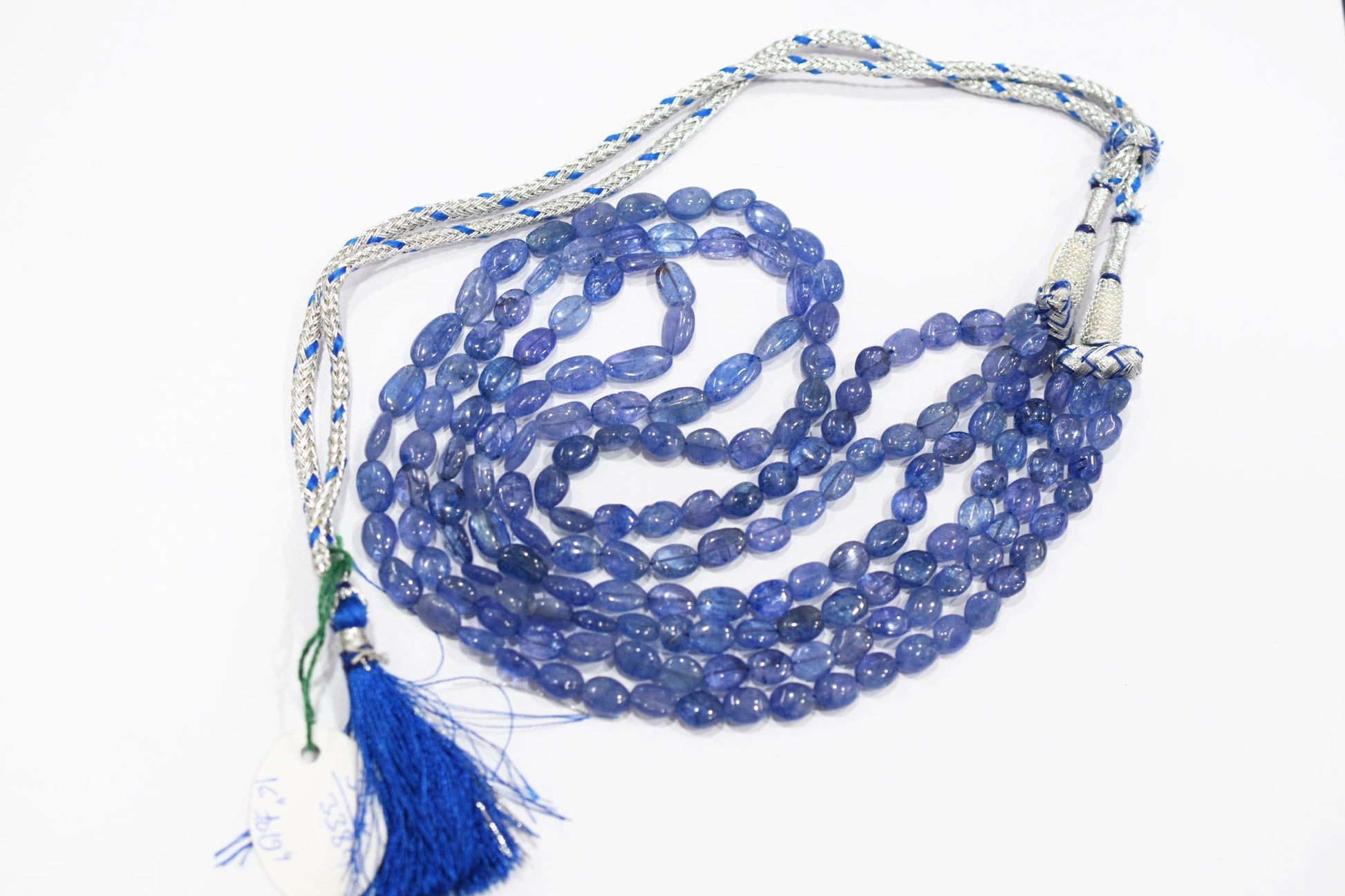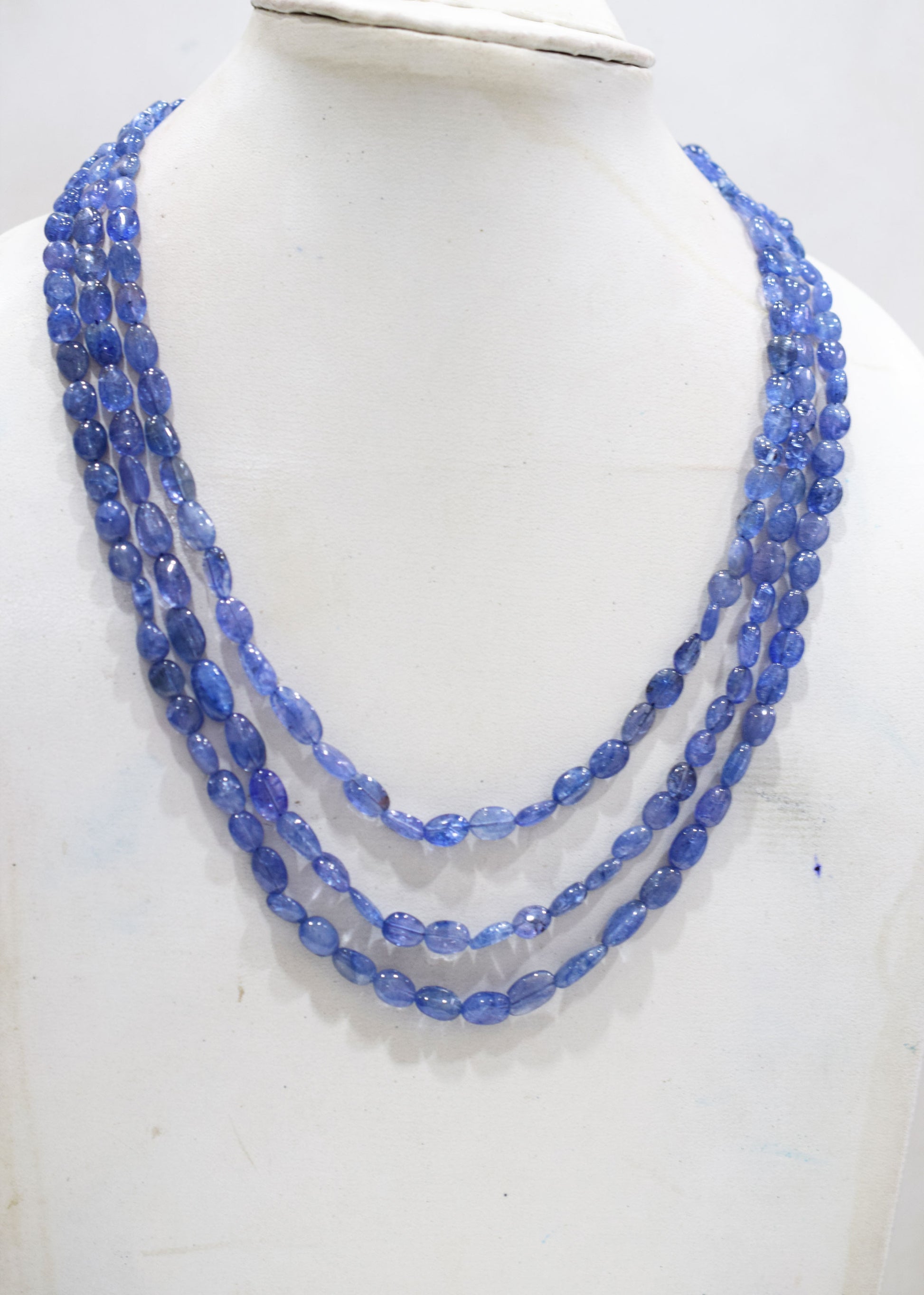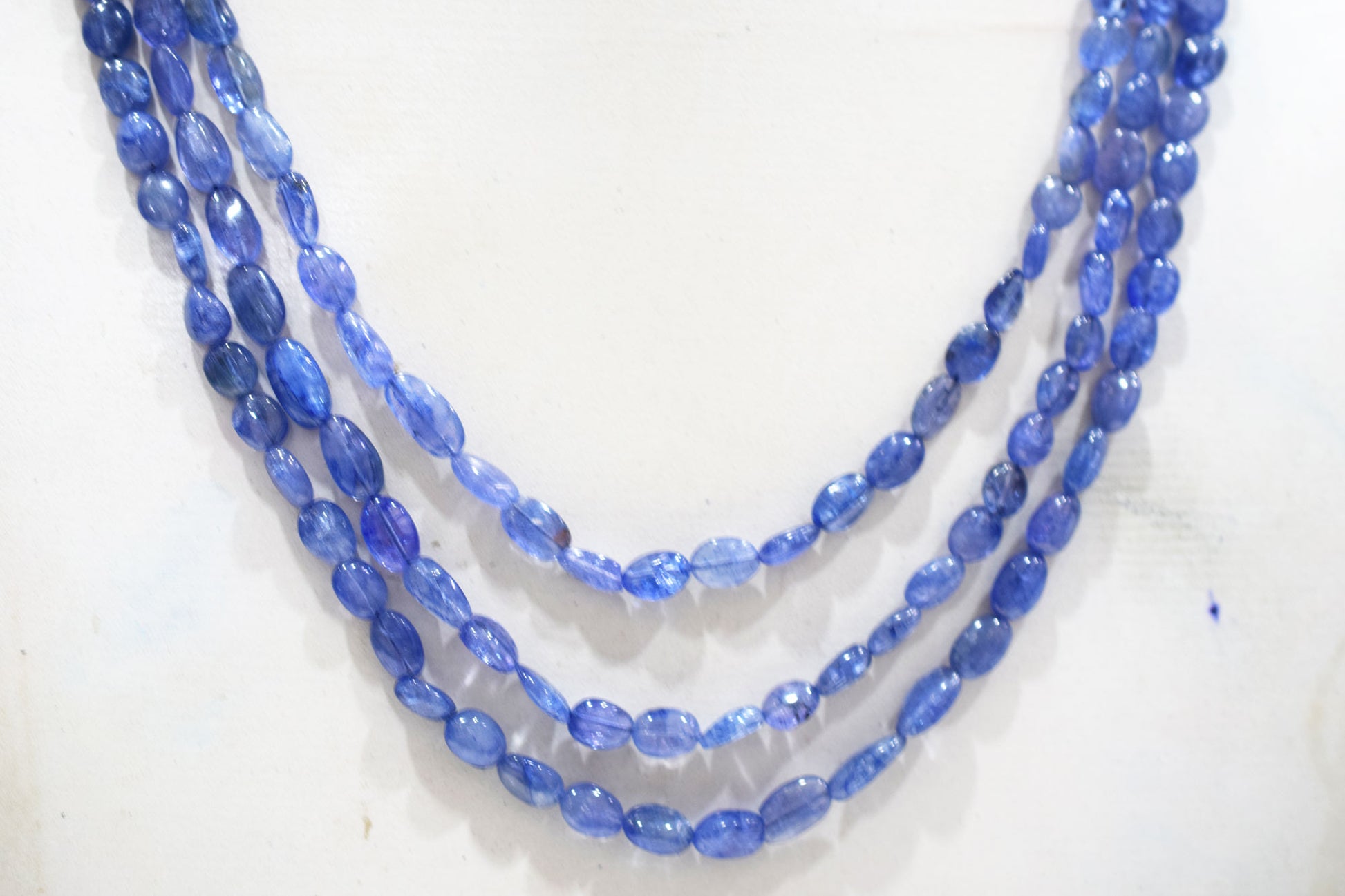 3 Lines Tanzanite Smooth Nuggets Shape Necklace , 3 Line Necklace 16 - 19 Inches Long With Adjustable Tussle , 5.5x6 - 7x11 mm , 20203