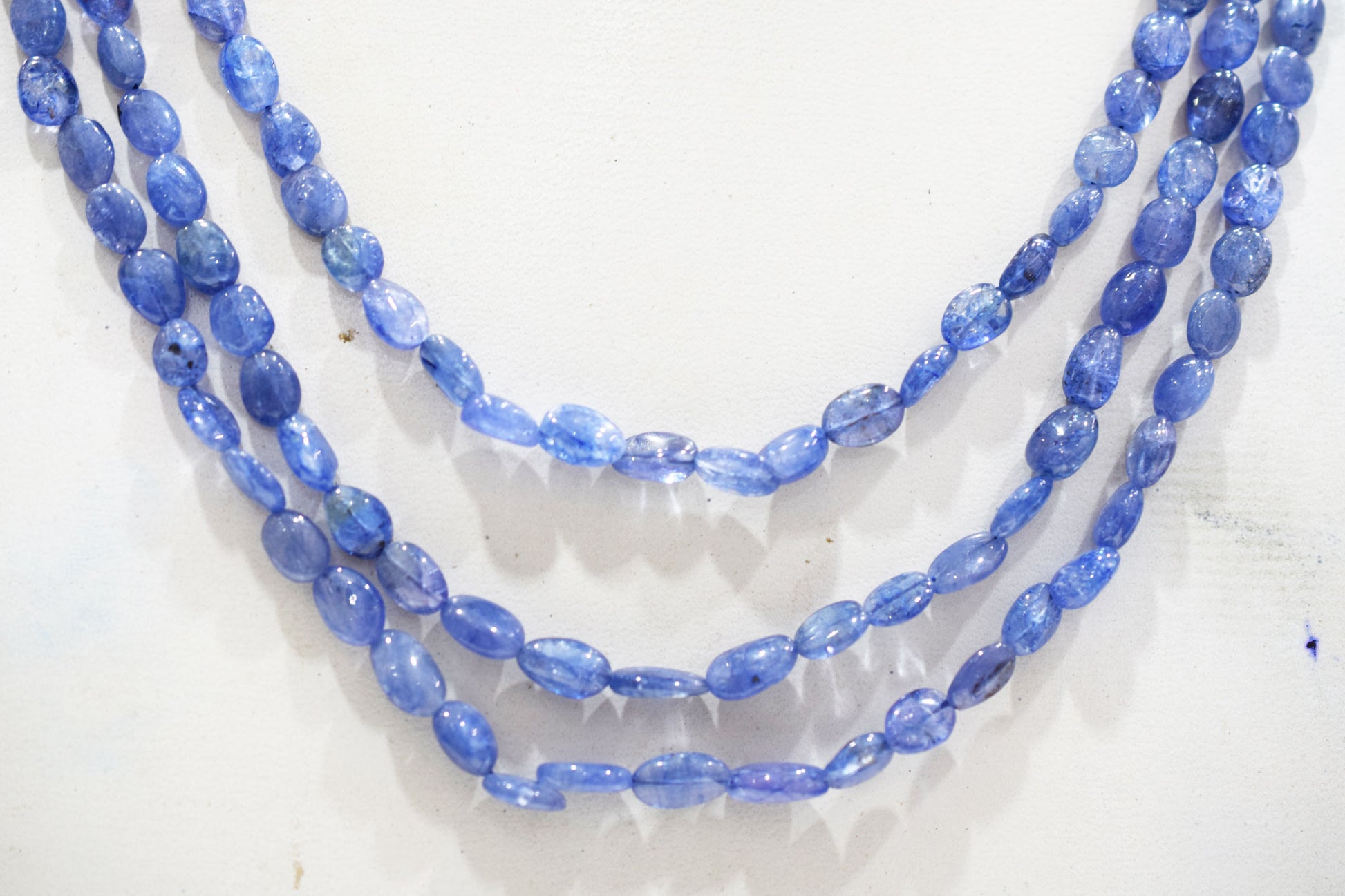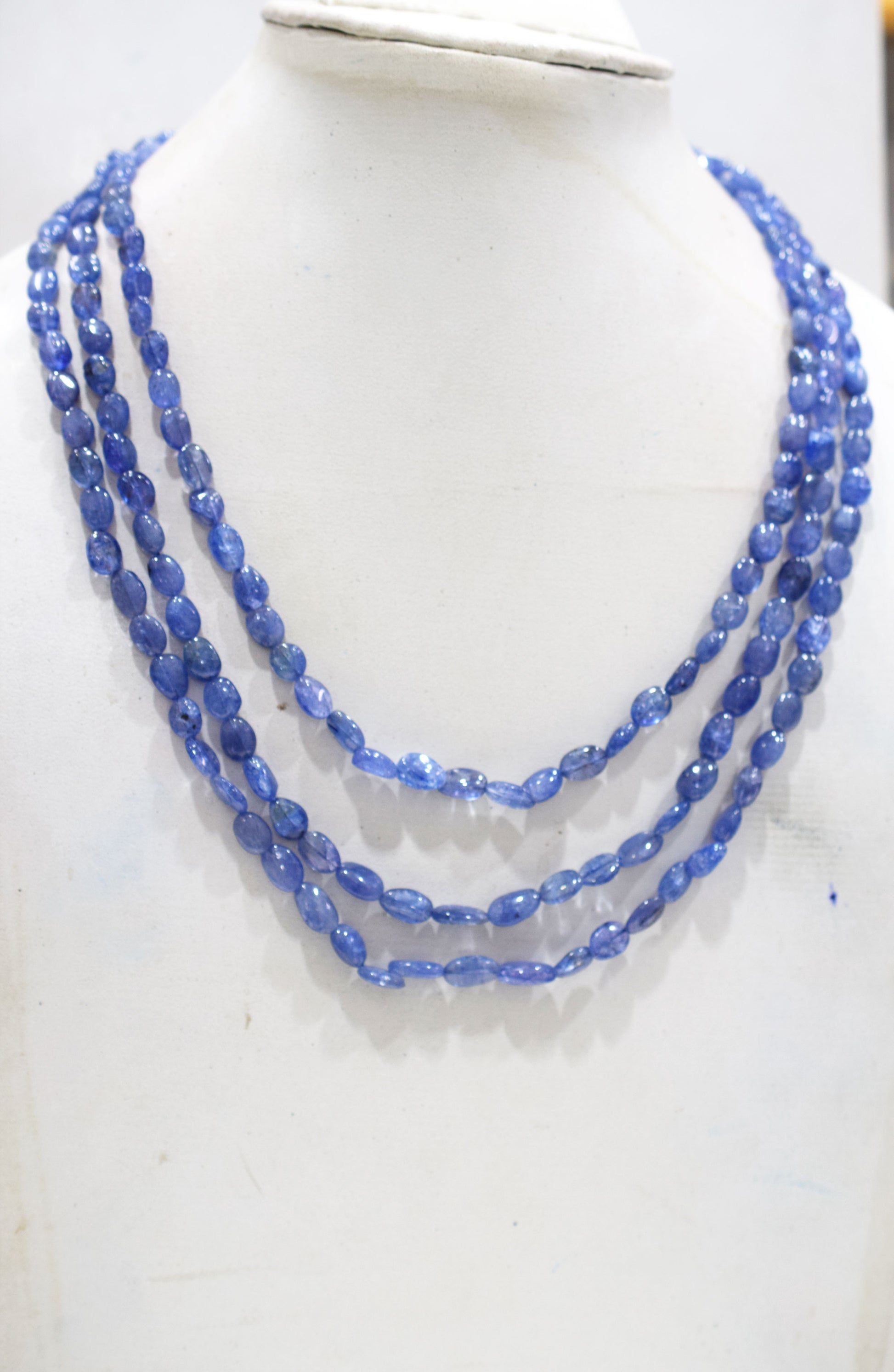 3 Lines Tanzanite Smooth Nuggets Shape Necklace , 3 Line Necklace 16 - 18 Inches Long With Adjustable Tussle , 6x7.5 - 6.5x9 mm , 20202