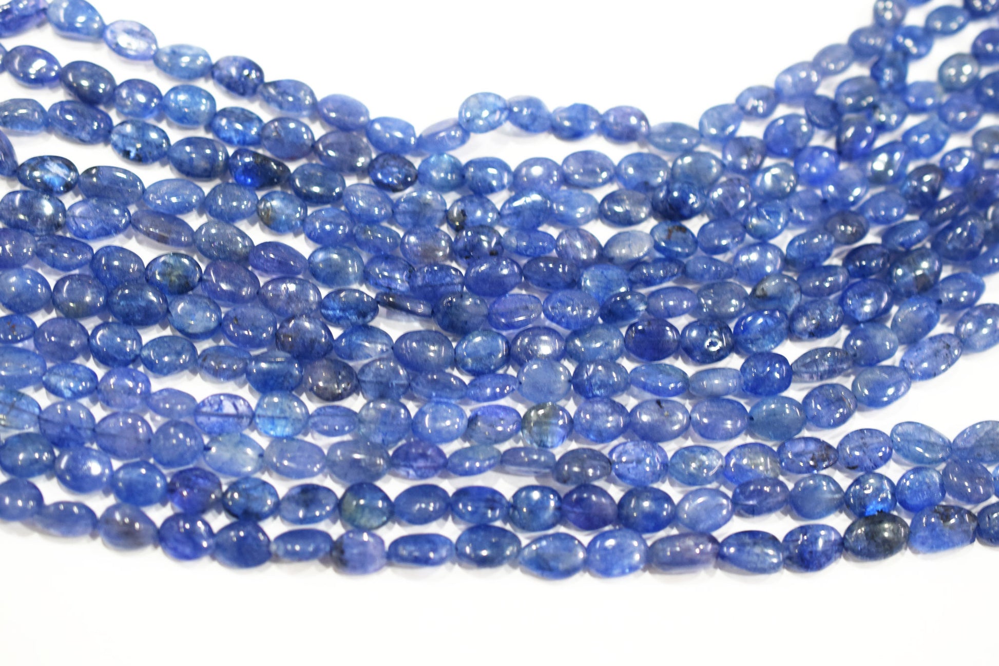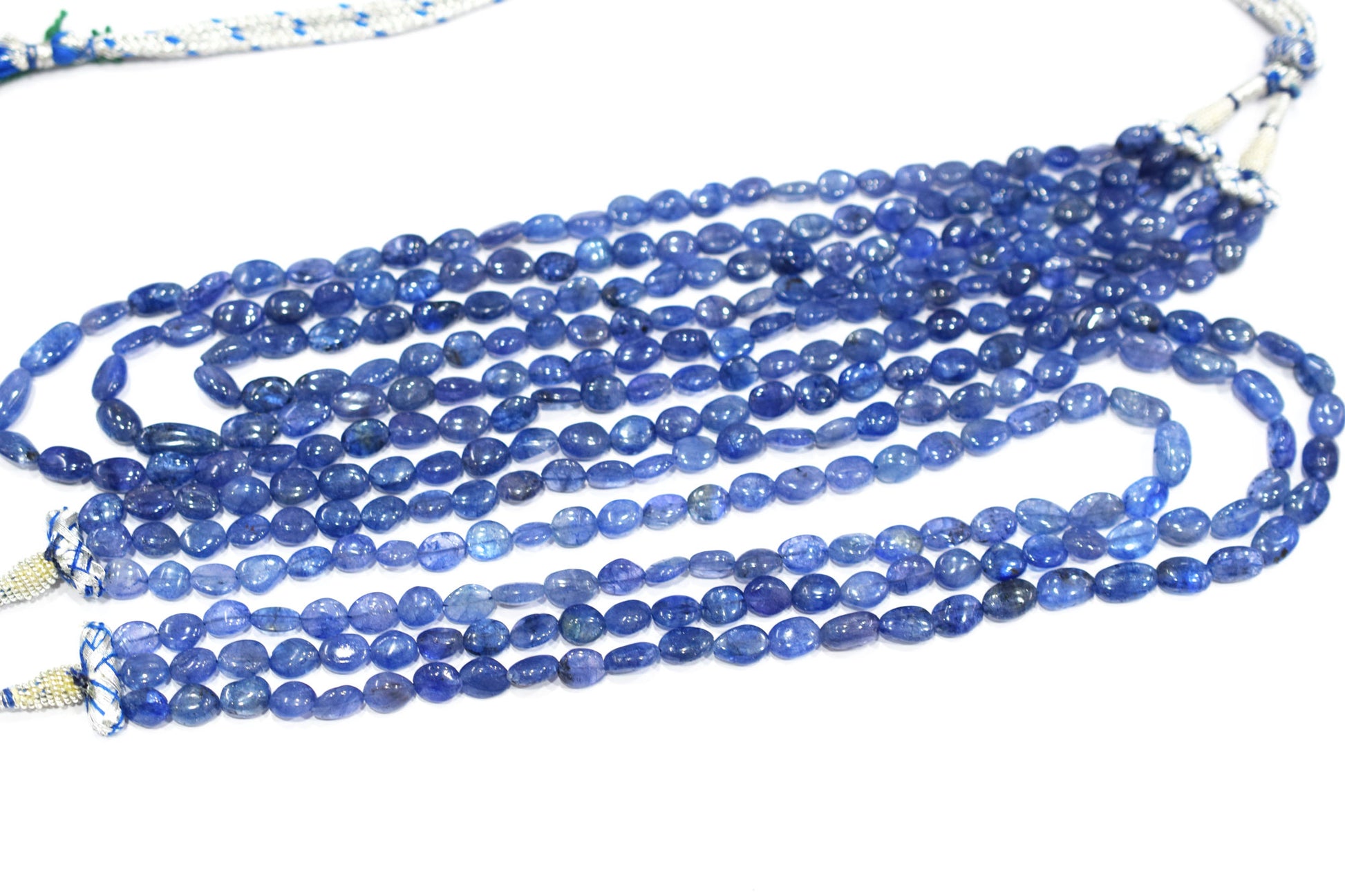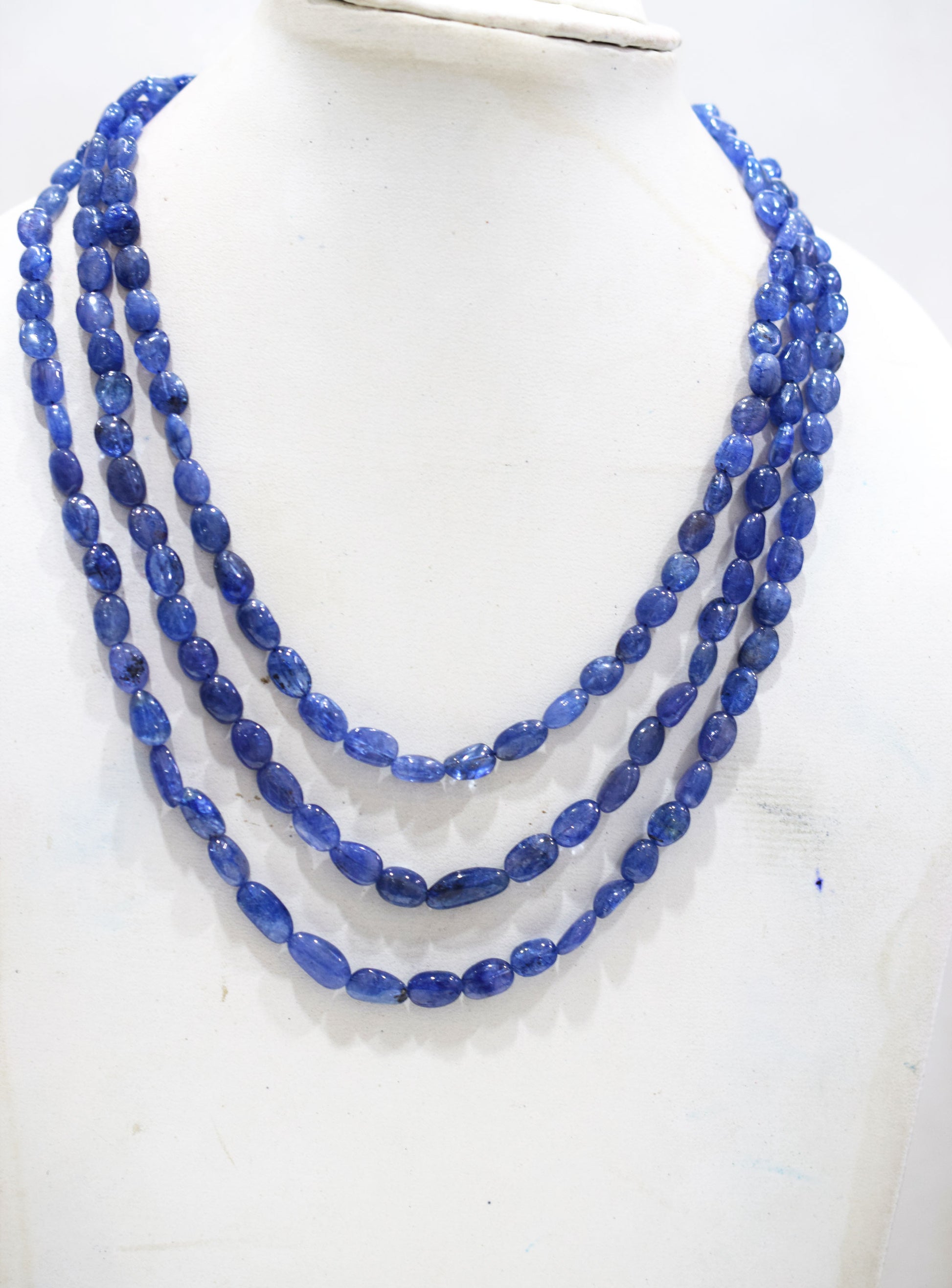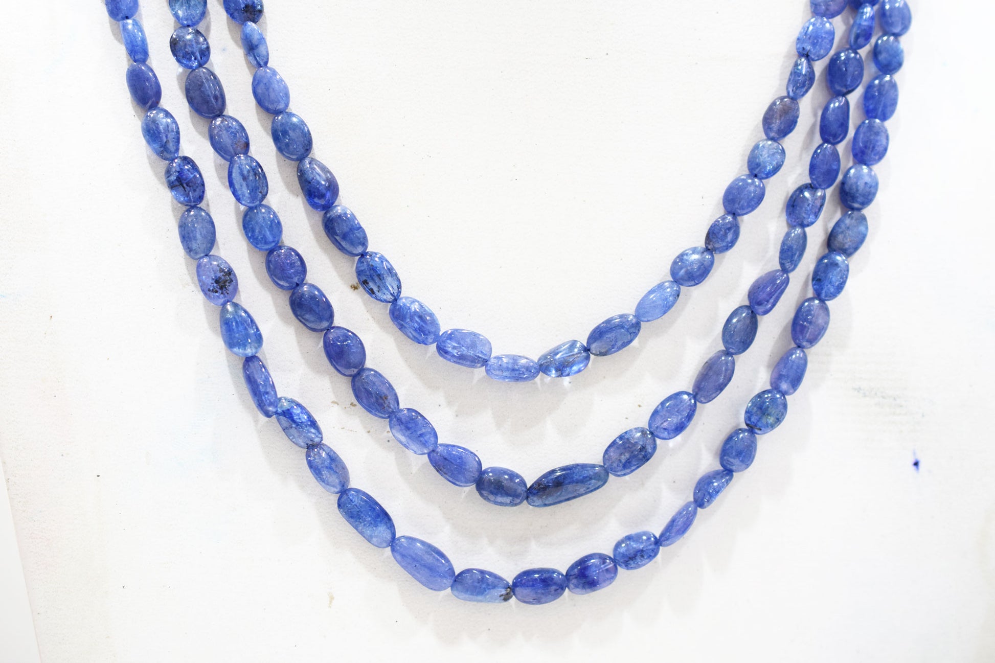 3 Lines Tanzanite Smooth Nuggets Shape Necklace , 3 Line Necklace 16 - 19 Inches Long With Adjustable Tussle , 7x8.5 - 7x12.5 mm , 20206