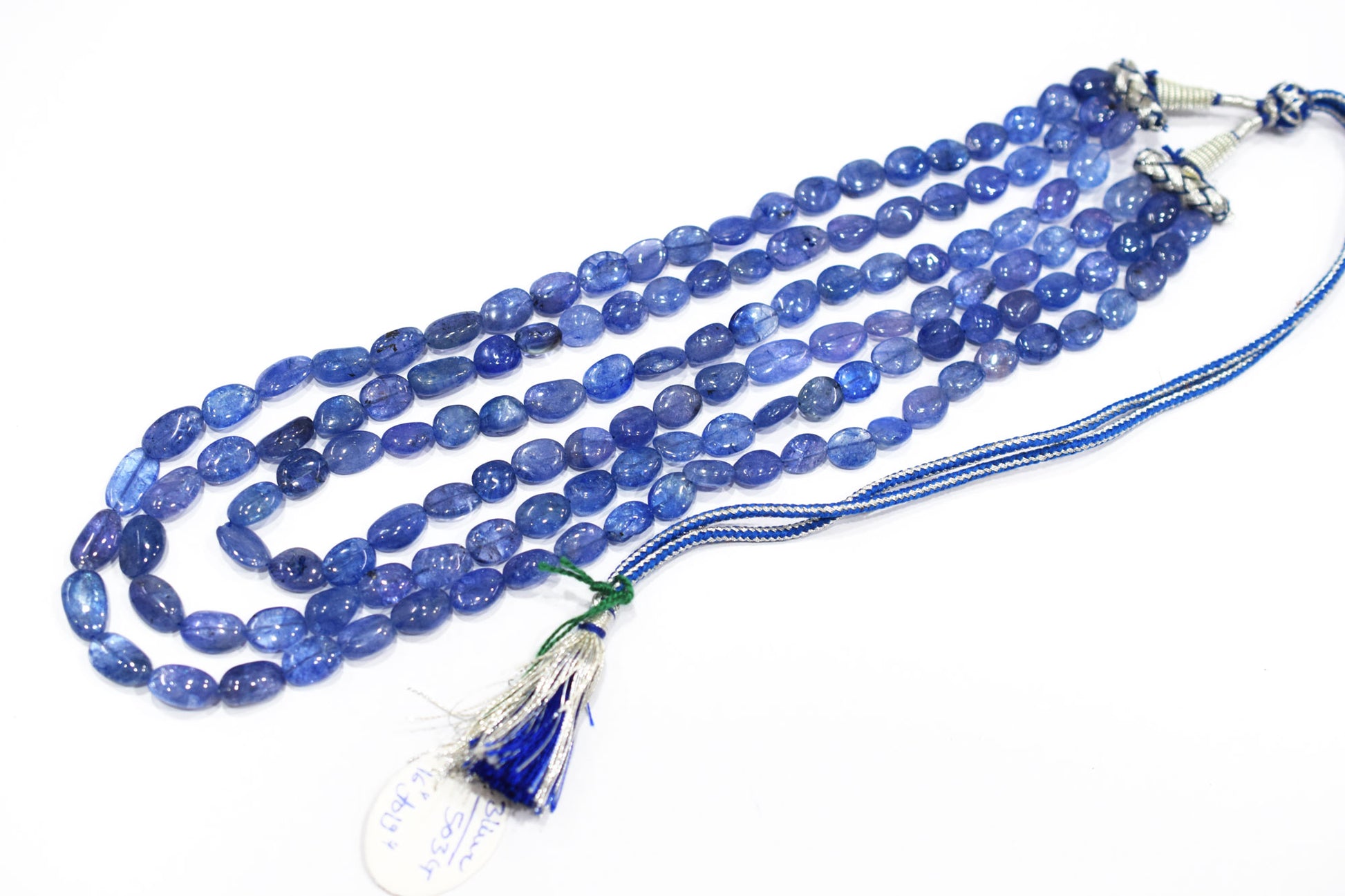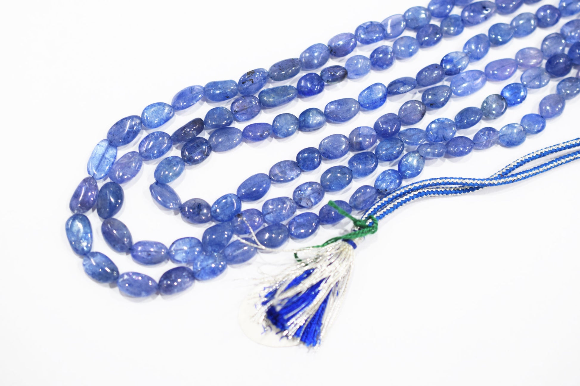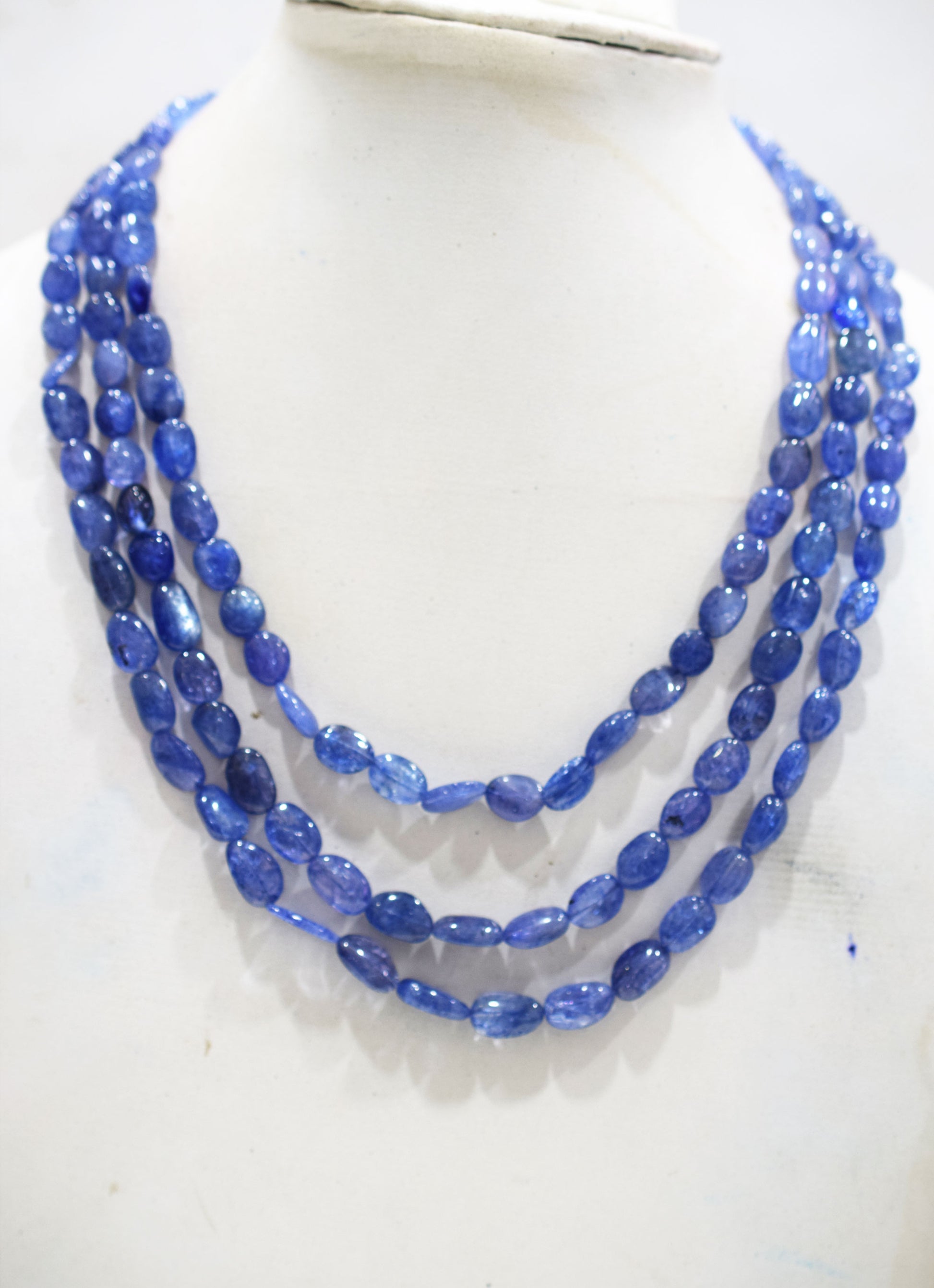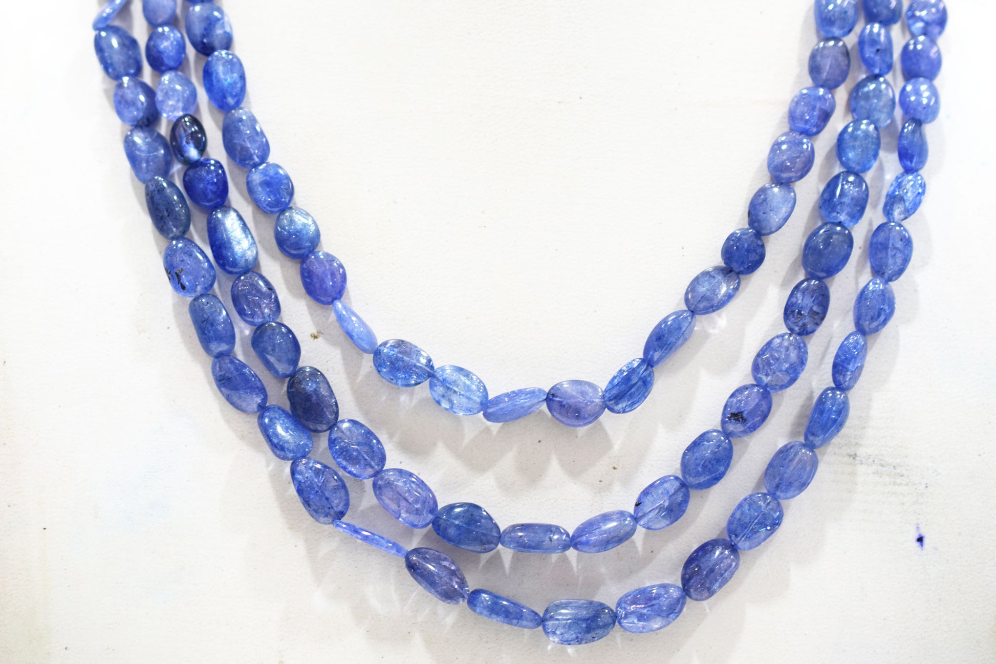 3 Lines Tanzanite Smooth Nuggets Shape Necklace , 3 Line Necklace 16 - 19 Inches Long With Adjustable Tussle , 7x8 - 8x13 mm , 20205