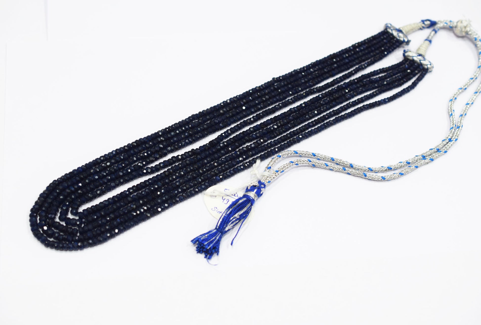 5 Lines Dyed Corundum Sapphire Rondelle Shape Beads , Dyed Corundum Sapphire Faceted Necklace With Adjustable Tussle , 3.50 - 5.00 mm , 17" - 20", 18540