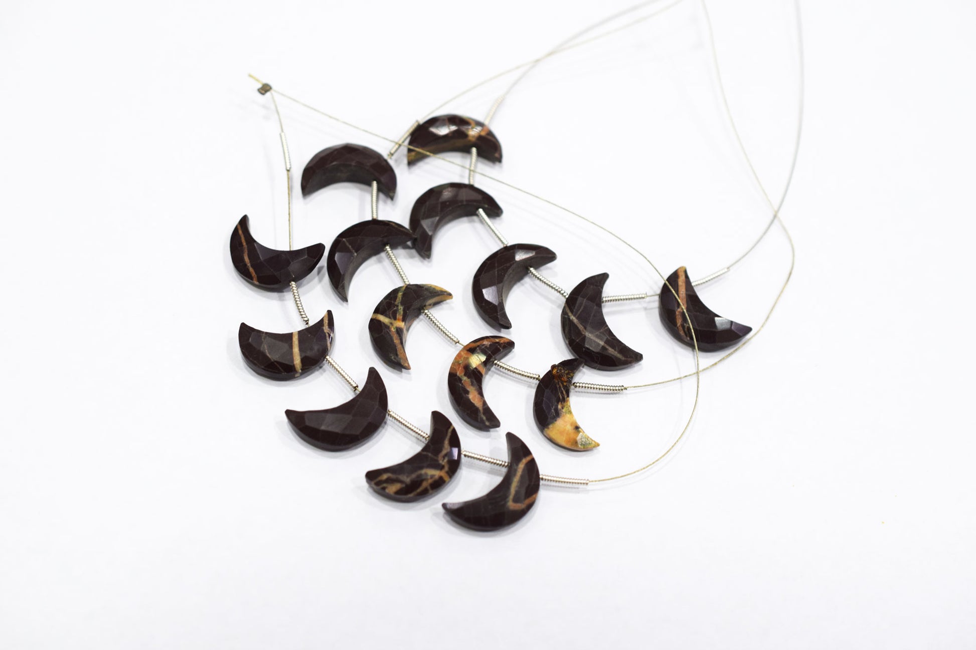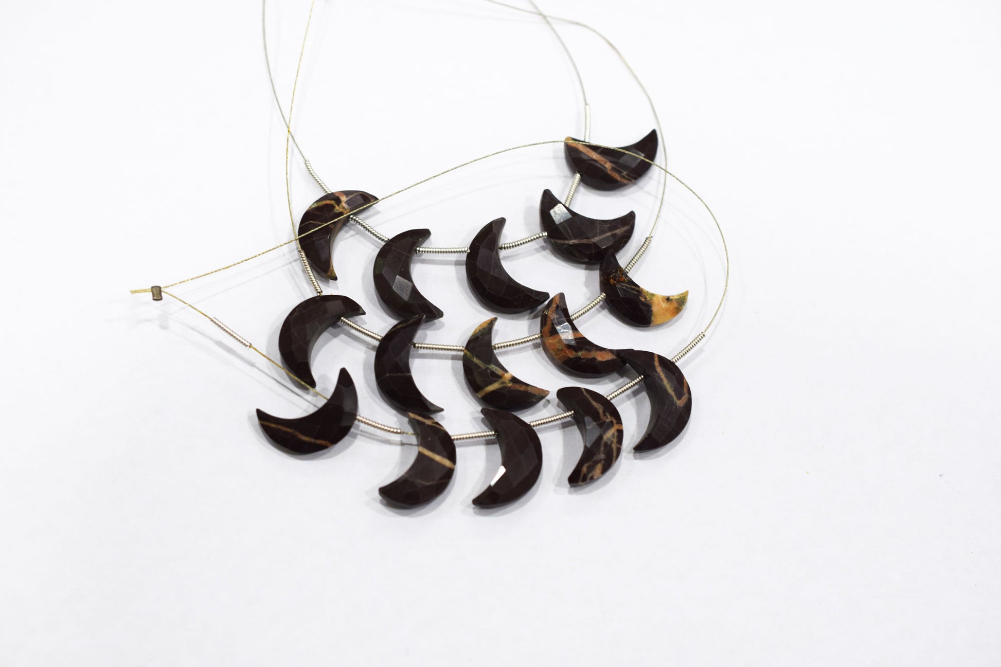 5 Pieces In A Strand Chocolate Jasper Faceted Gemstone , Chocolate Jasper Crescent Half Moon Shape Briolettes , Sold By Strand , 7x18 - 8x18 mm , 17378