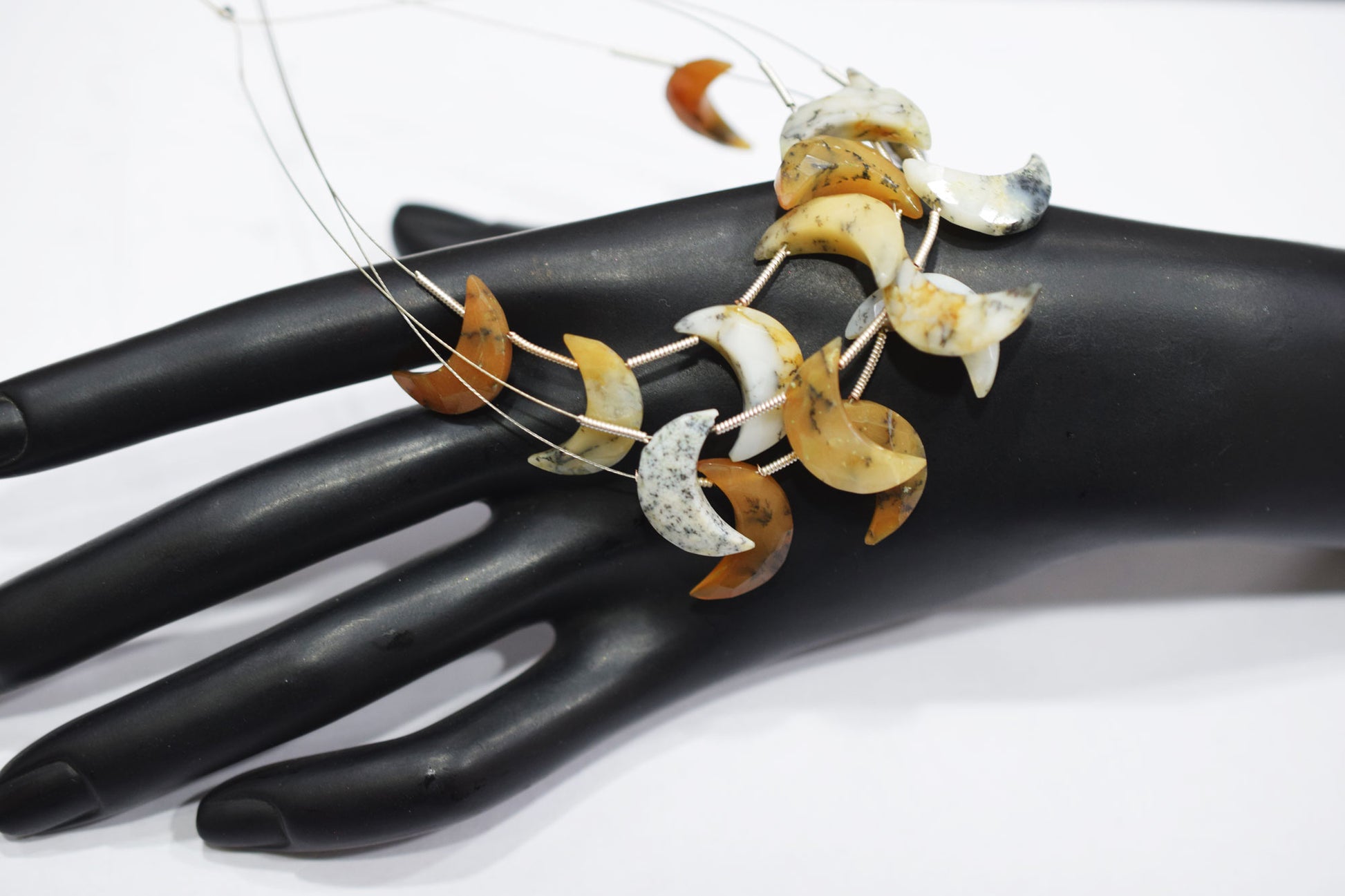 5 Pieces In A Strand Dendrite Opal Faceted Gemstone , Dendrite Opal Crescent Half Moon Shape Briolettes , Sold By Strand , 7x18 - 8x18 mm , 17379