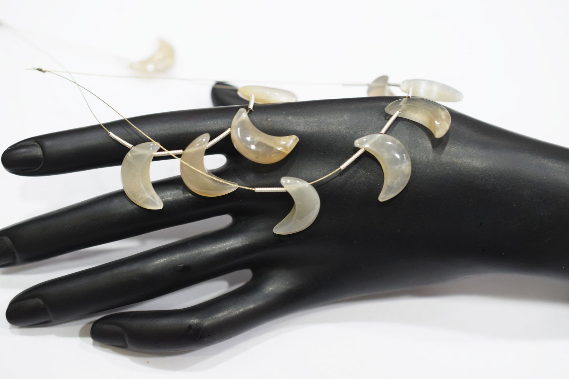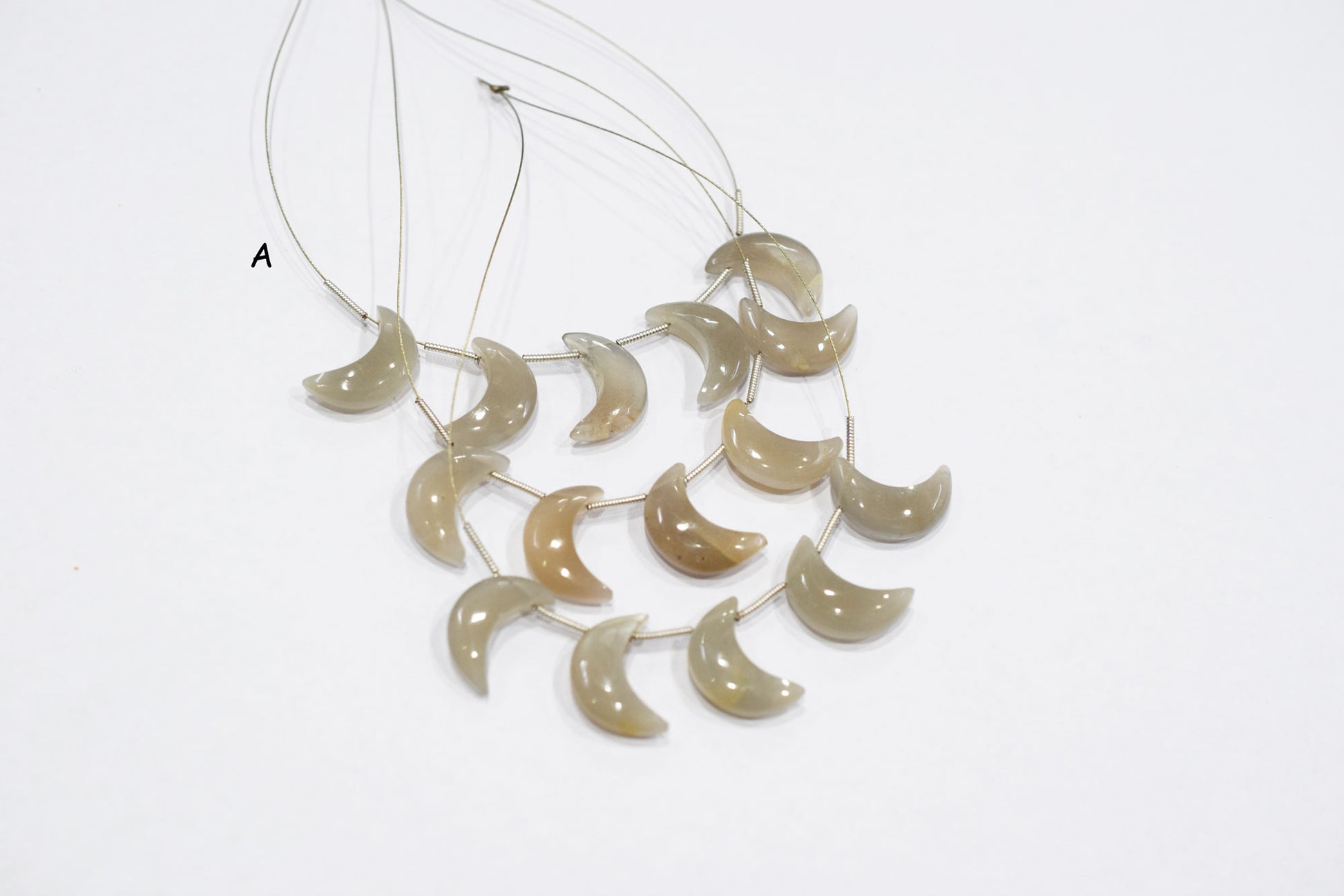 5 Pieces In A Strand Grey Moonstone Smooth Gemstone , Grey Moonstone Crescent Half Moon Shape Briolettes , Sold By Strand , 7x17 - 8x18 mm , 17374