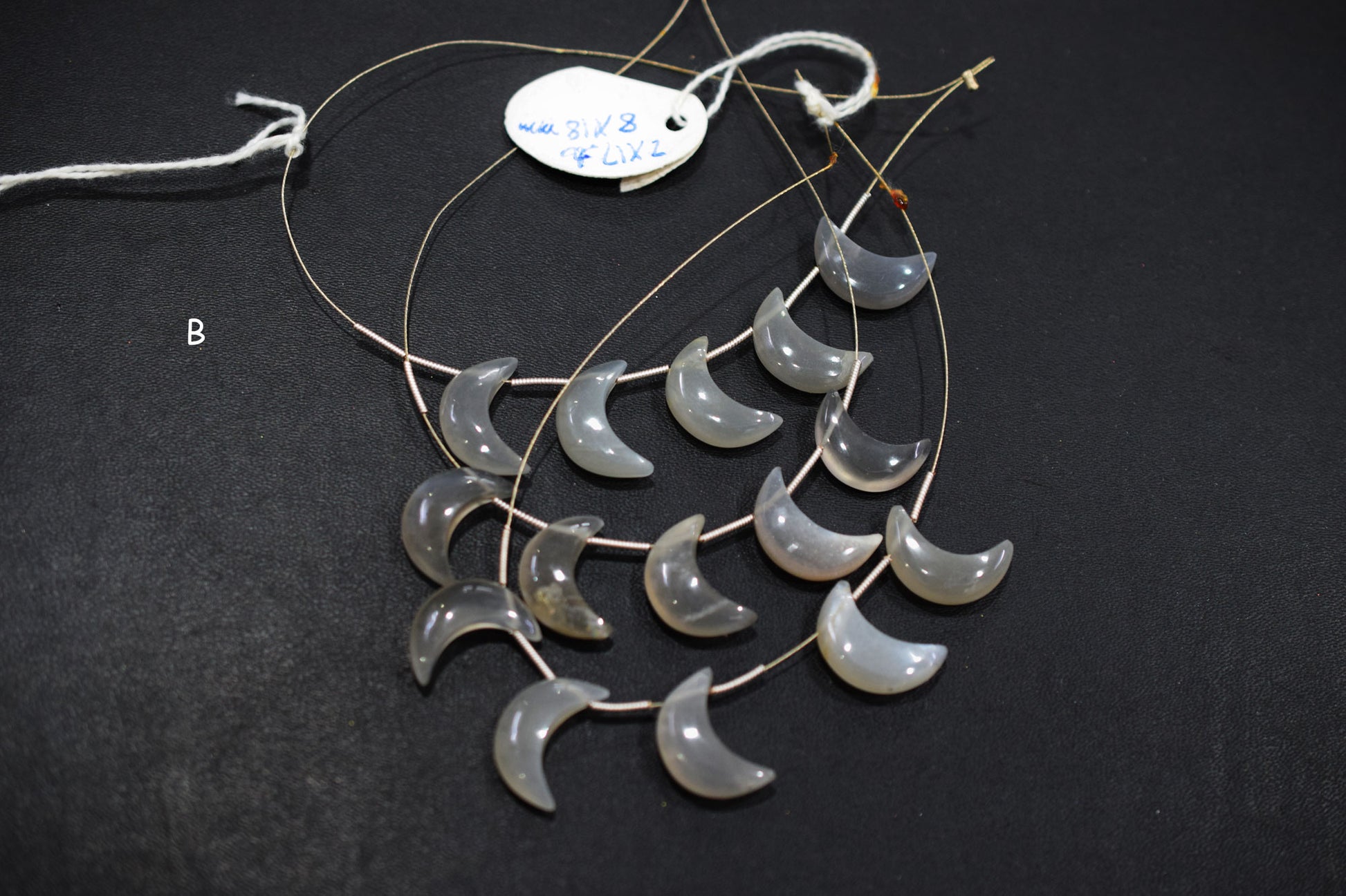 5 Pieces Grey Moonstone Smooth Crescent Half Moon Shape Briolettes , Sold By Strand , 7x17 - 8x18 mm , 17374