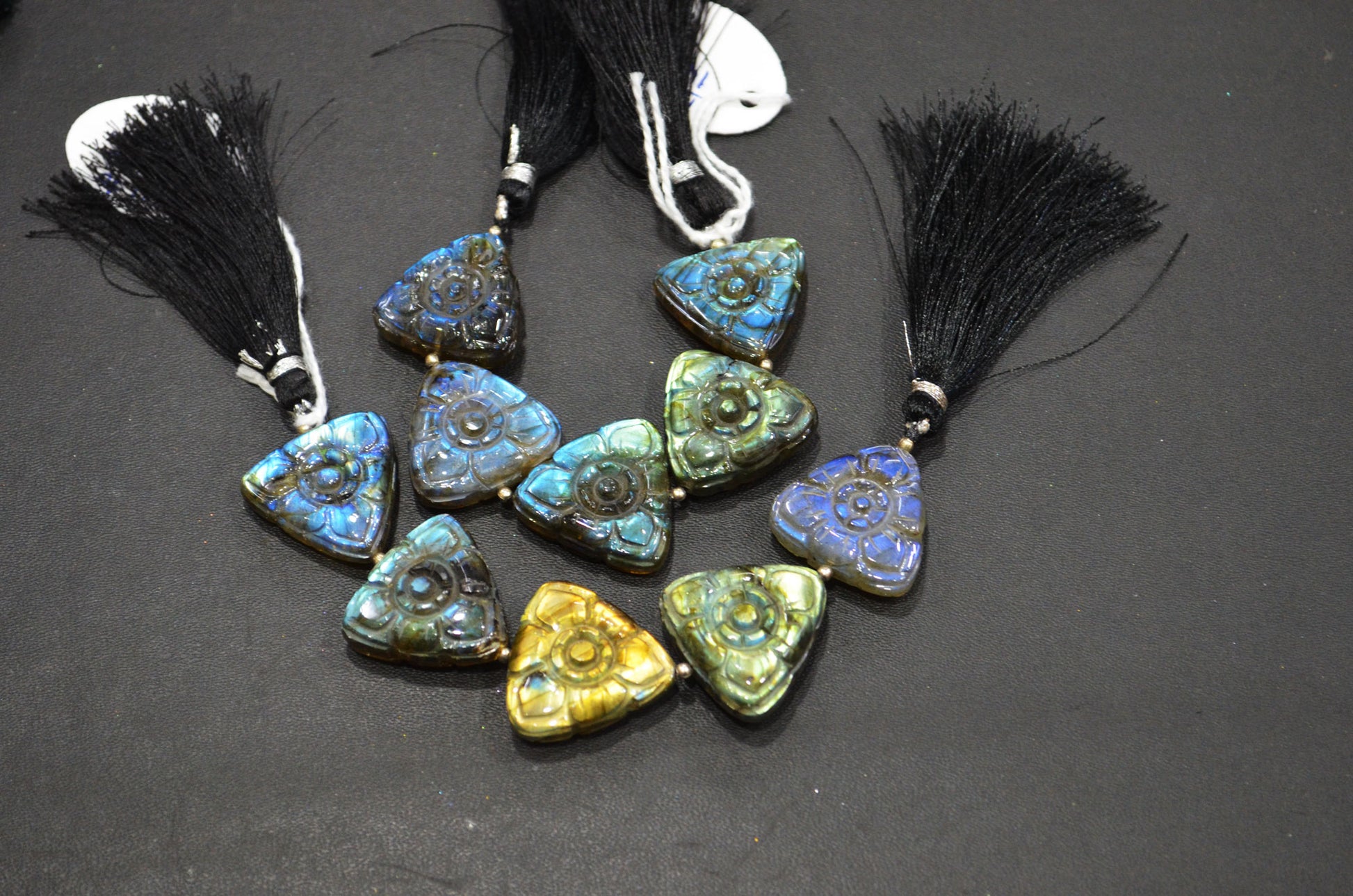 5 Pieces In A Strand Labradorite Carved Trillion Shape Beads , Labradorite Carved Beads , Sold By Strand , 21x21 - 22x22 mm , 32274
