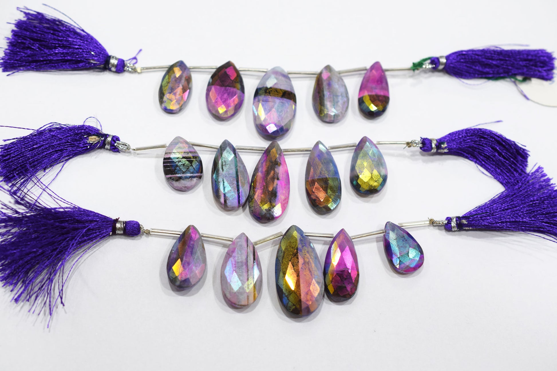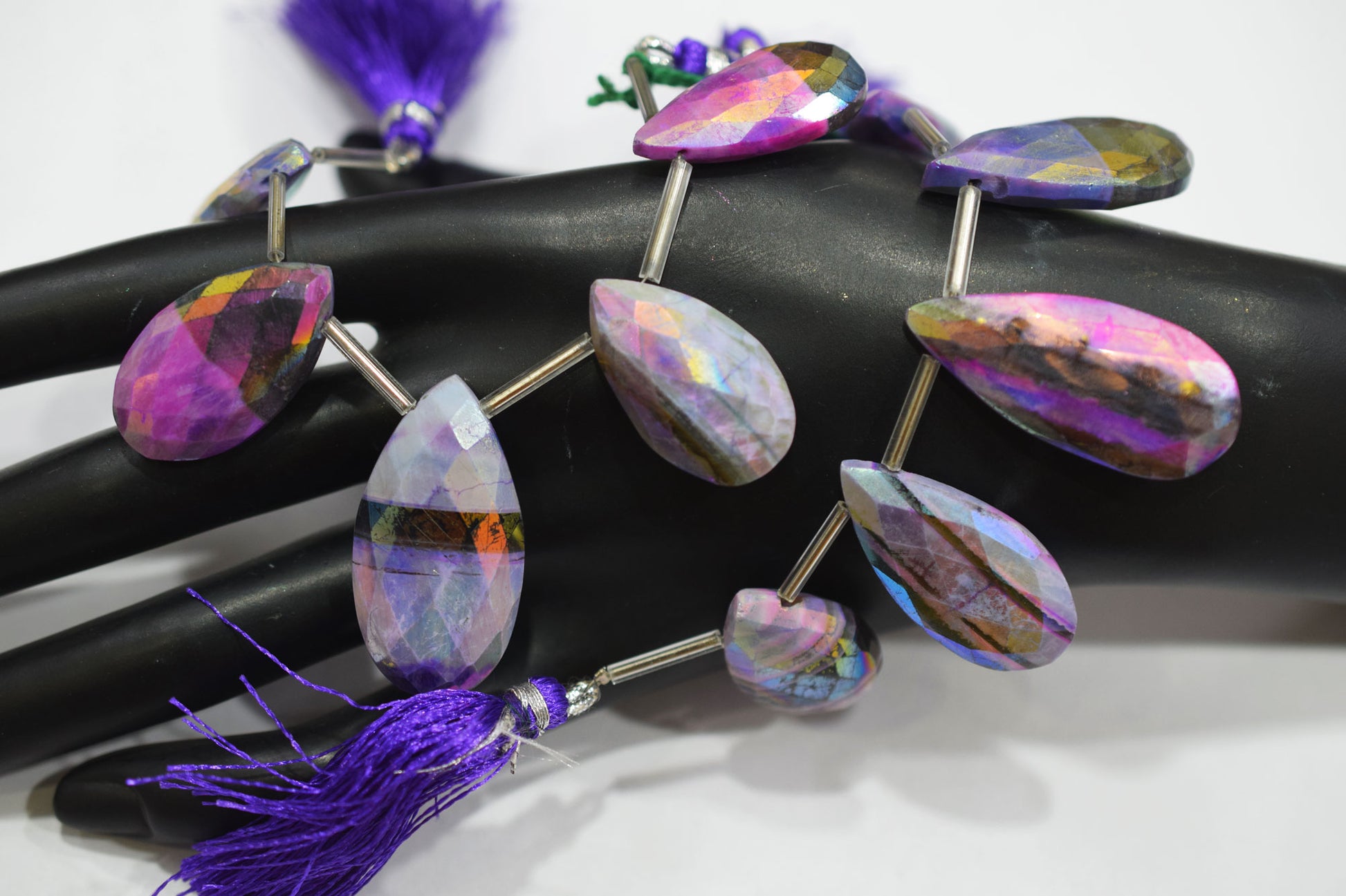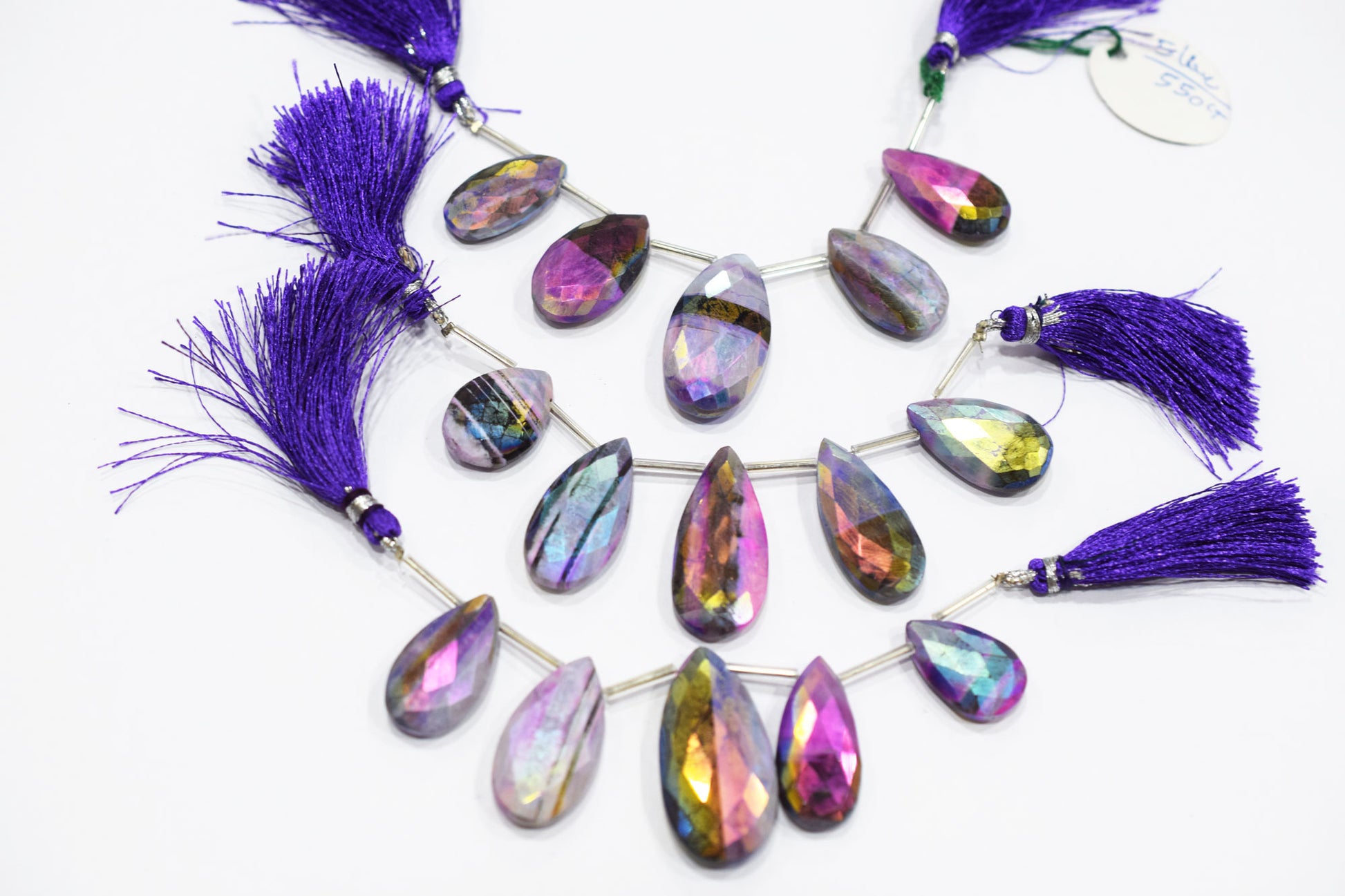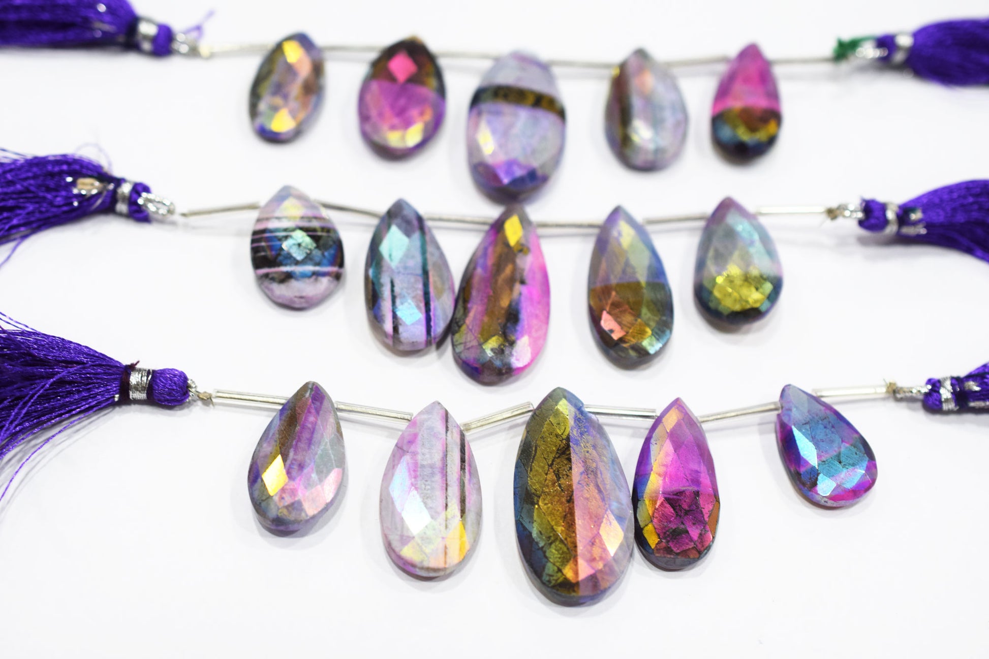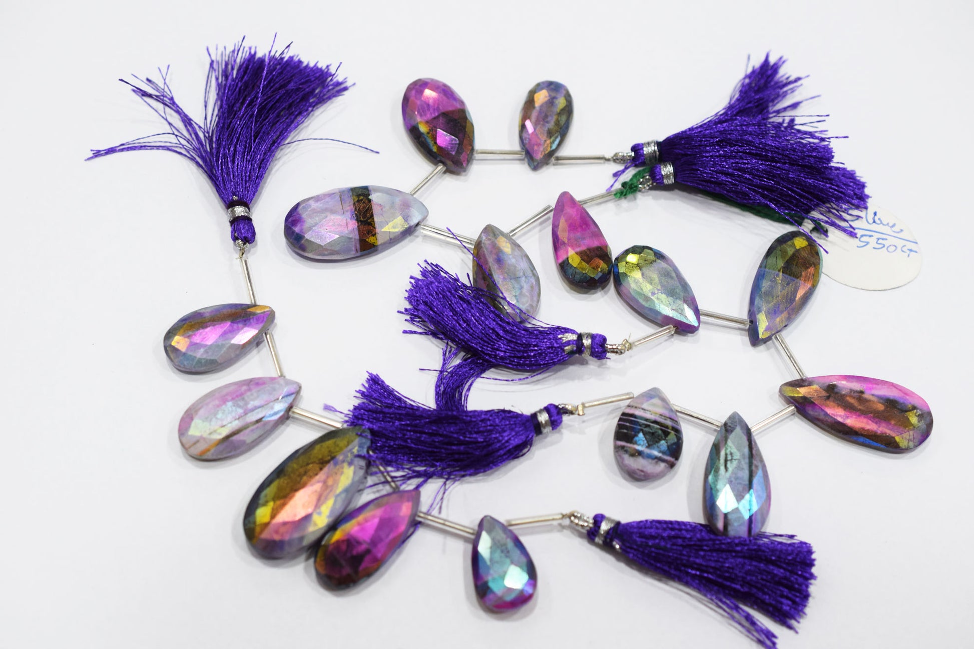 5 Pieces In A Strand Rustic Metallic Coated Lace Opalite Chalcedony Faceted Pear Shape Beads , Rustic Lace Opalite Faceted Briolettes , Sold By Strand , 13x22 - 18x35 mm , 20432