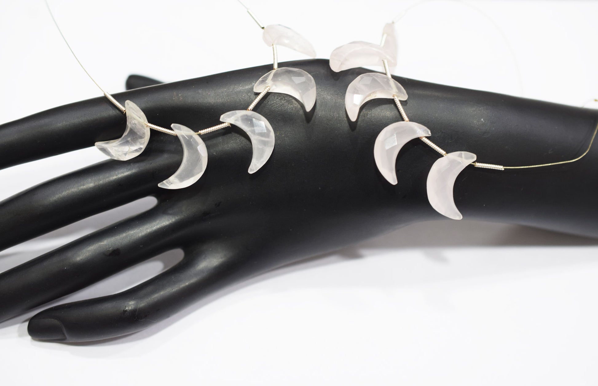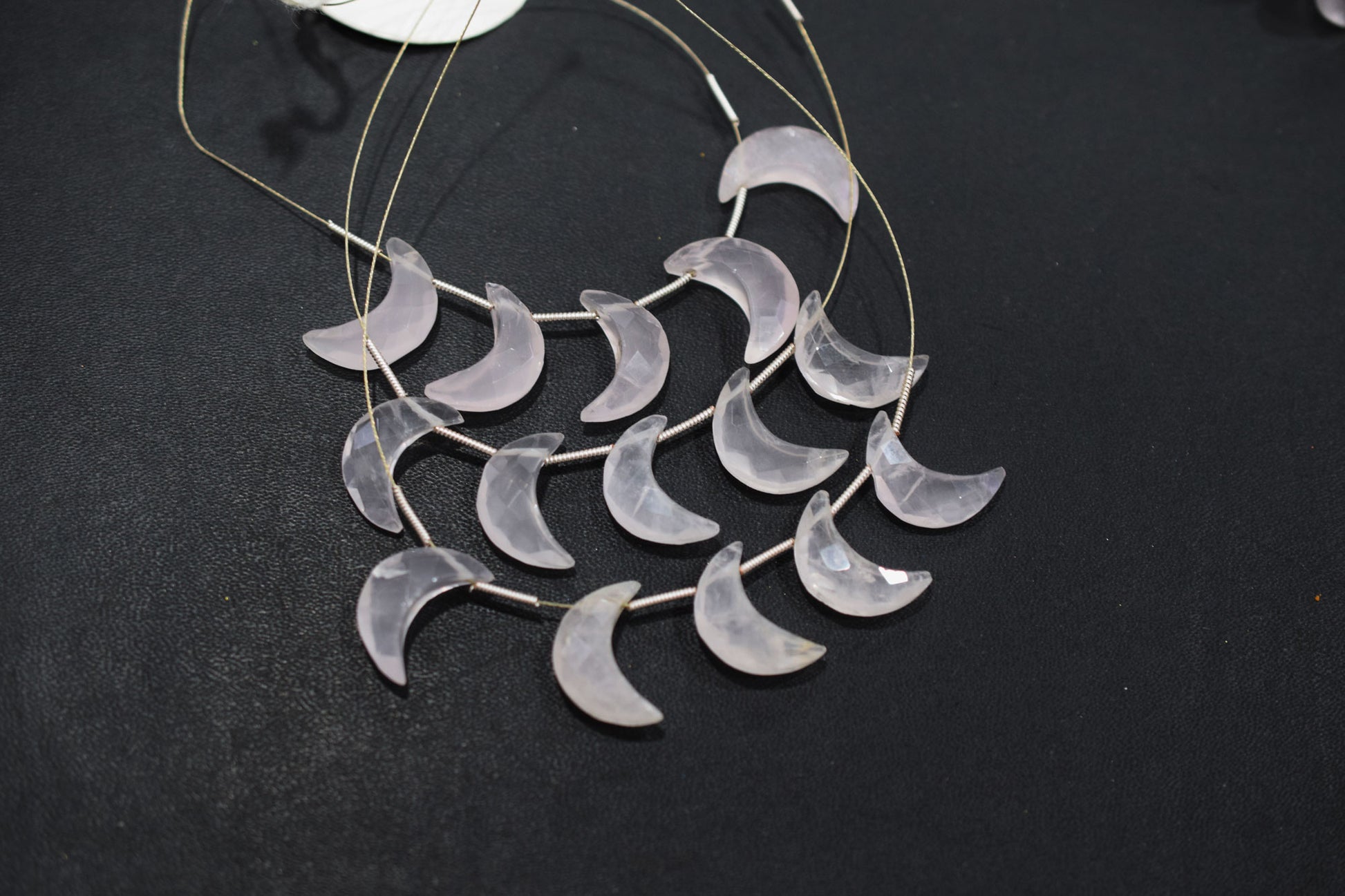 5 Pieces In A Strand Natural Rose Quartz Faceted Gemstone , Rose Quartz Crescent Half Moon Shape Briolettes , Sold By Strand, 7x18 - 8x18 mm , 17375A