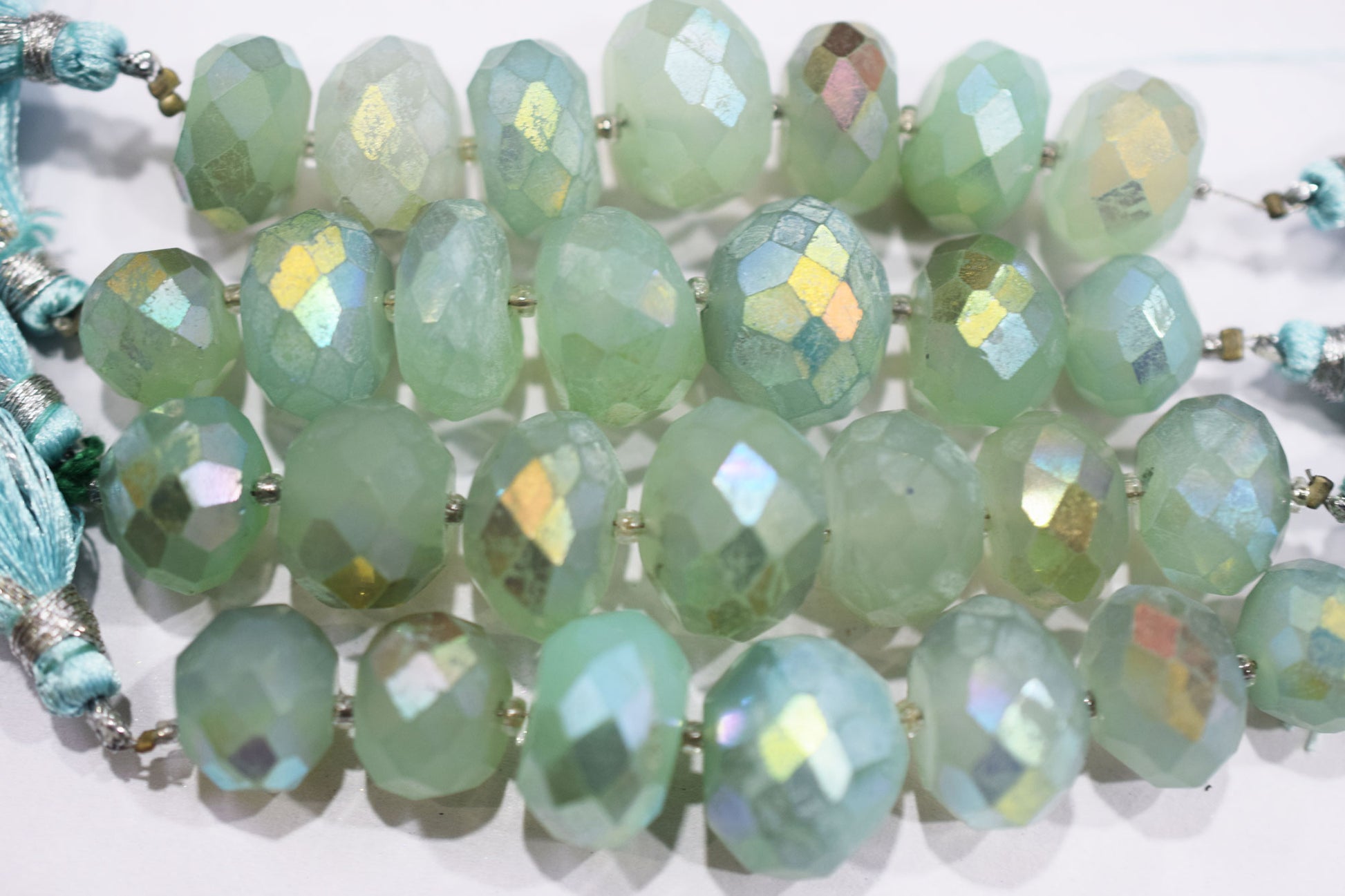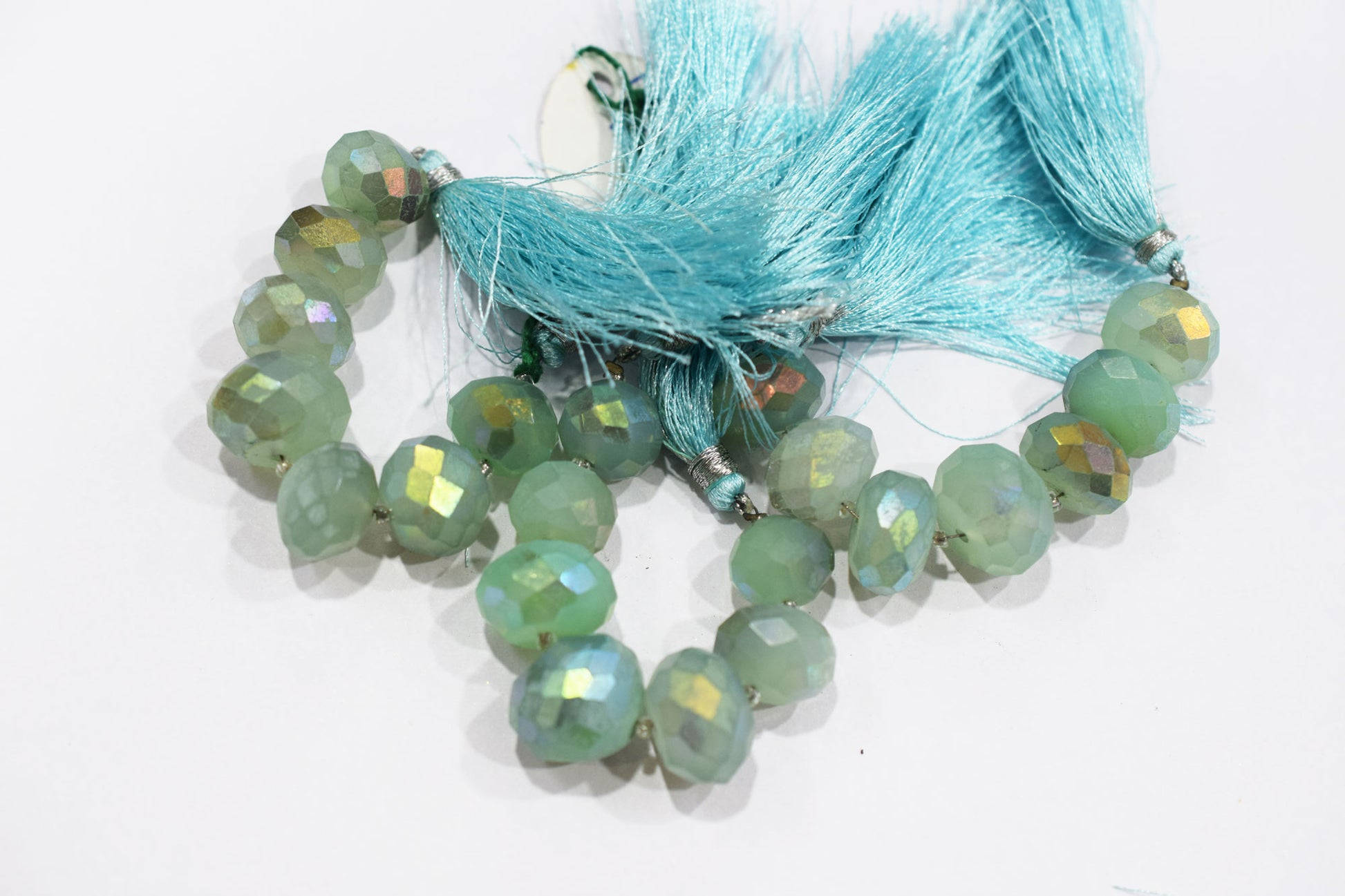 7 Pcs In The Strand , Mystic Metallic Coated Aqua Chalcedony Faceted Beads , Aqua Chalcedony Rondelle Shape Beads , Β 12 - 16 mm , 20385