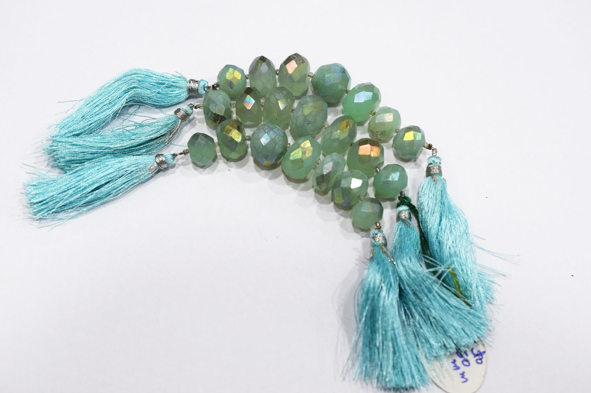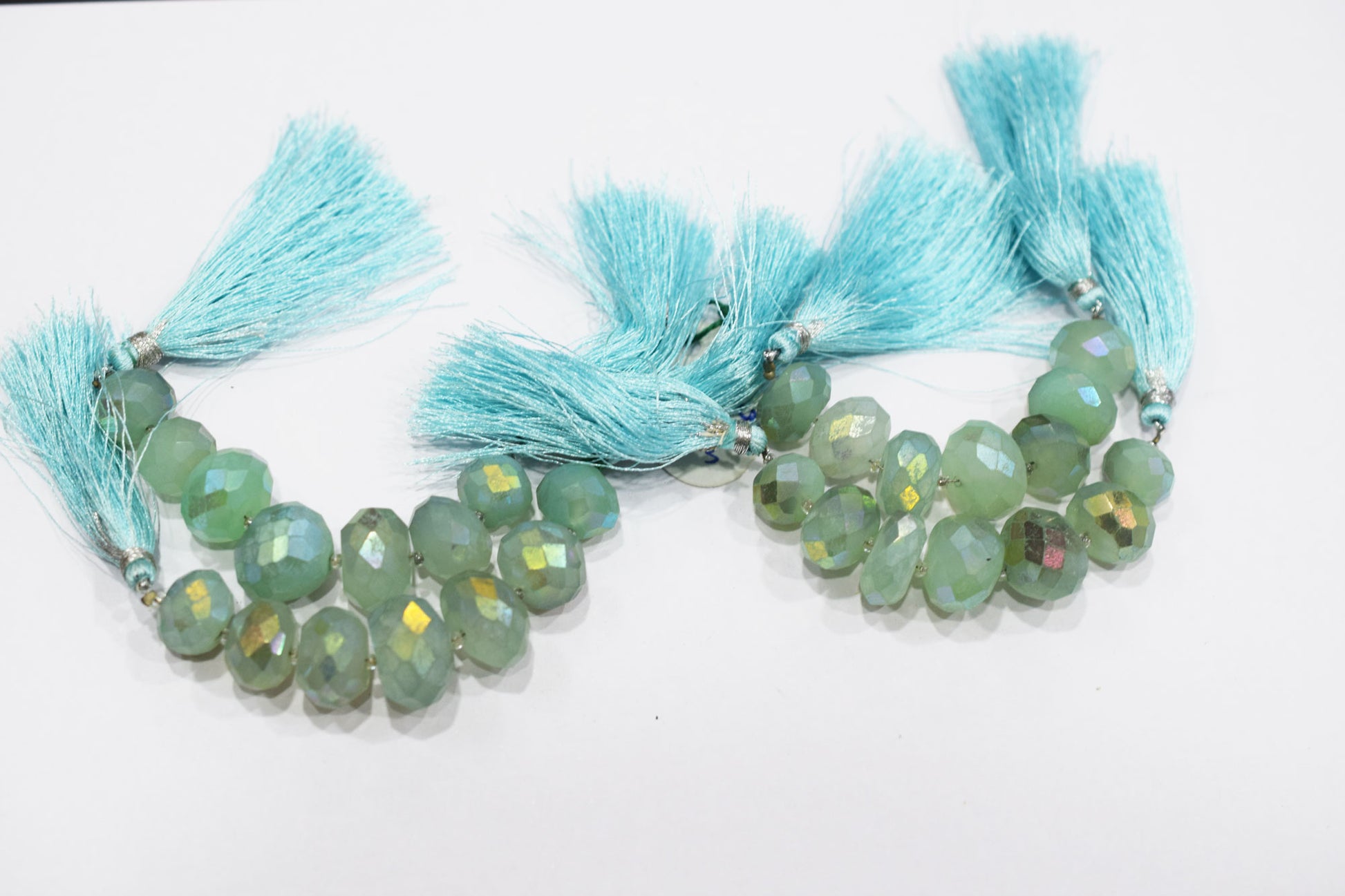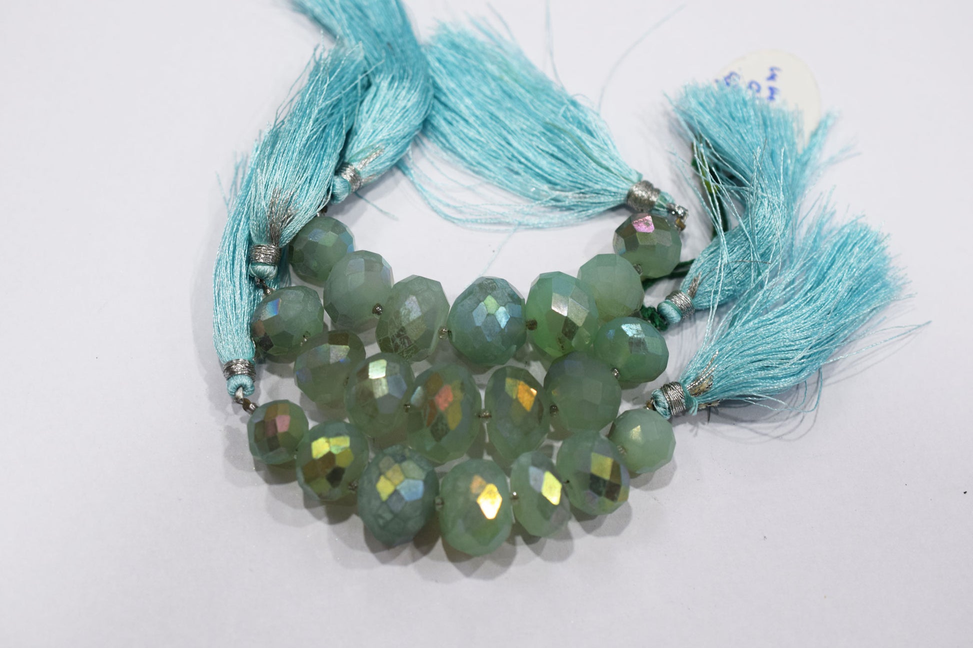 7 Pcs In The Strand , Metallic Coated Aqua Chalcedony Faceted Beads , 12 - 16 mm , 20385