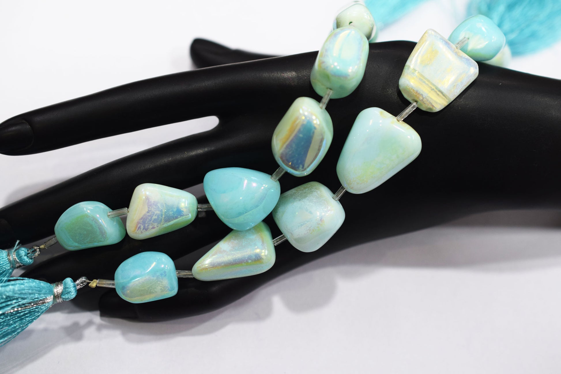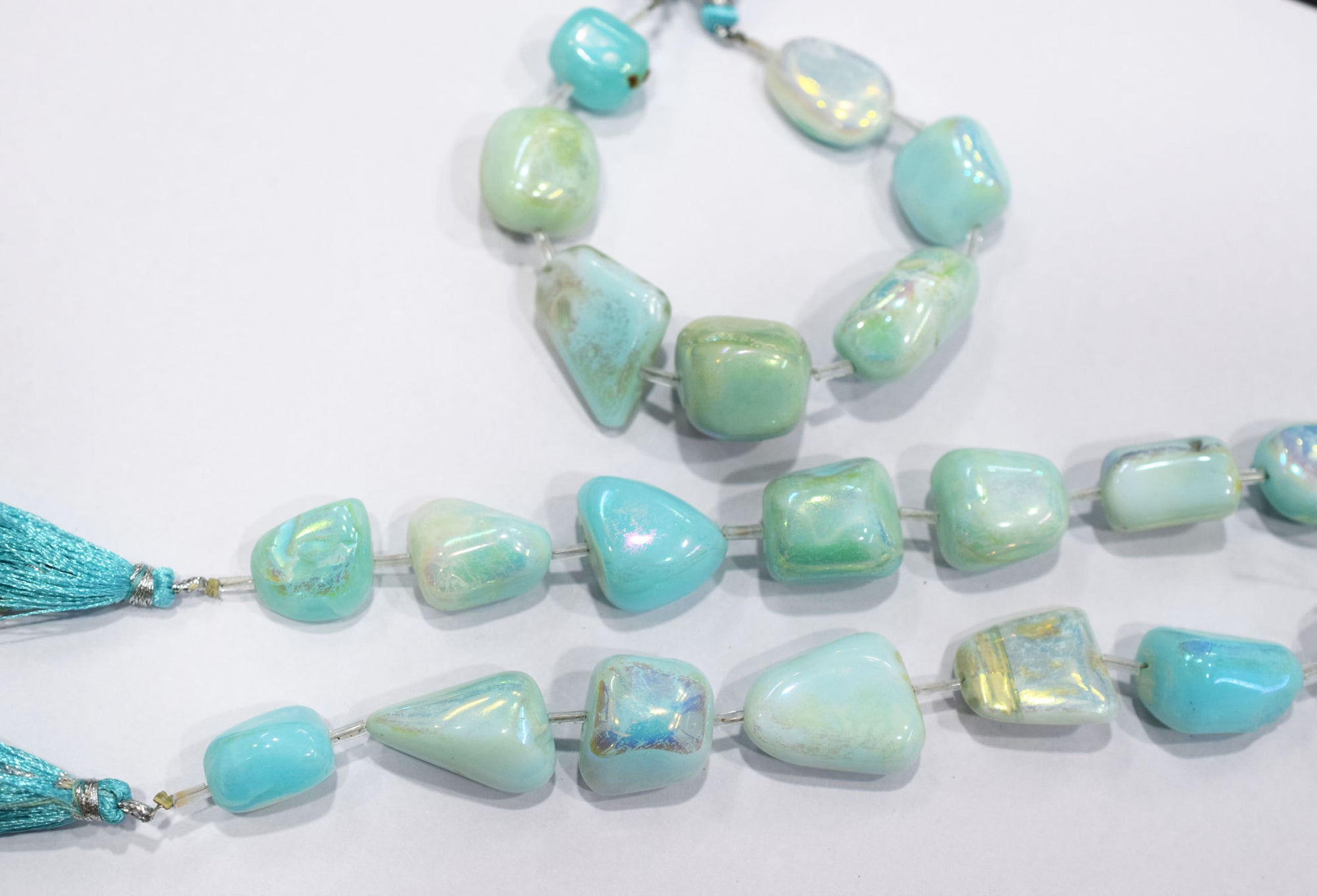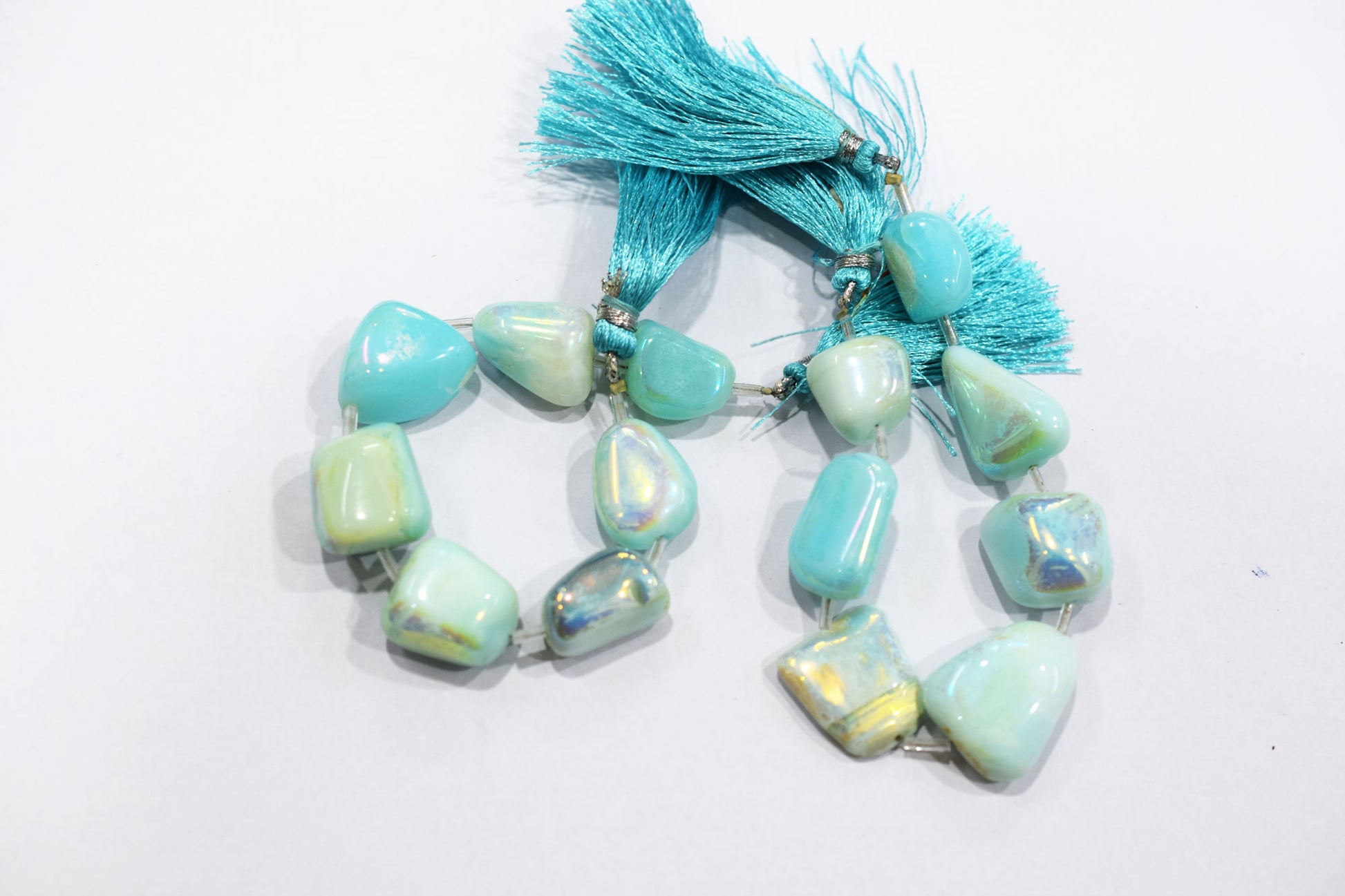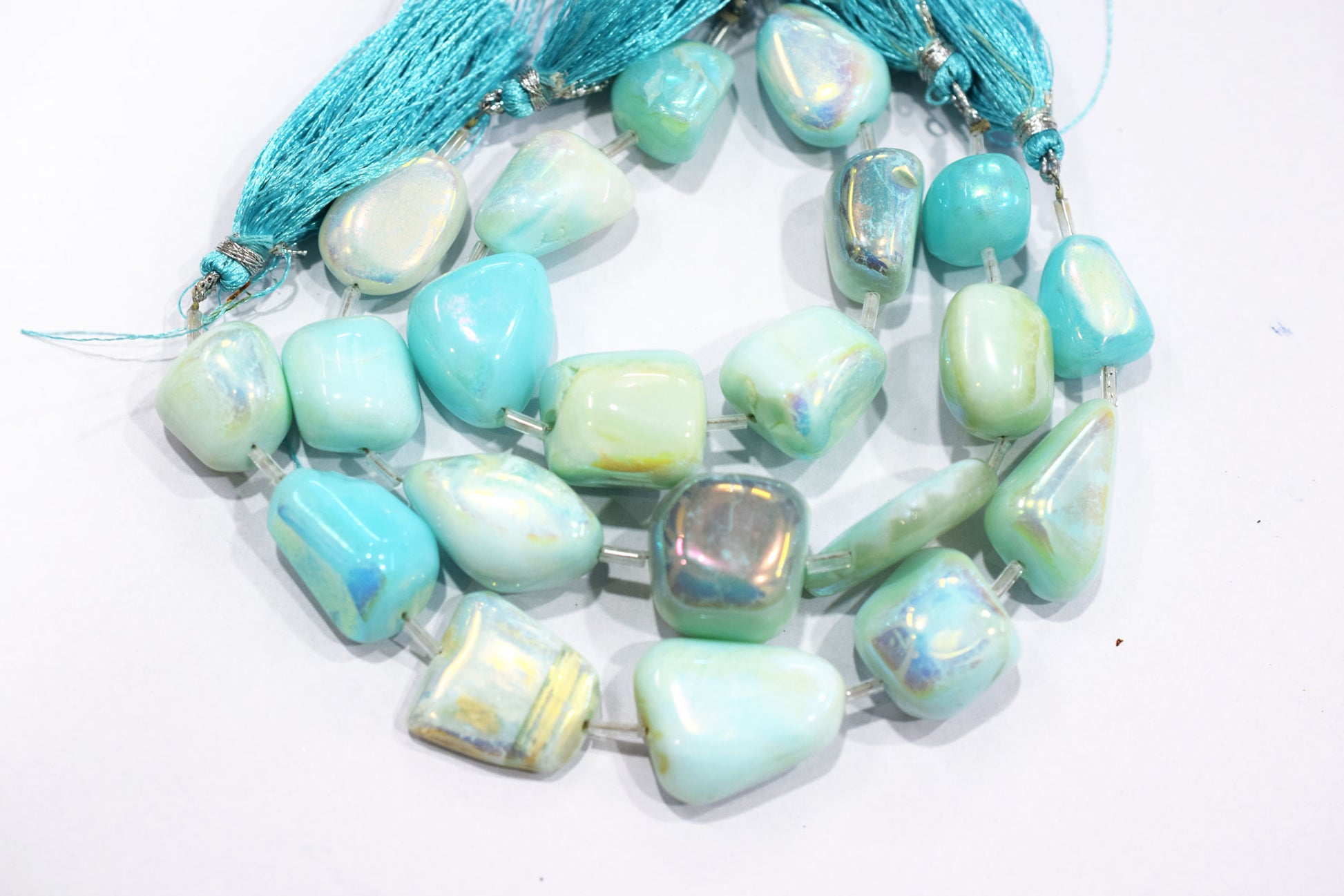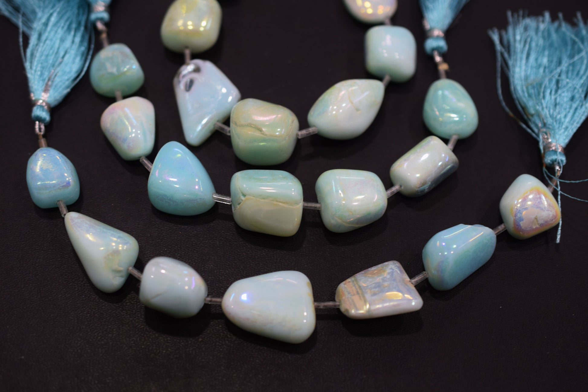 7 Pieces Blue Opal Rustic Style Titanium Coated Nuggets Shape Beads , Opal Smooth Briolettes , Sold By Strand , 13x15 - 19x23 mm , 20410