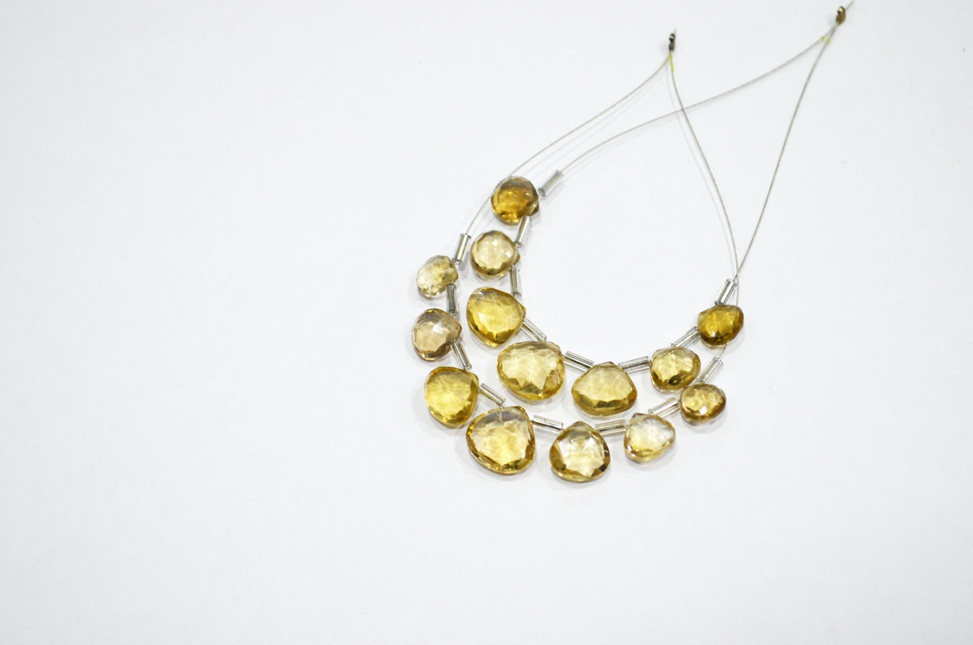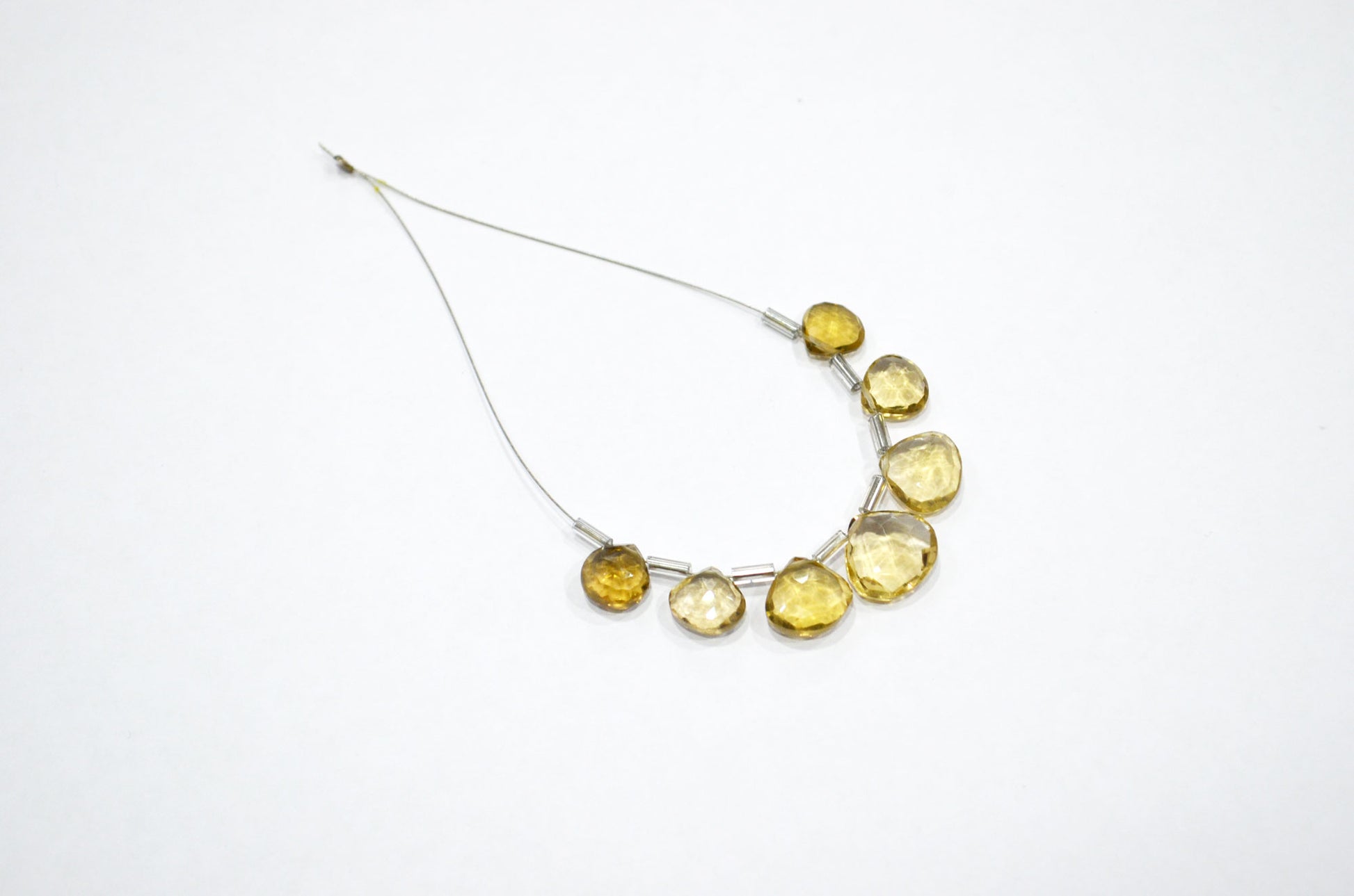 7 Pieces In A Strand Beer Quartz Heart Shape Beads , Beer Quartz Faceted Briolettes , Sold By Strand , 7x7 - 11x11 mm , 32475