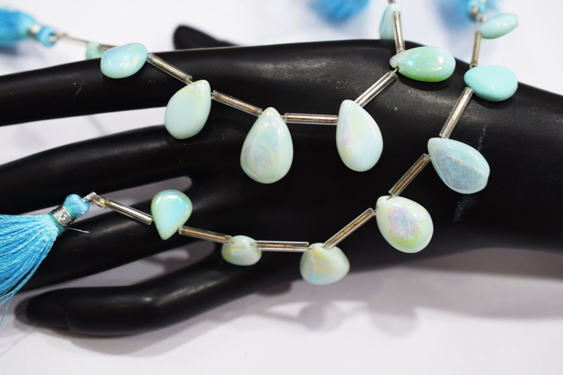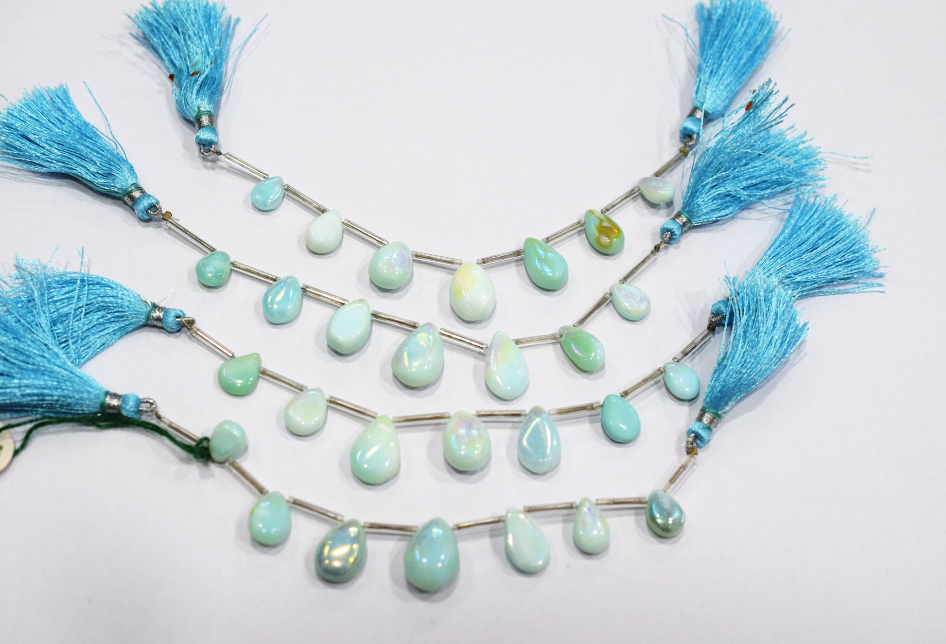 7 Pieces In A Strand Rustic Metallic Coated Blue Opal Pear Shape Beads , Opal Smooth Briolettes , Sold By Strand , 7x10 - 12x16 mm, 20425