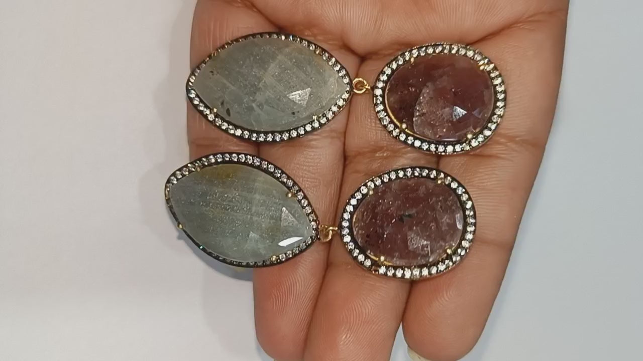 Stone : Ruby And Aqua Blue Sapphire With Pave Cubic ZirconiaΒ