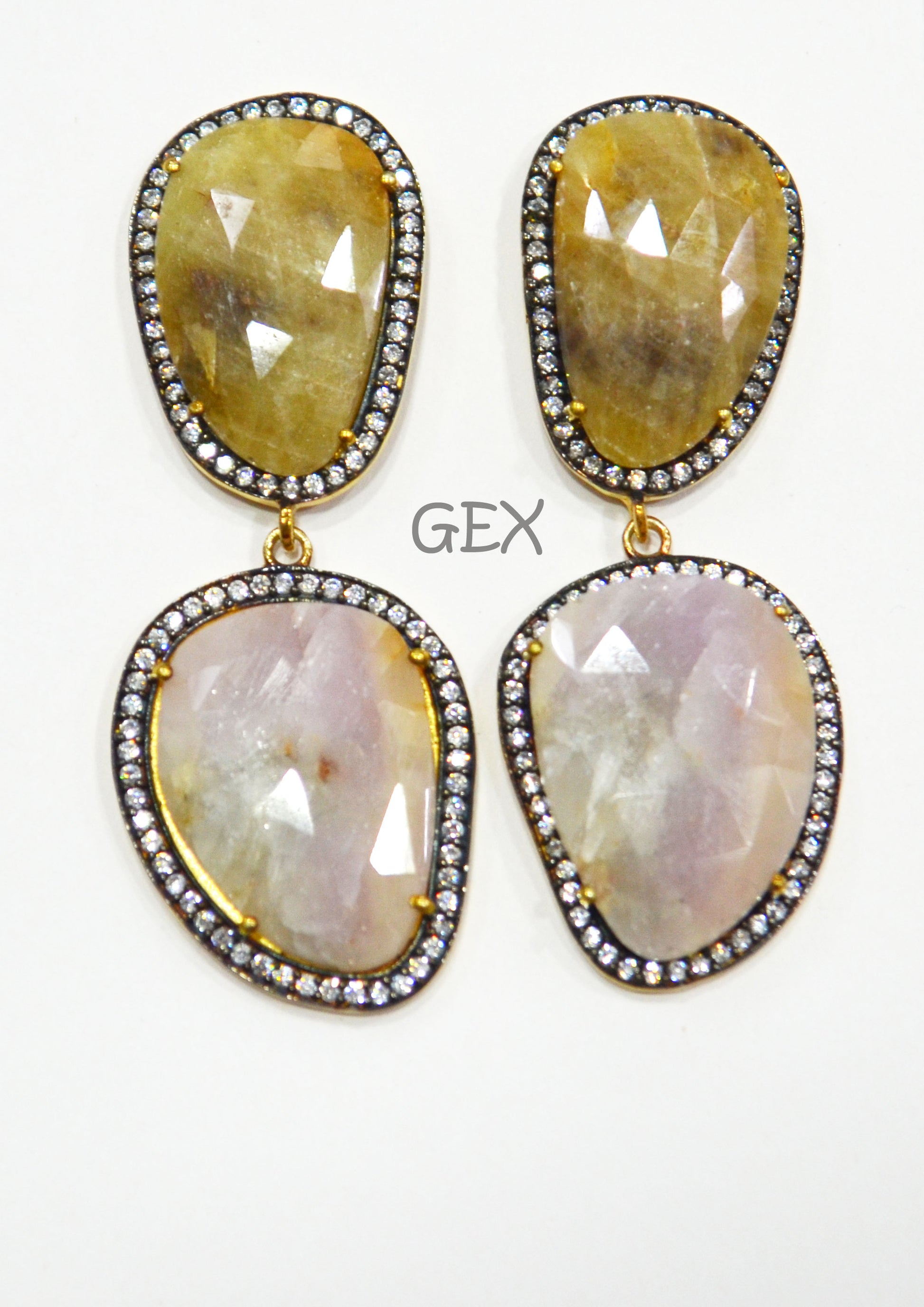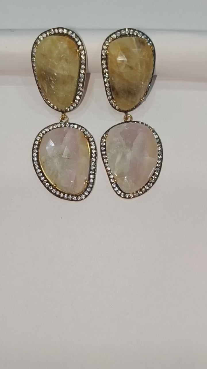 92.5 Sterling Silver Shaded White And Yellow Sapphire Faceted Fancy Shape Earring , Shaded White And Yellow Sapphire With Pave Cubic Zirconia Earring , 58 mm , E-024