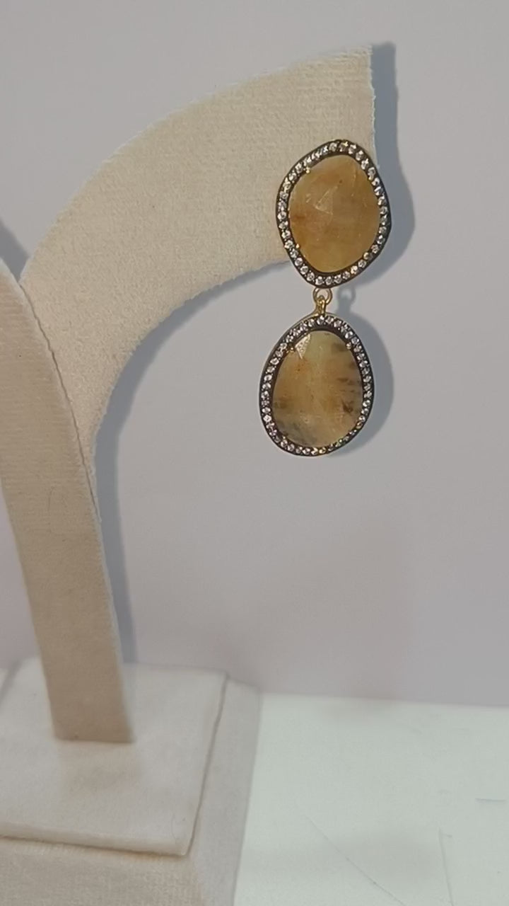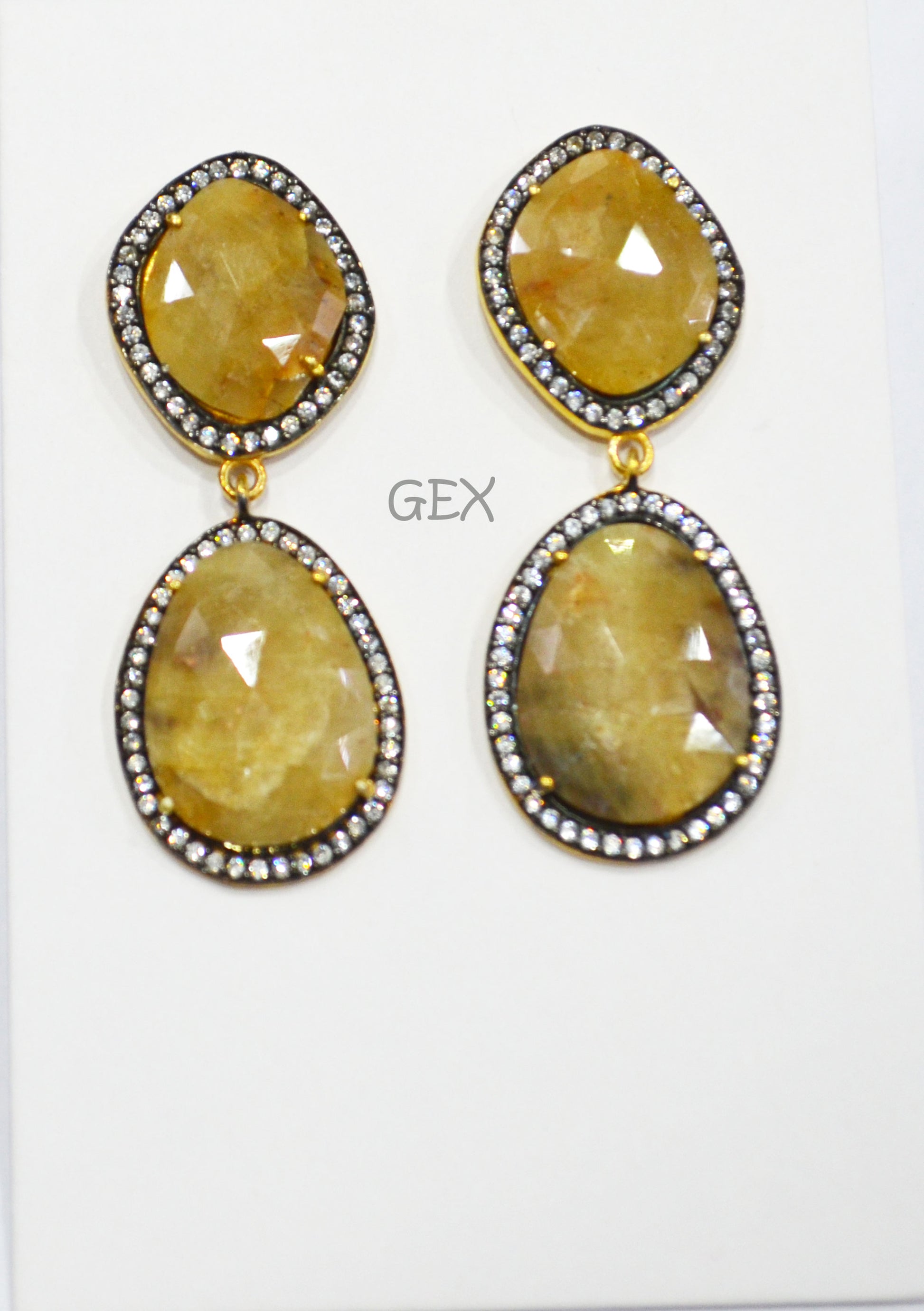 92.5 Sterling Silver Shaded Yellow Sapphire Faceted Fancy Shape Earring , Shaded Yellow Sapphire With Pave Cubic Zirconia Earring , 48 mm , E-069
