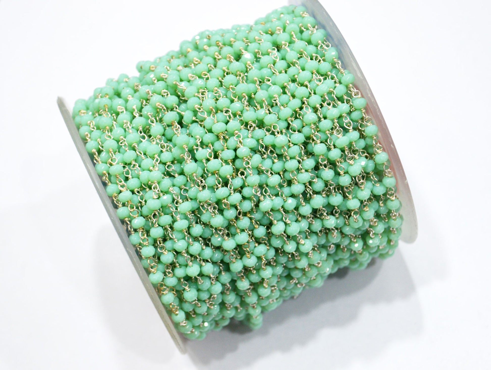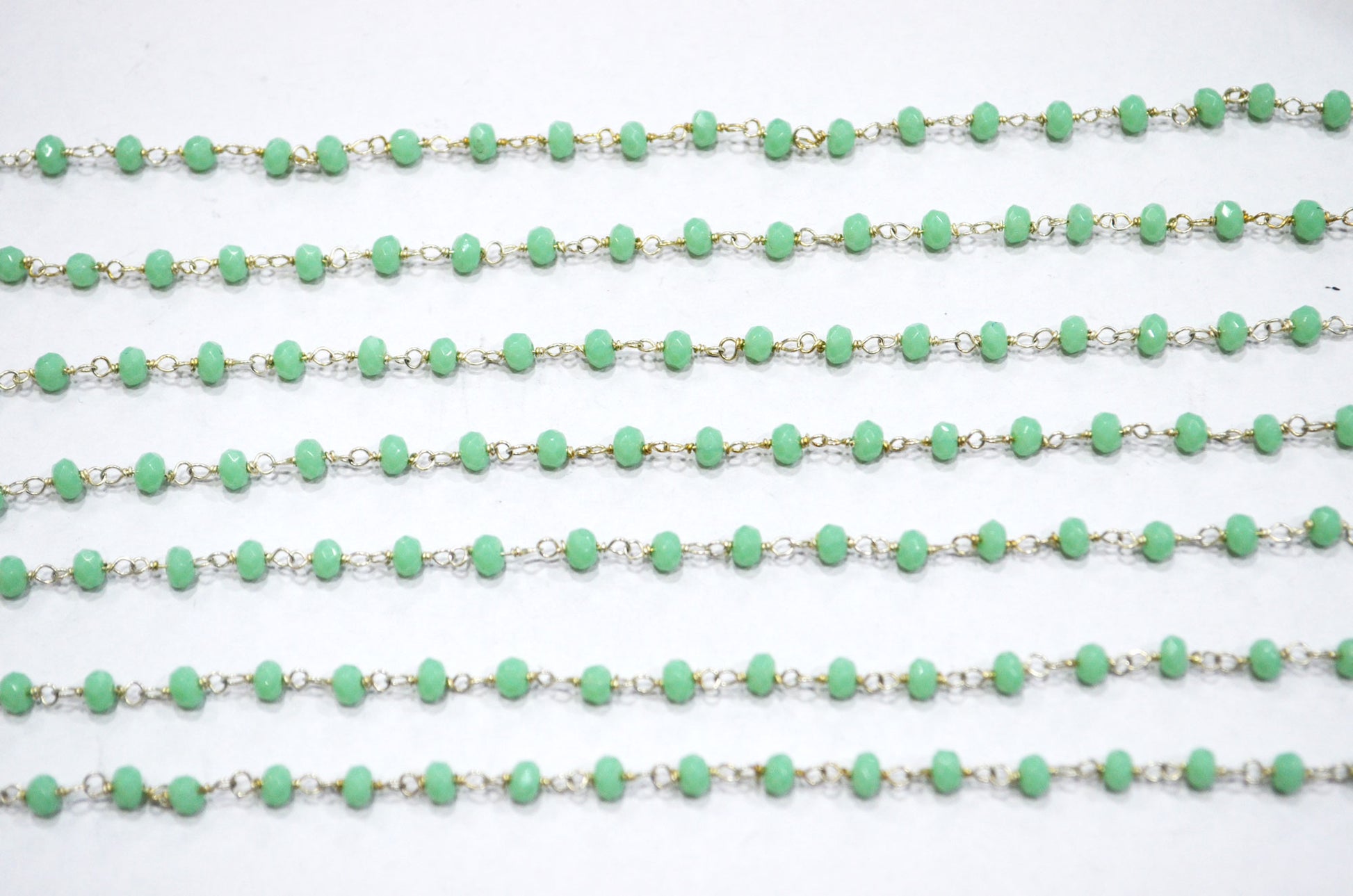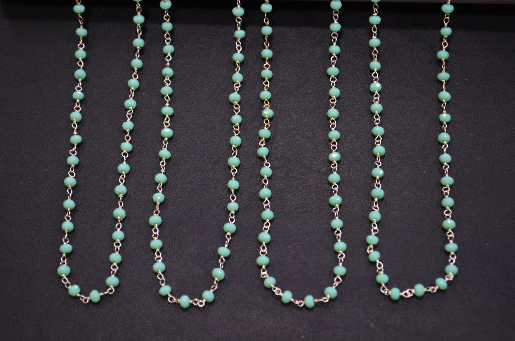 Amazonite Chalcedony (Jade) Faceted Rondelle Shape Rosary Beaded Chain , Amazonite Chalcedony (Jade) Wire Wrapped Chain , 4 mm , RB-6098