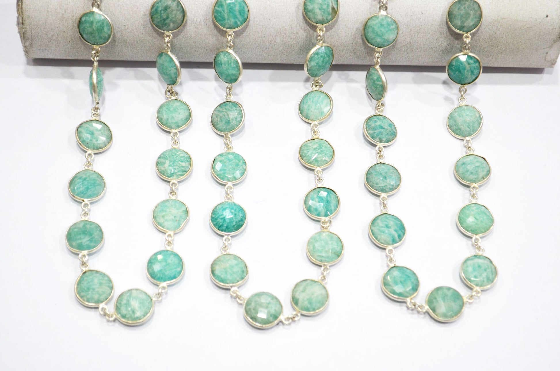 Amazonite Coin Shape Connector Chain , Amazonite Faceted Coin Shape Bezel Link Chain , 13 - 14 mm , RB-5349A