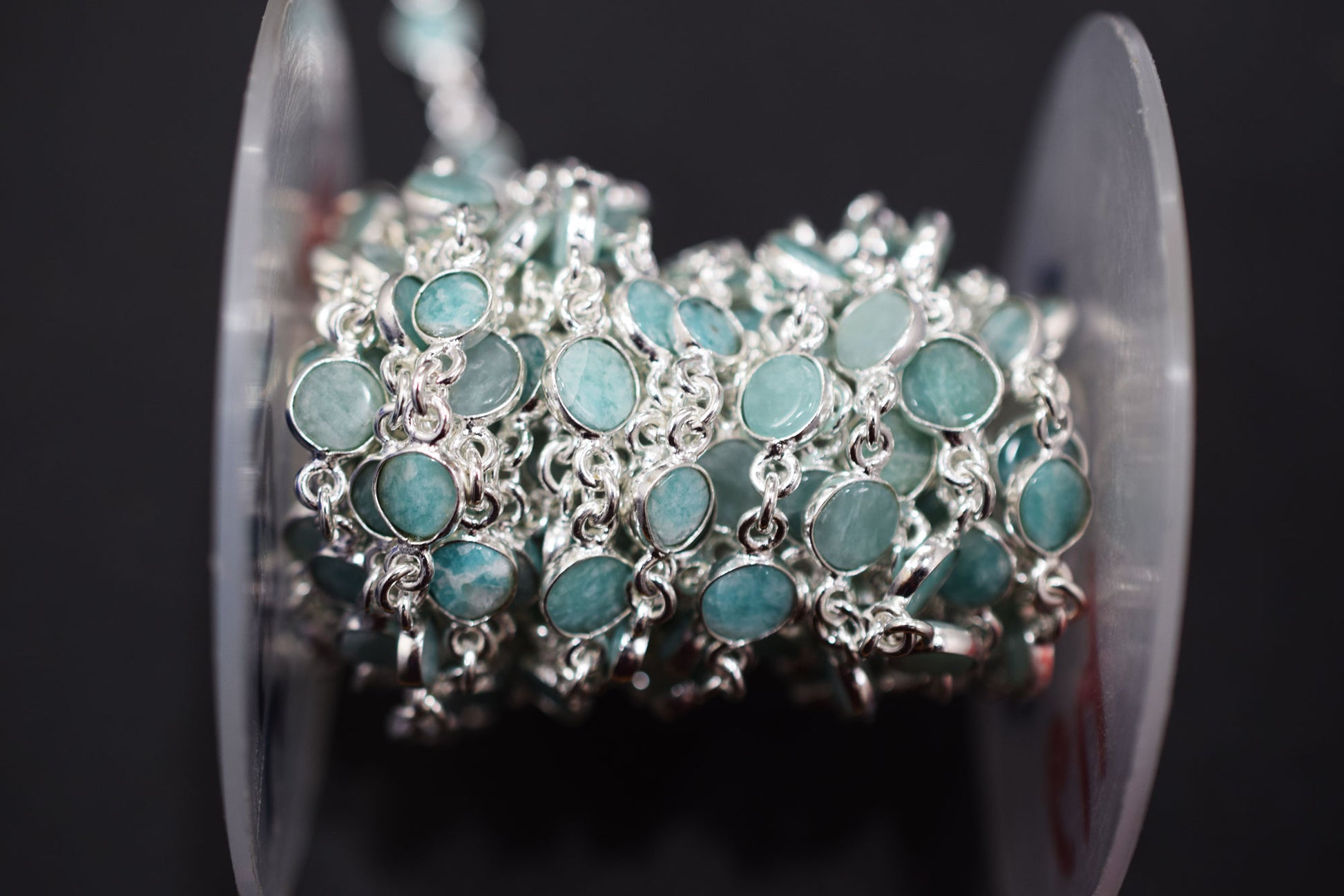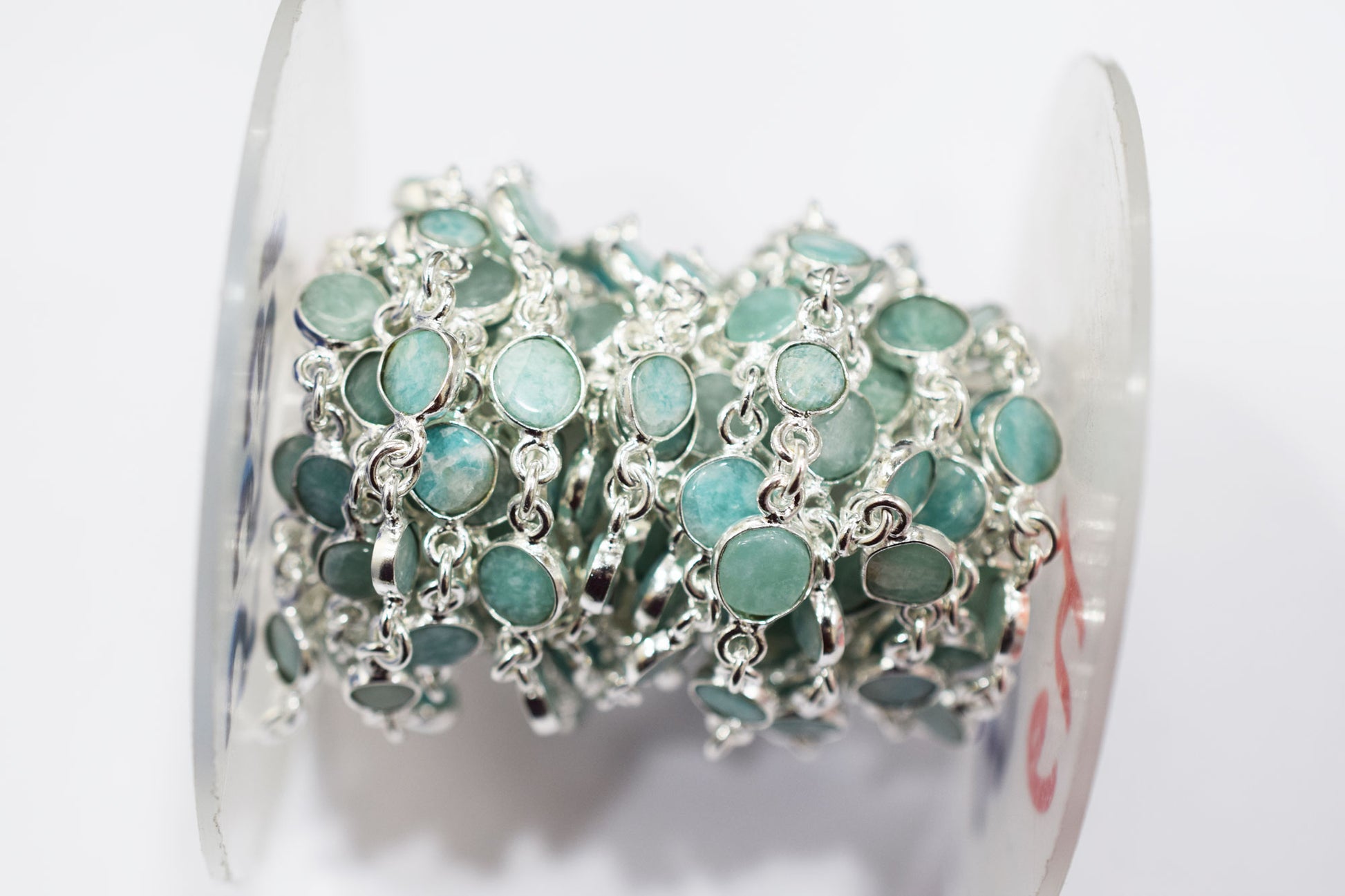 Amazonite Coin Shape Connector Chain , 7 mm , RB-6577