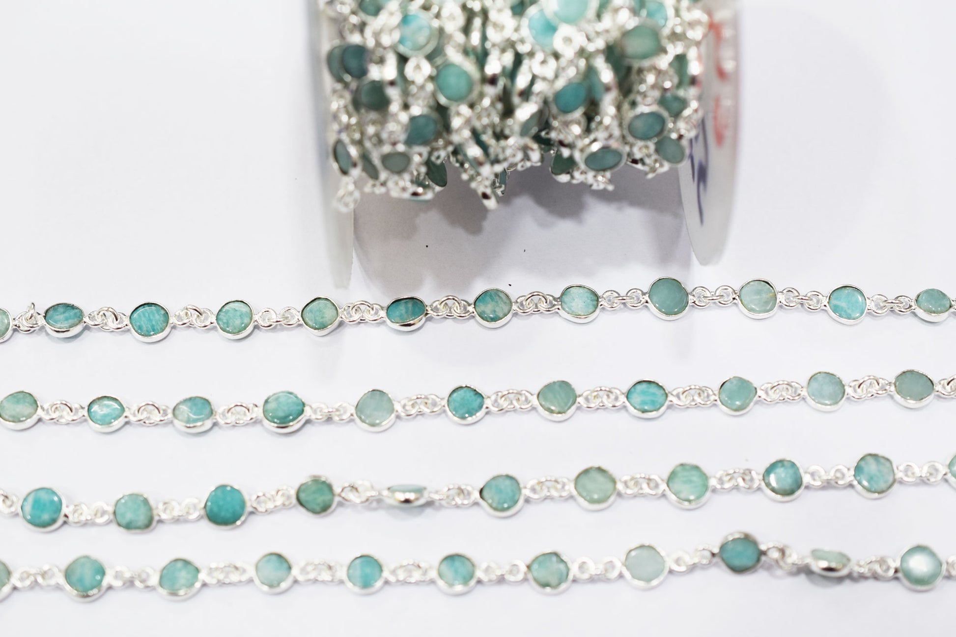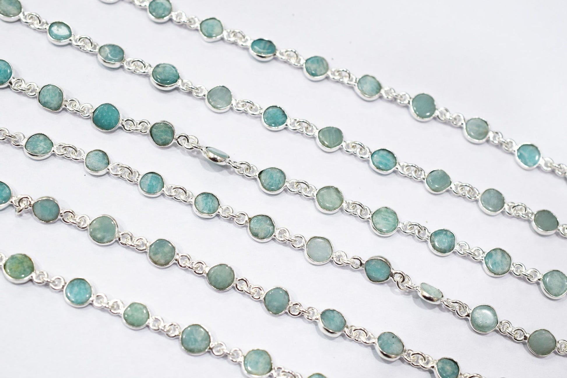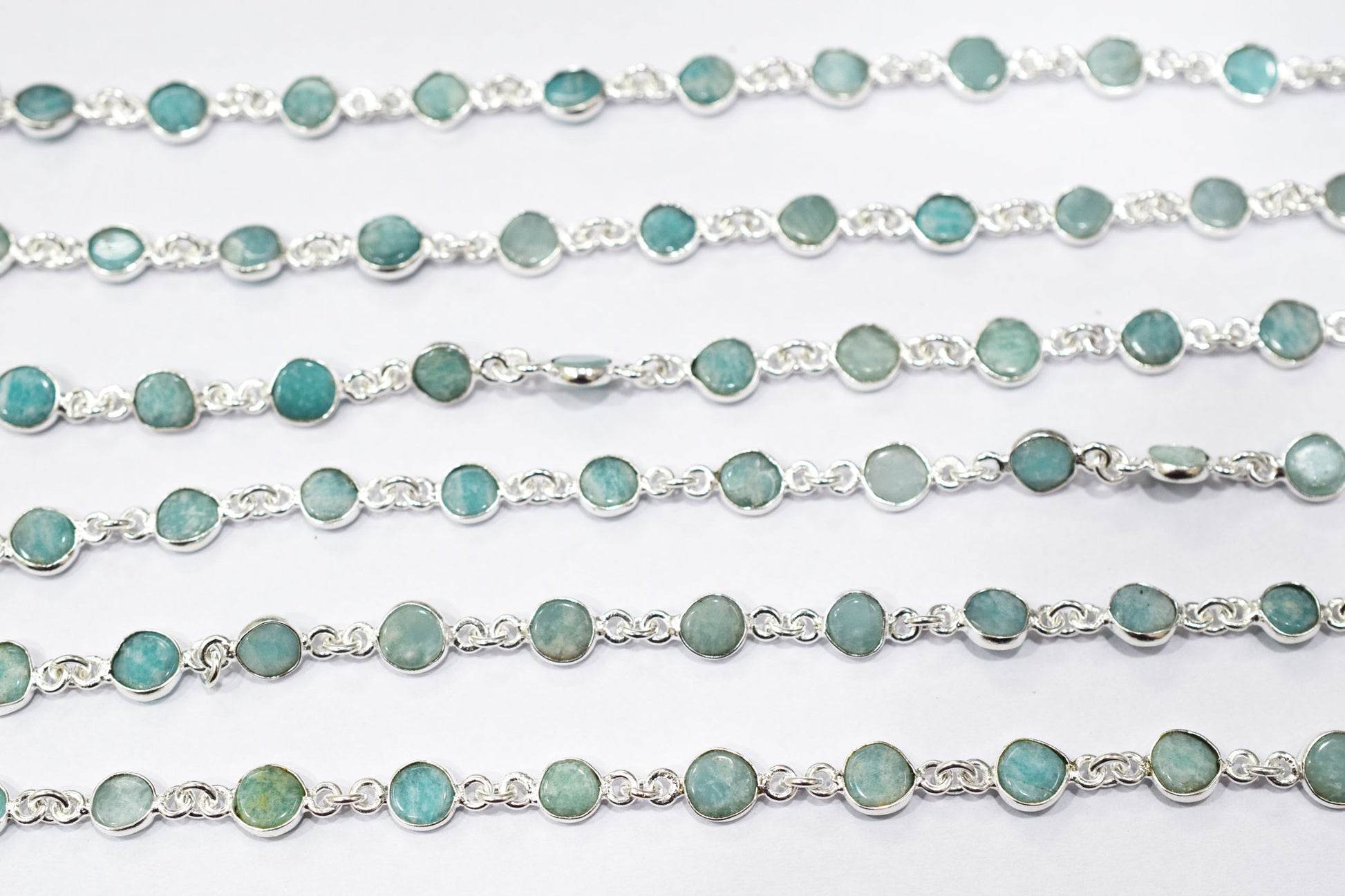 Amazonite Coin Shape Connector Chain , Amazonite Smooth Coin Shape Bezel Link Chain , 7 mm , RB-6577