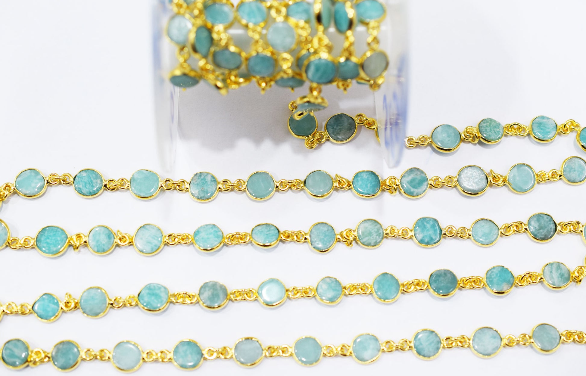 Amazonite Coin Shape Connector Chain , 9 mm , RB-6529
